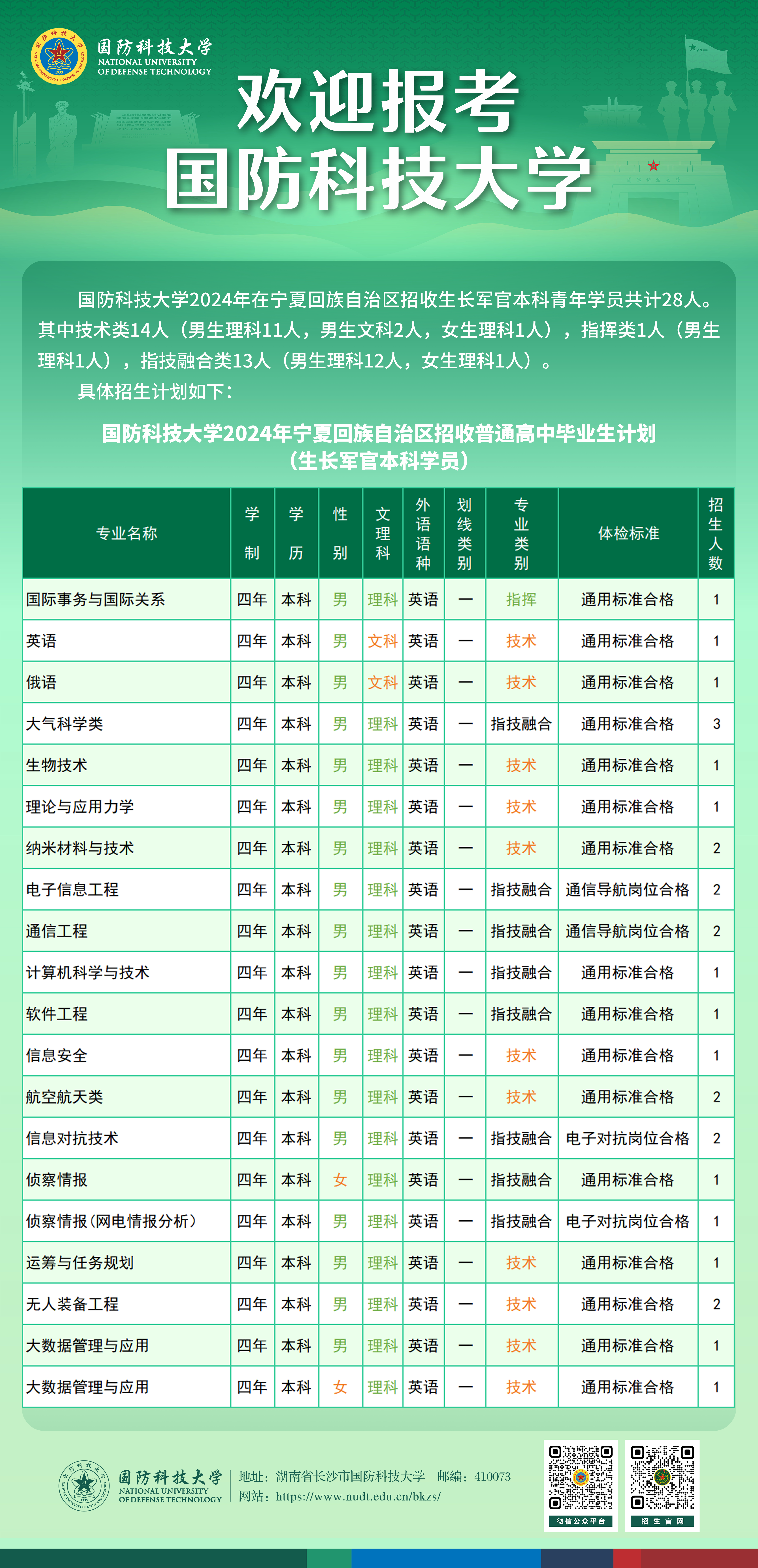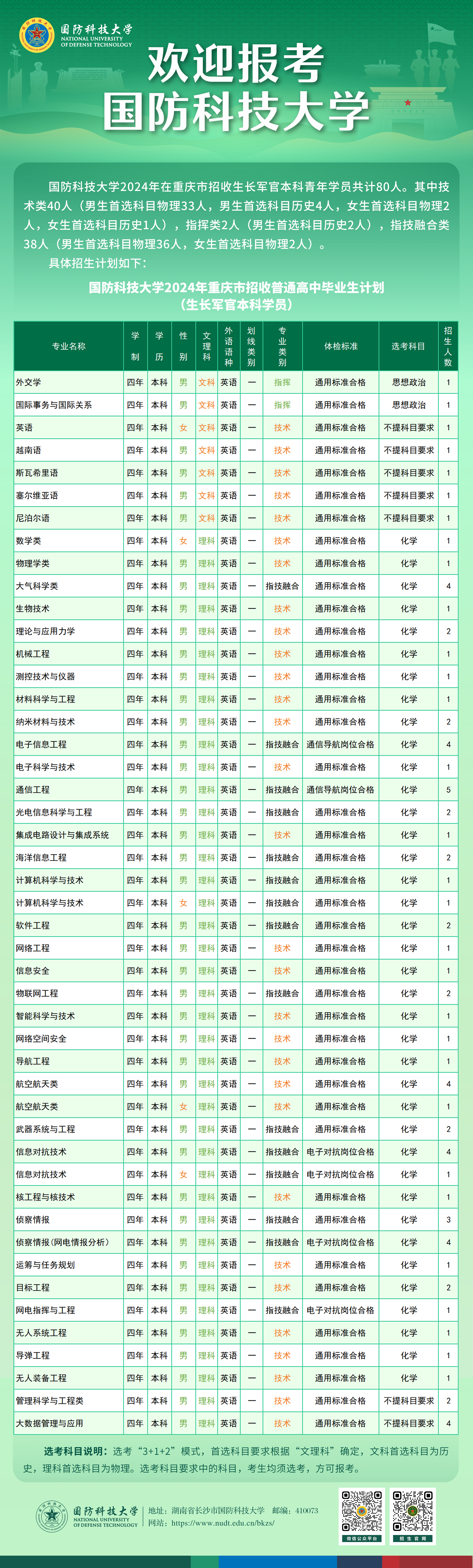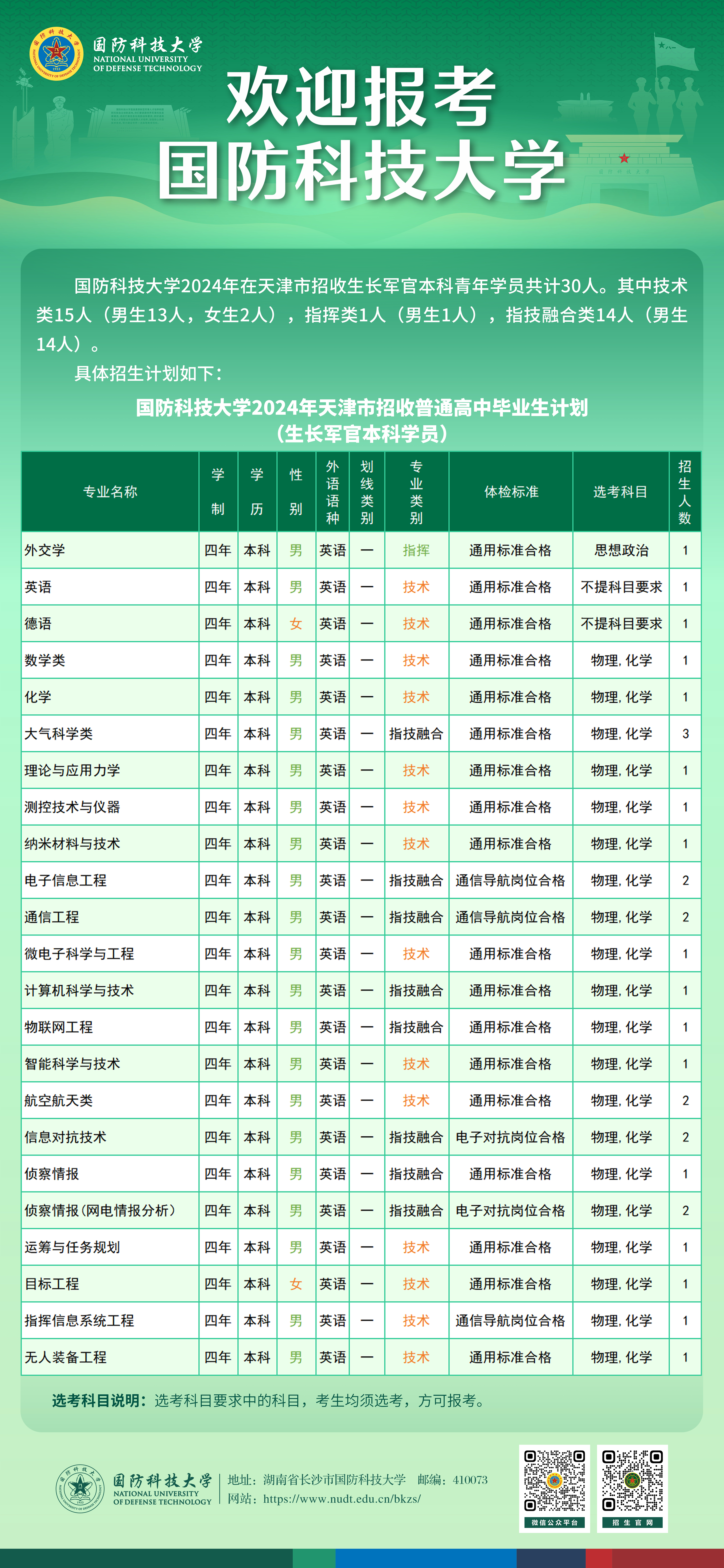 欢迎广大考生及家长电话咨询招生信息,欢迎有志携笔从戎、献身国防的共和国优秀学子和热血青年报考国防科大。