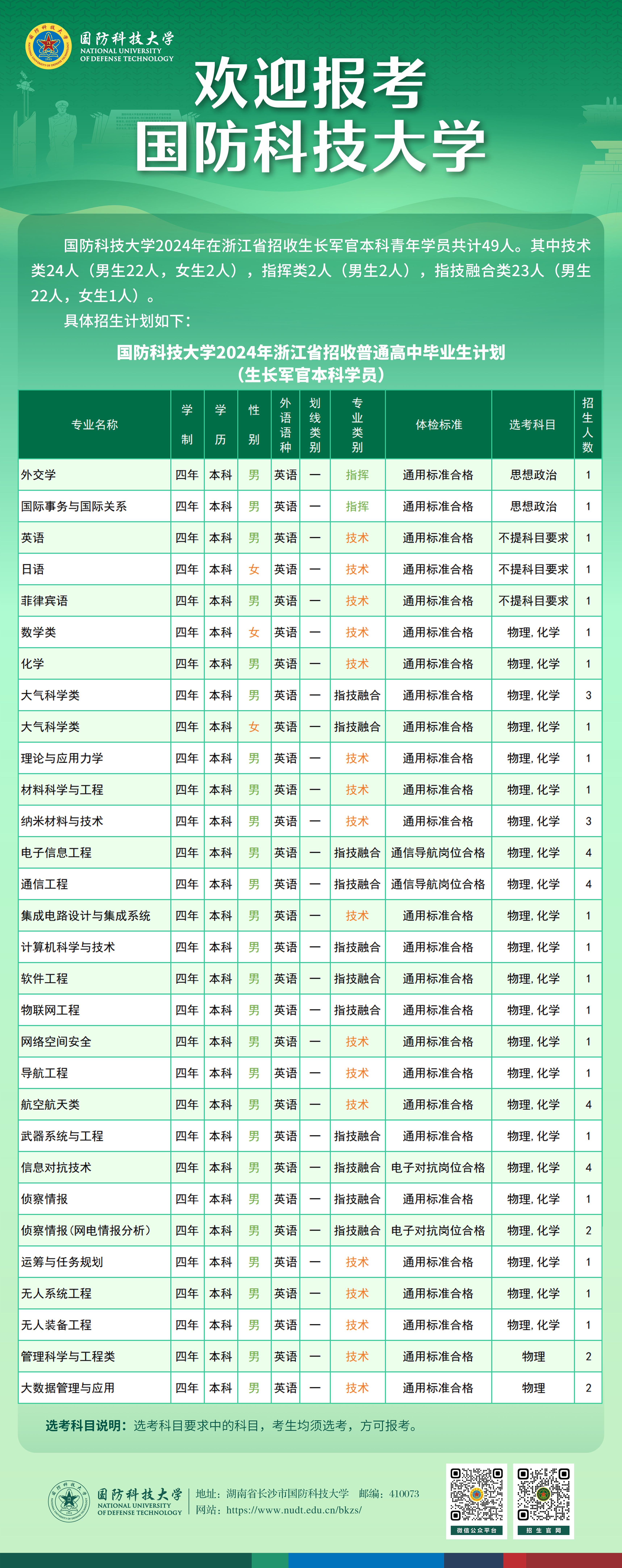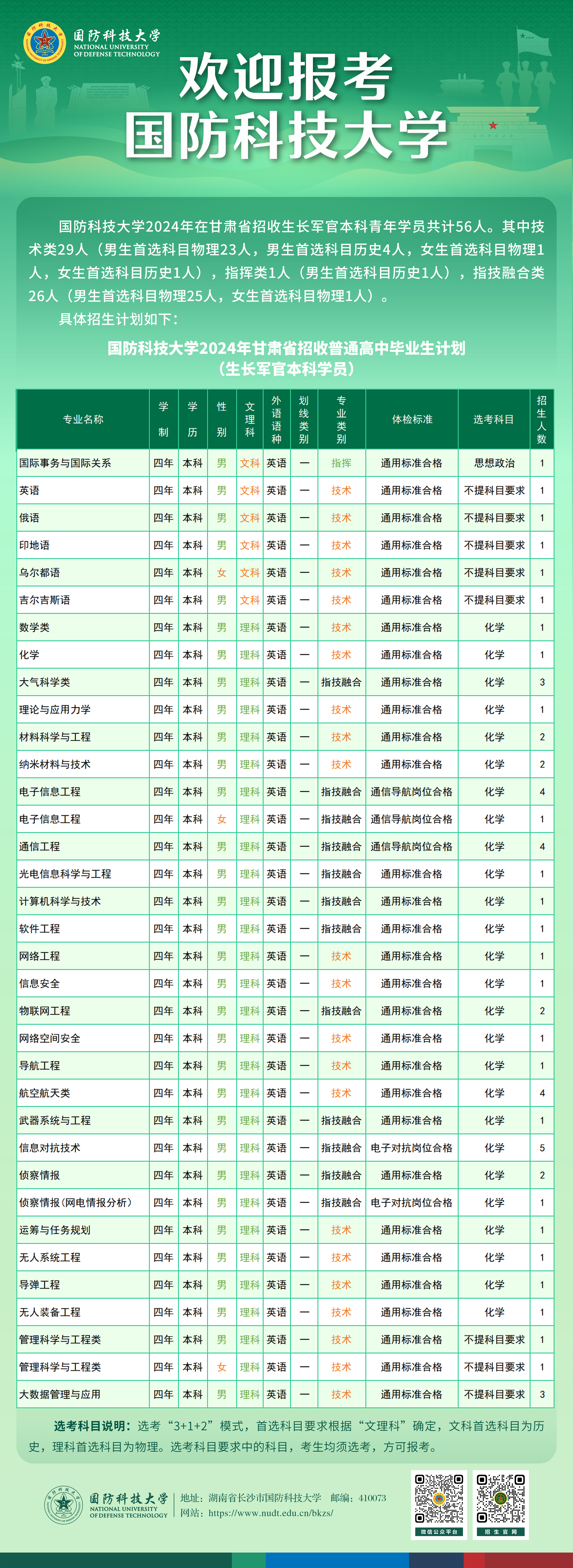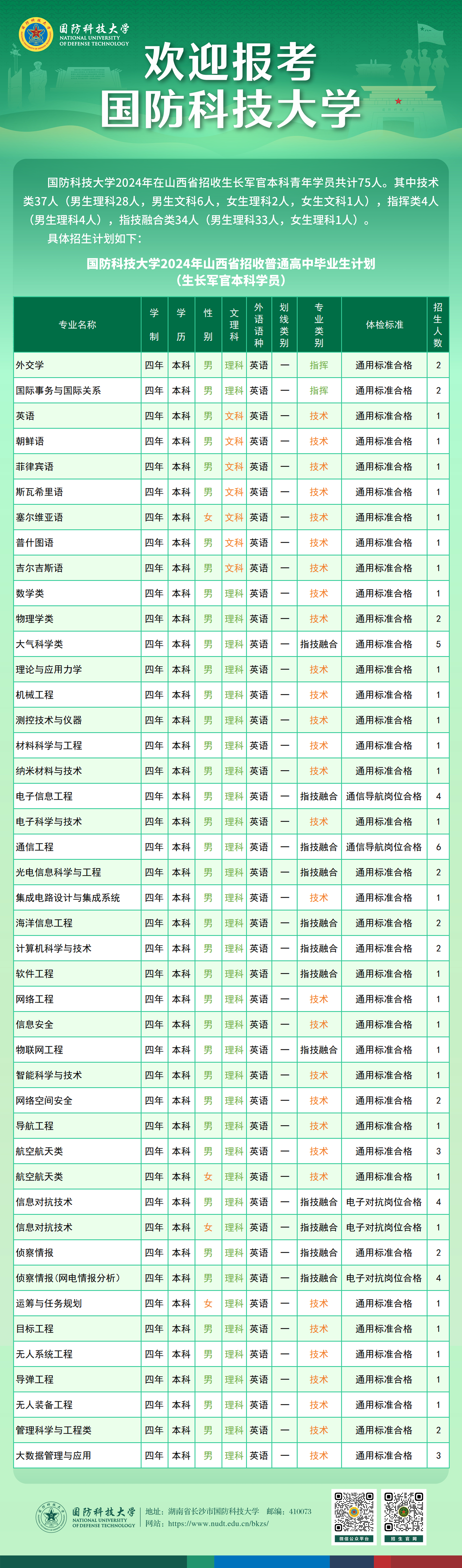 欢迎广大考生及家长电话咨询招生信息,欢迎有志携笔从戎、献身国防的共和国优秀学子和热血青年报考国防科大。