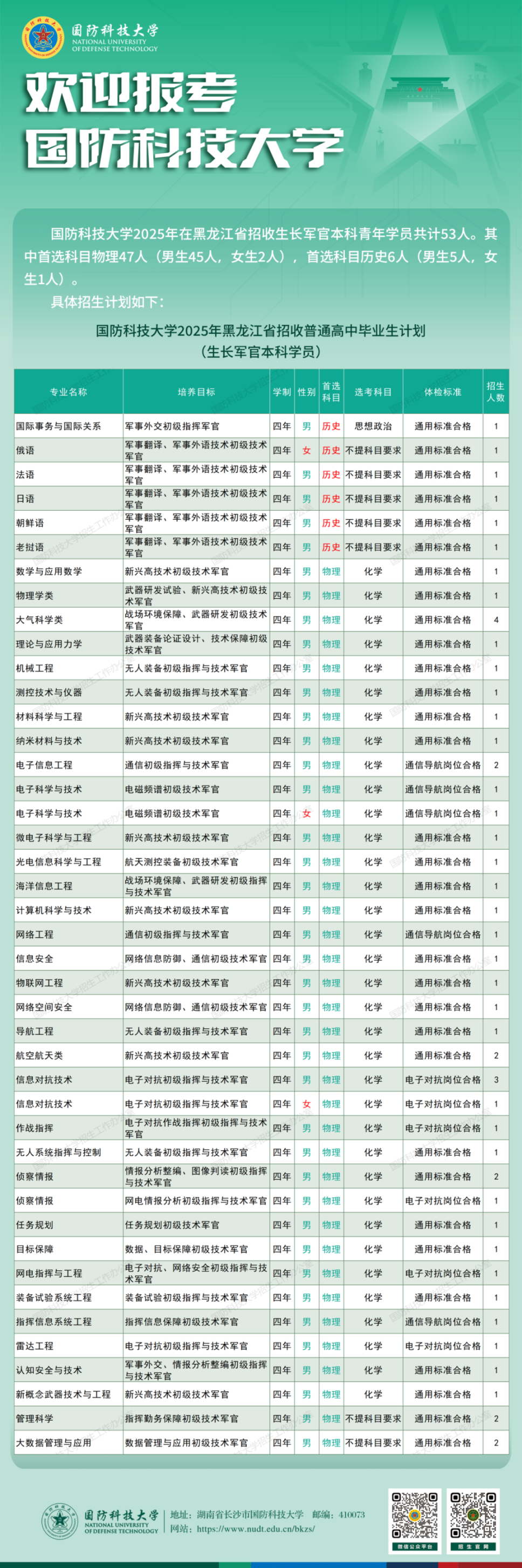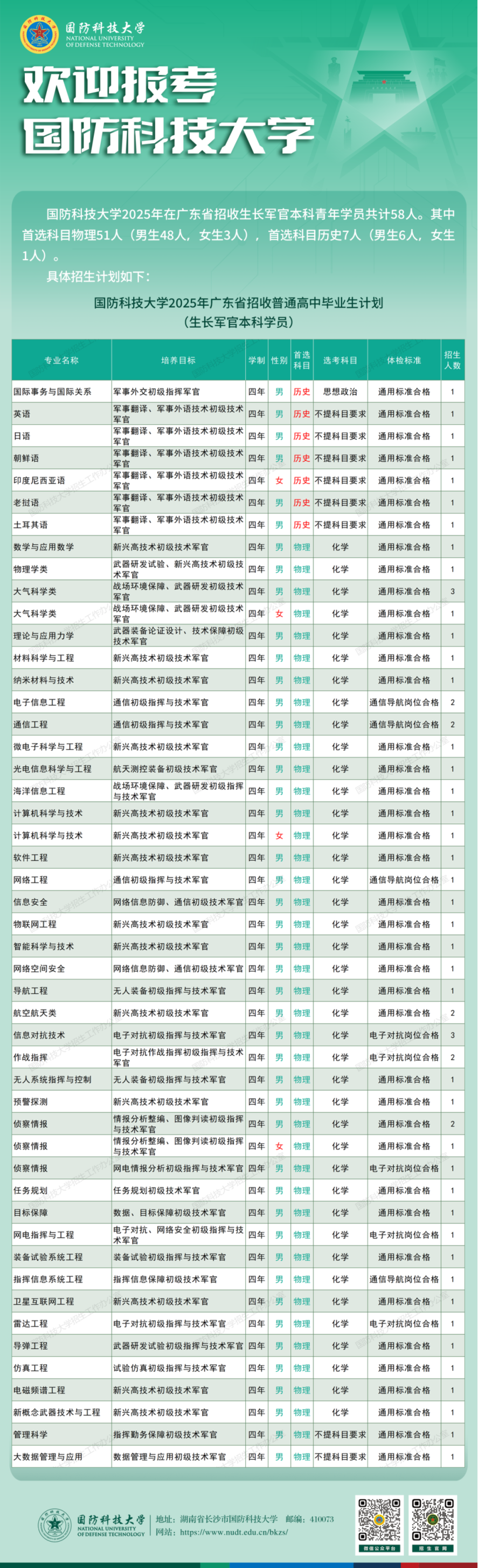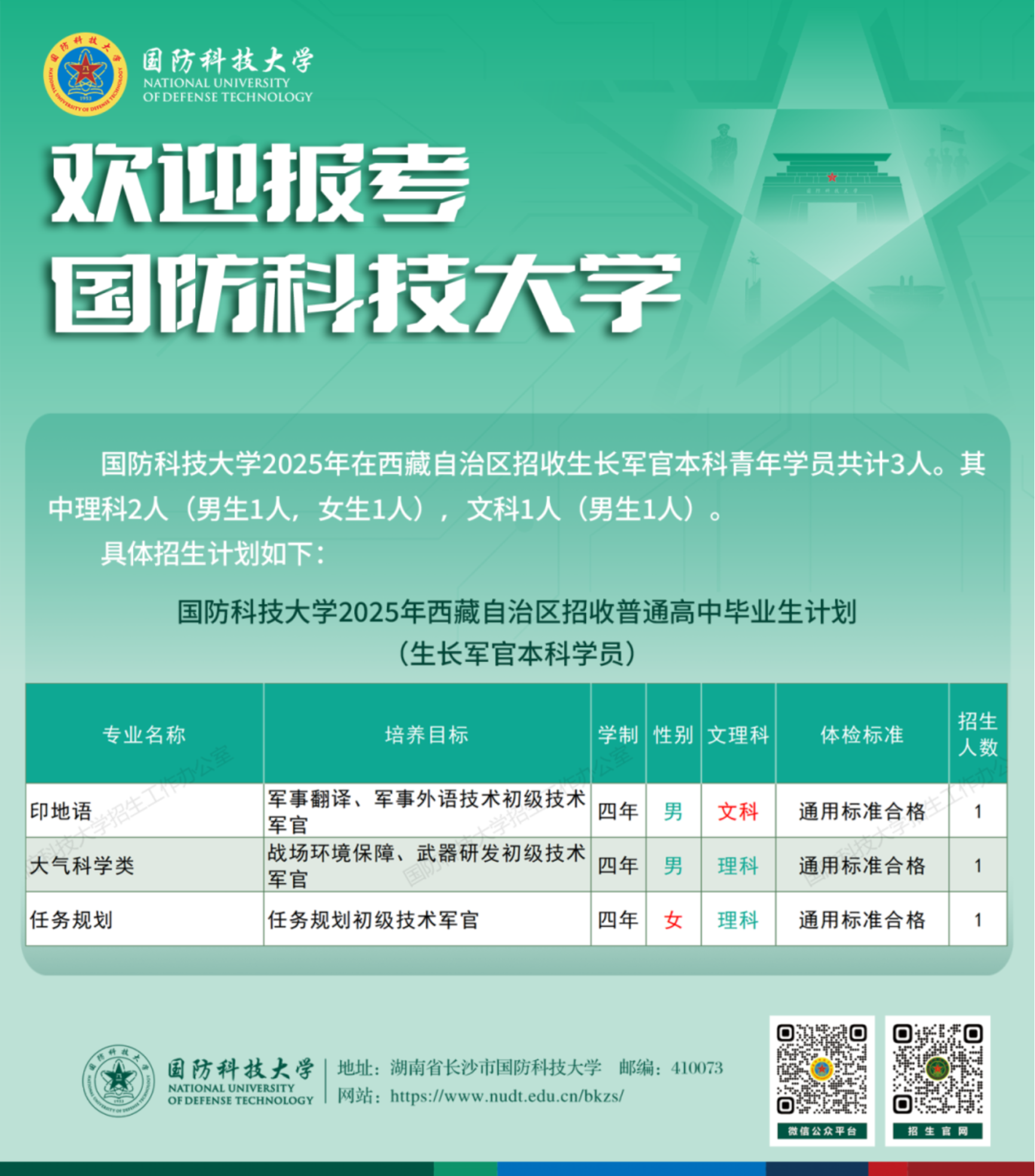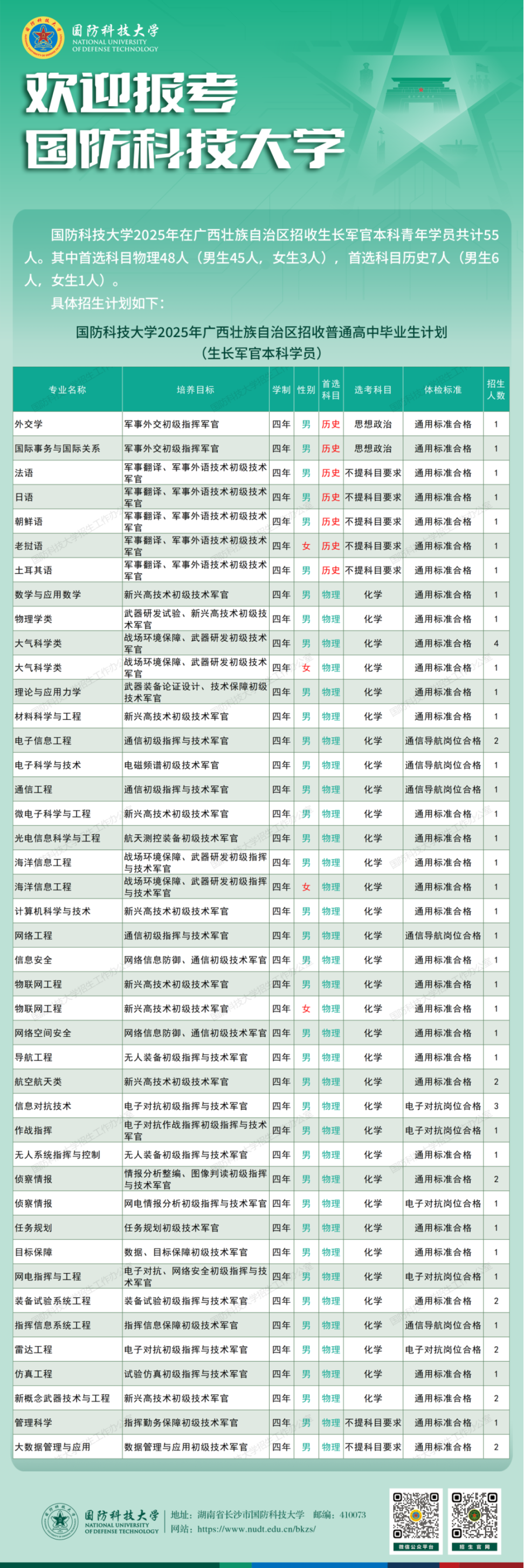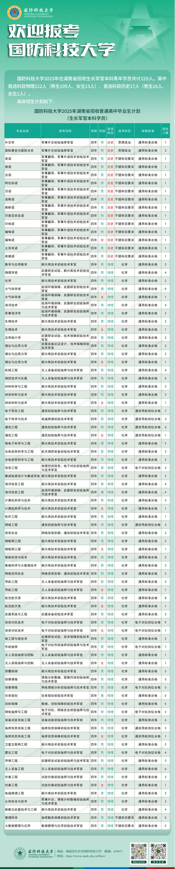 欢迎广大考生及家长电话咨询招生信息,欢迎有志携笔从戎、献身国防的共和国优秀学子和热血青年报考国防科大。