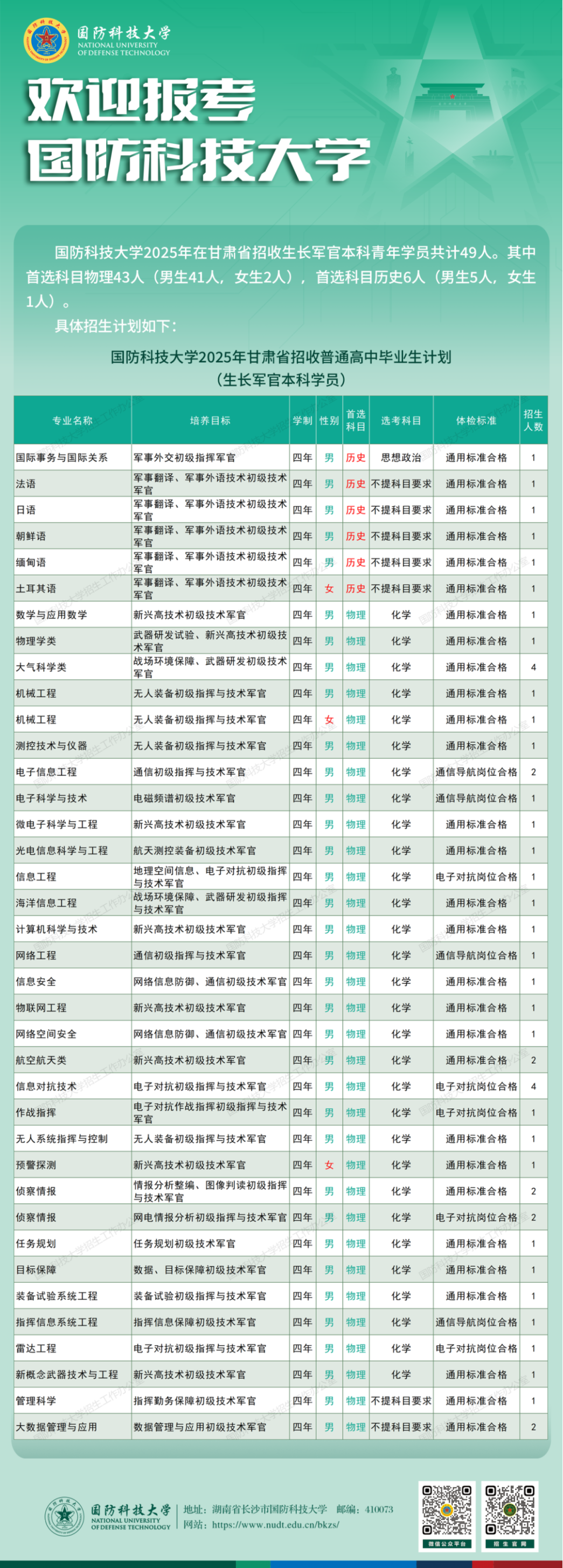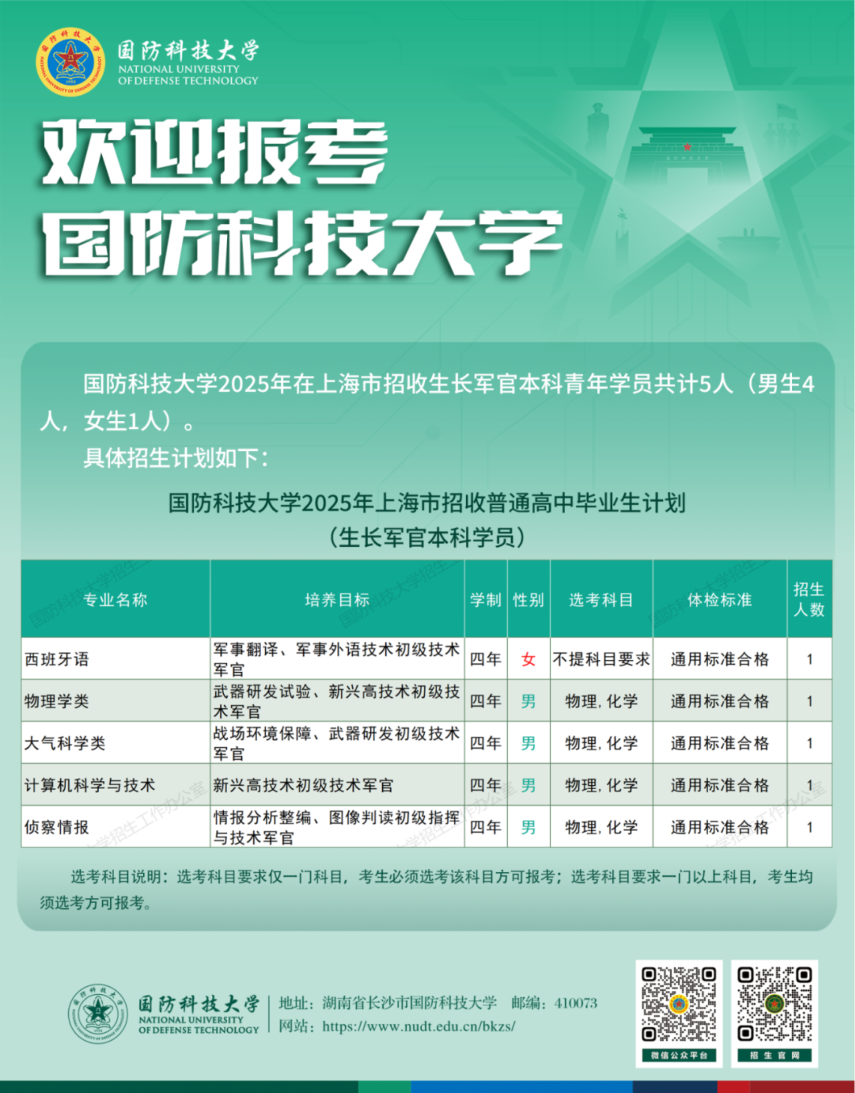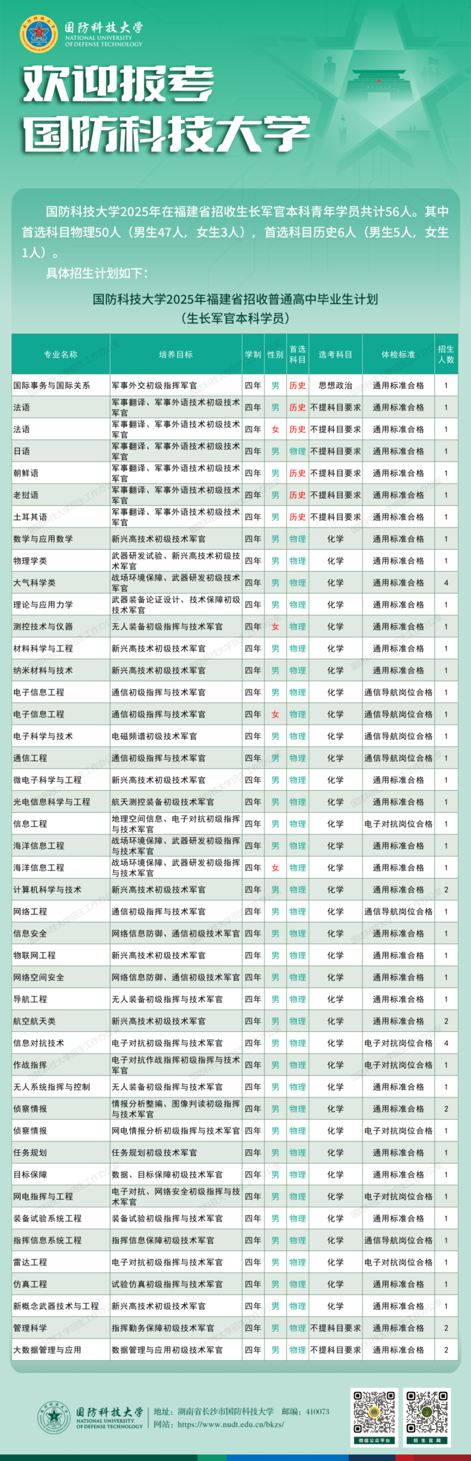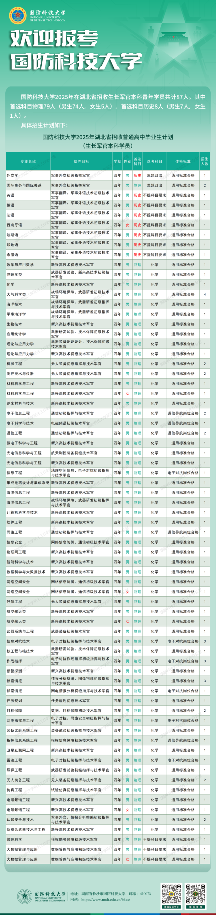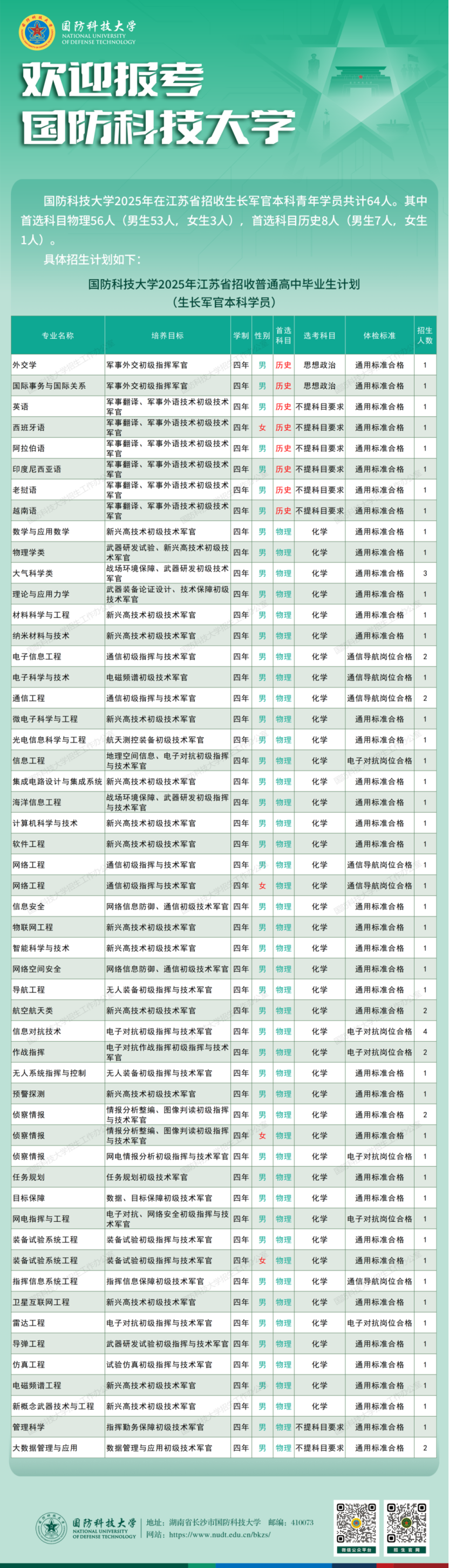 欢迎广大考生及家长电话咨询招生信息,欢迎有志携笔从戎、献身国防的共和国优秀学子和热血青年报考国防科大。