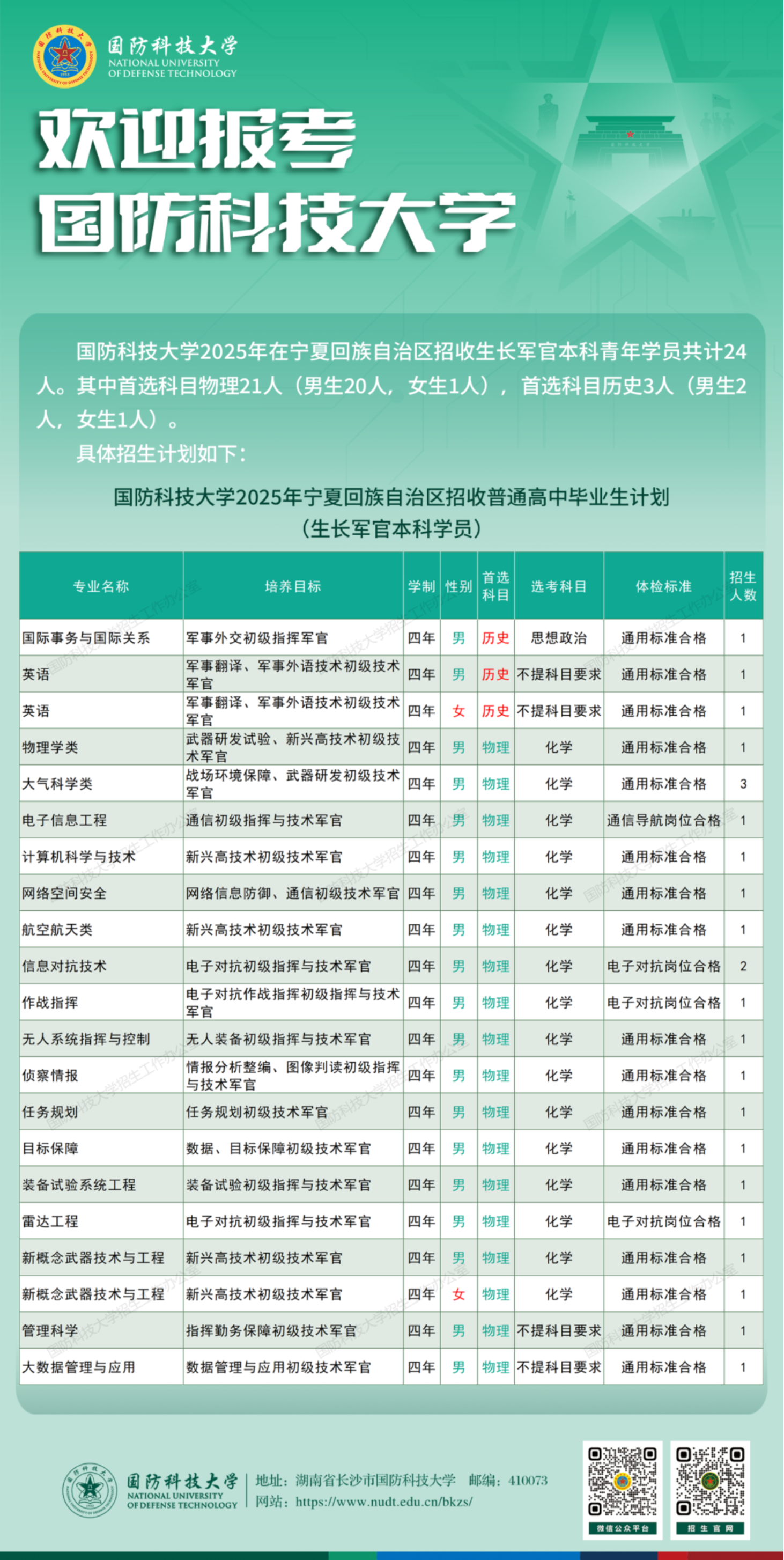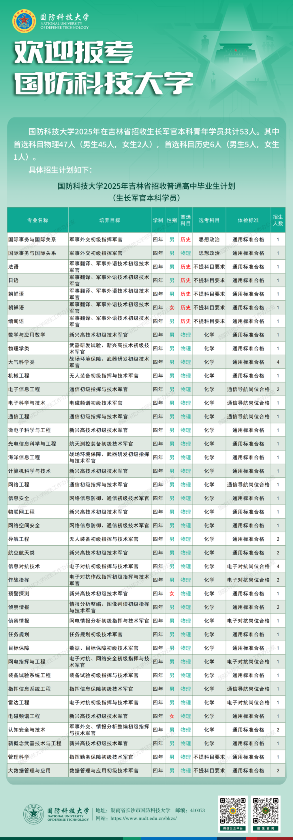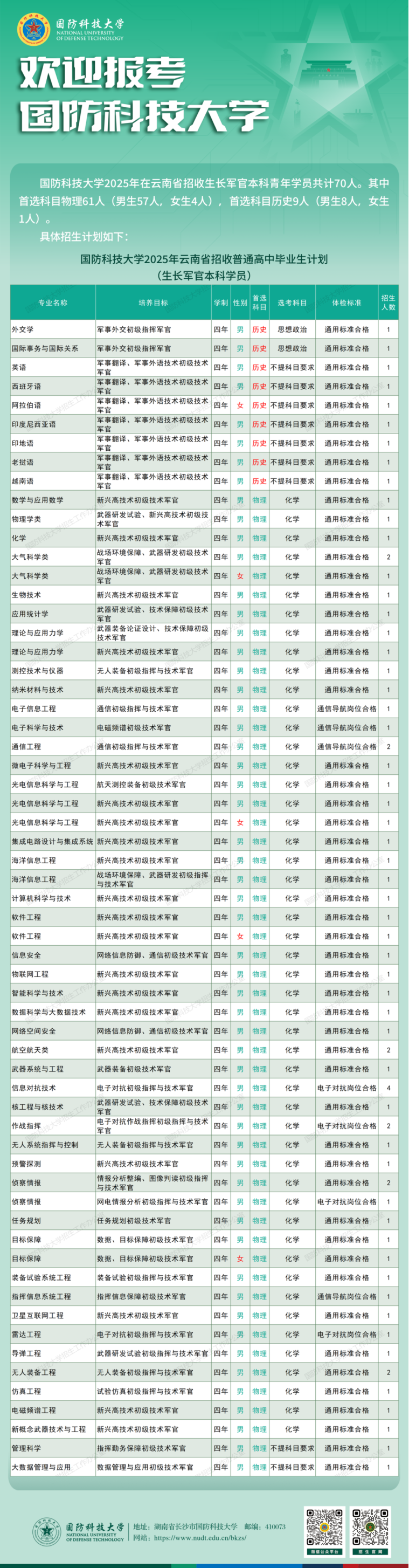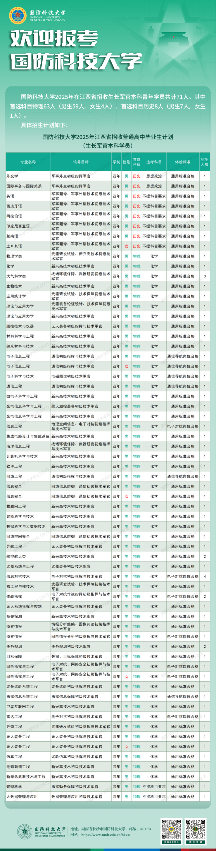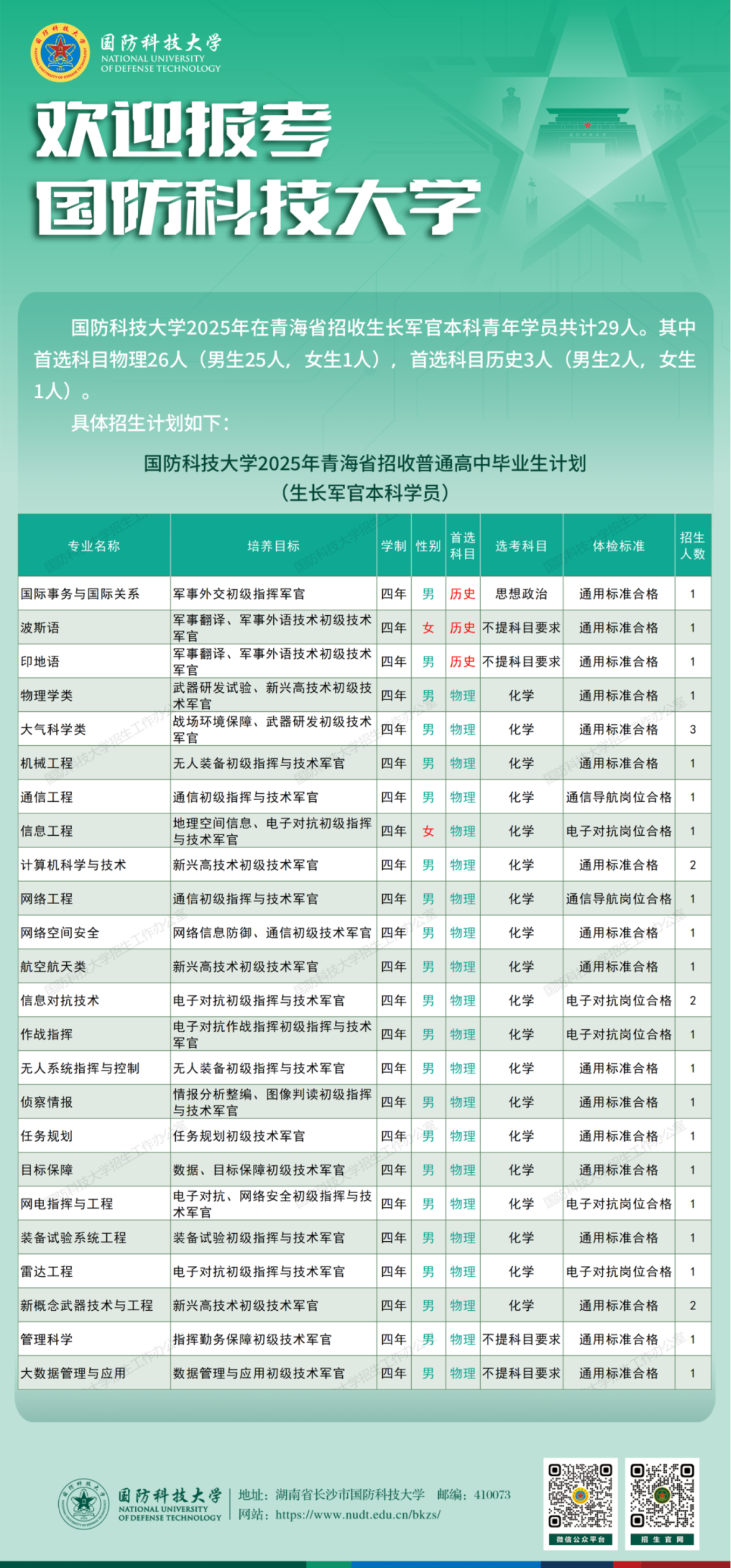 欢迎广大考生及家长电话咨询招生信息,欢迎有志携笔从戎、献身国防的共和国优秀学子和热血青年报考国防科大。