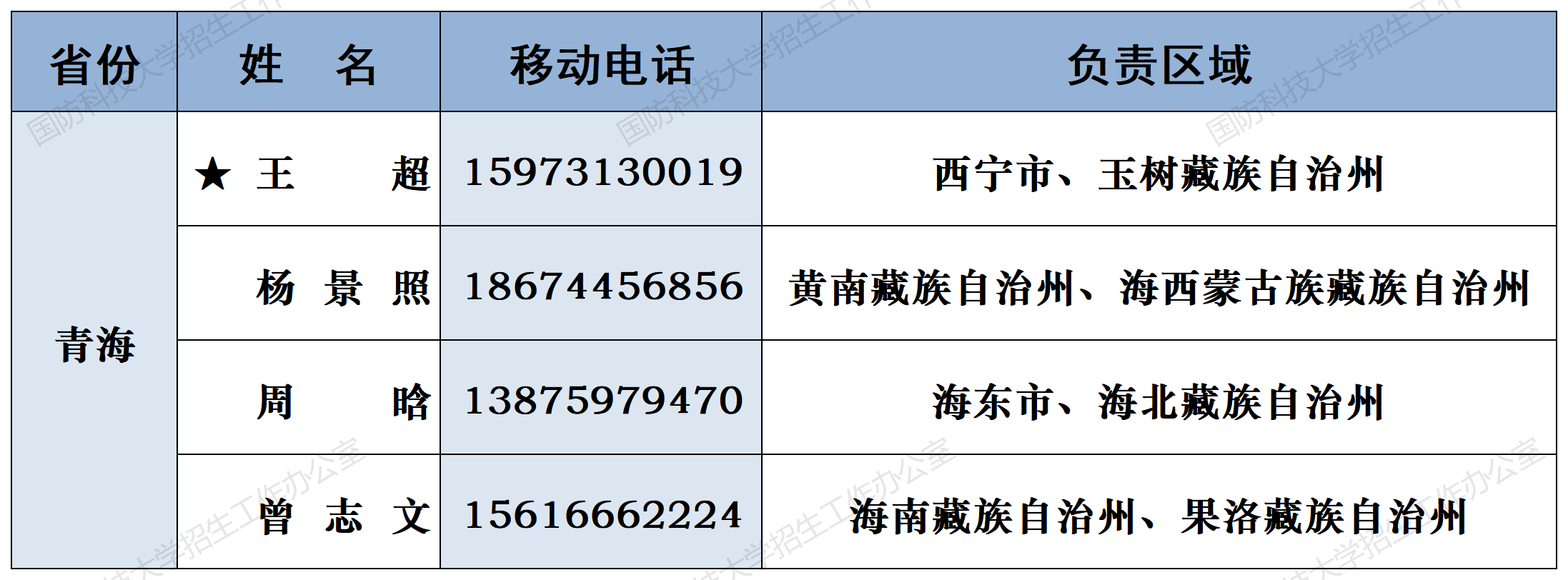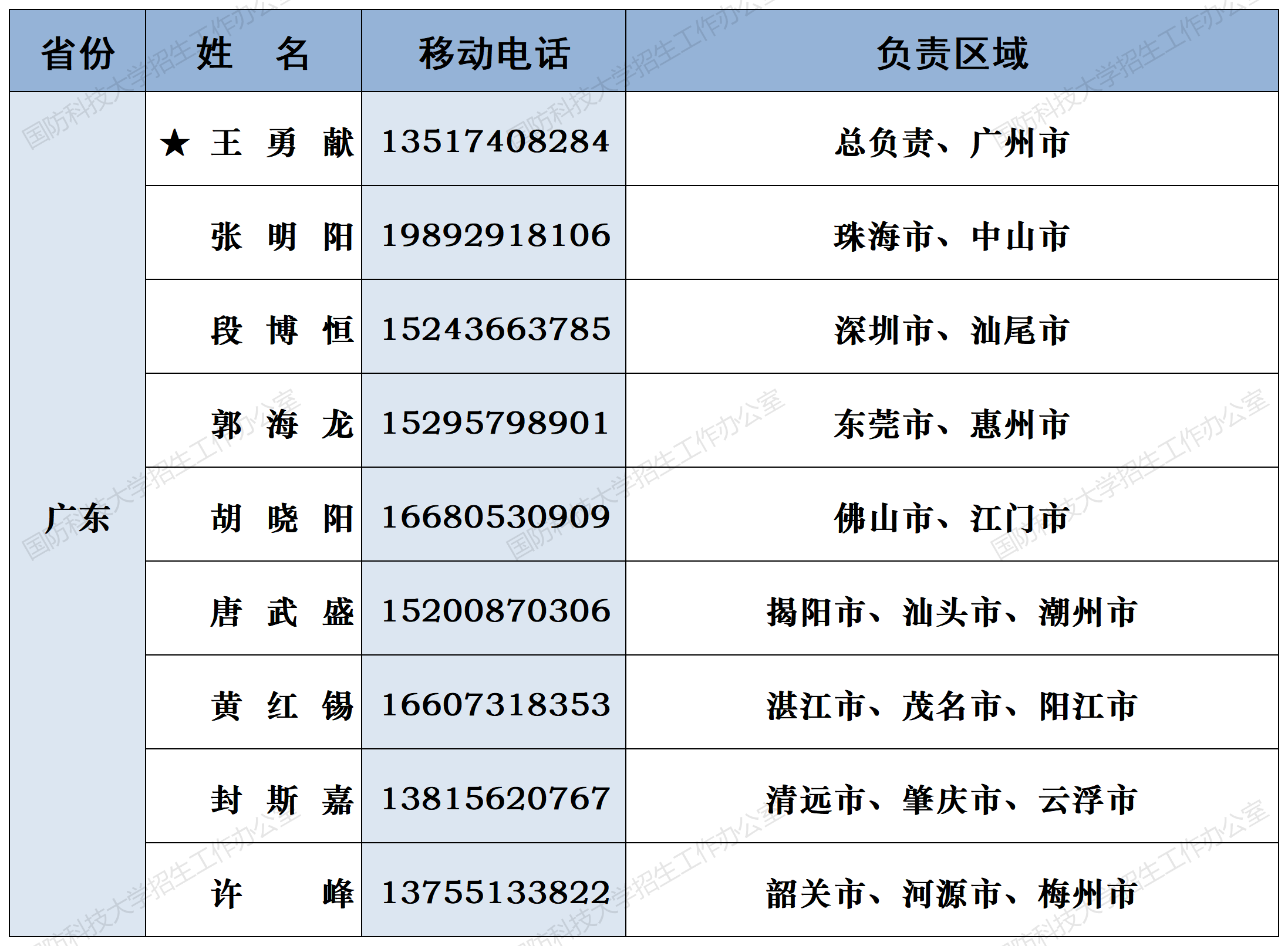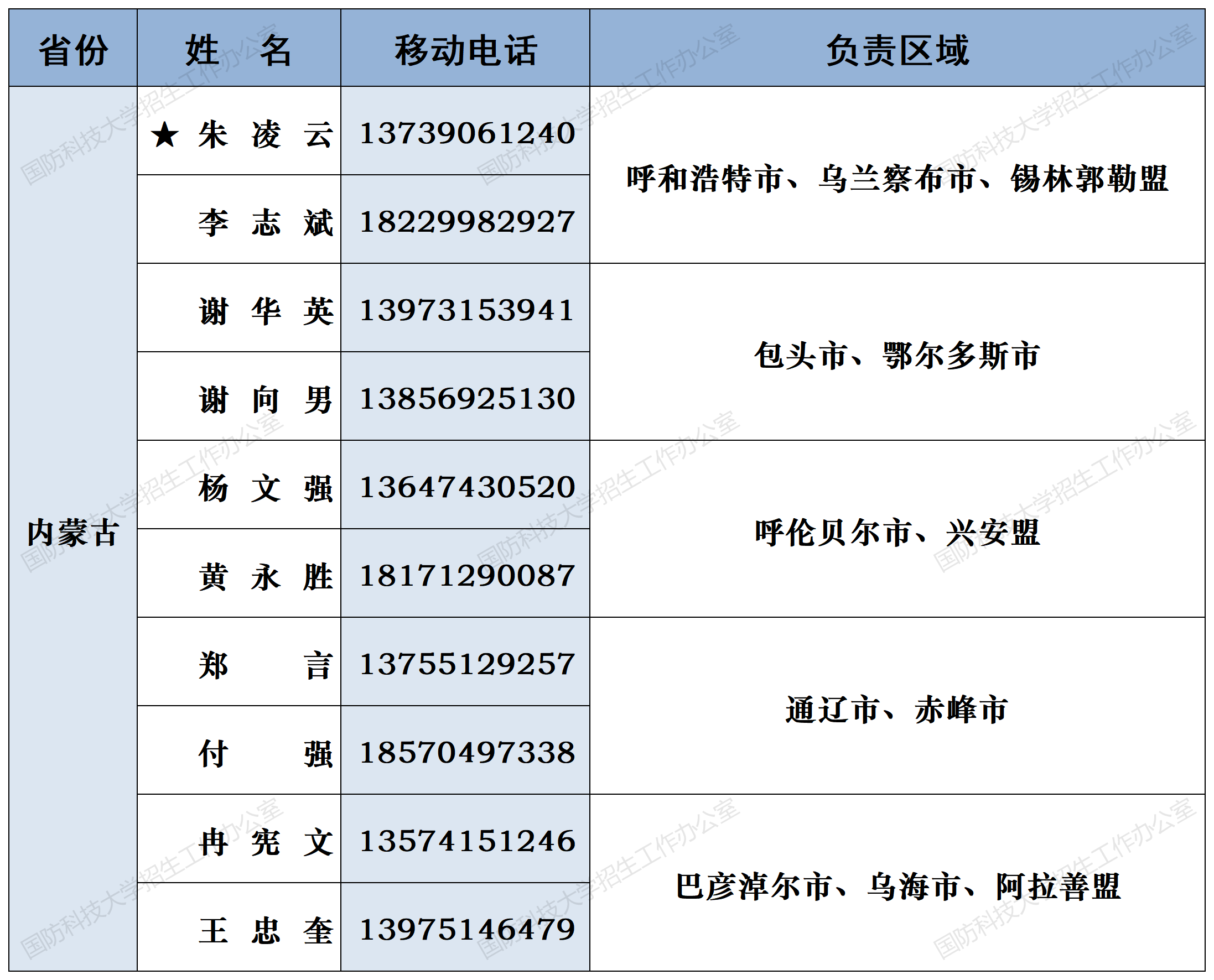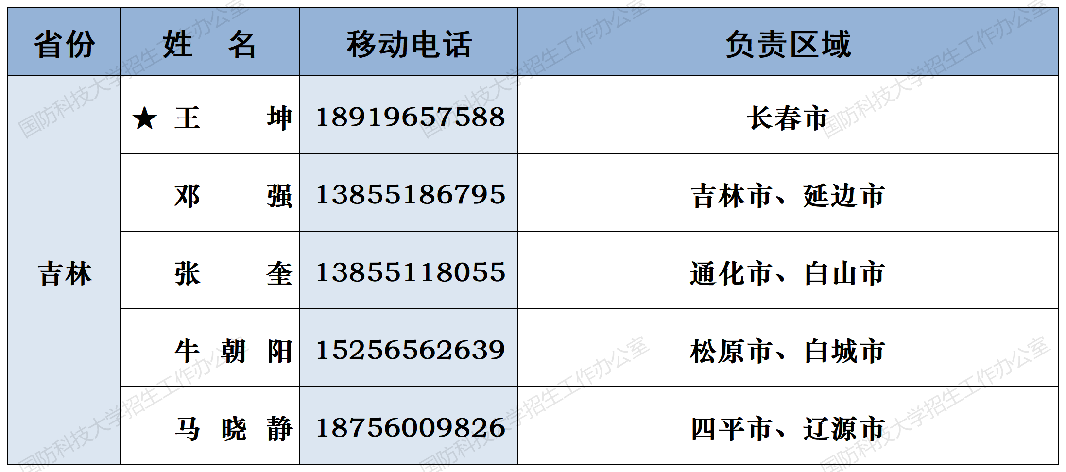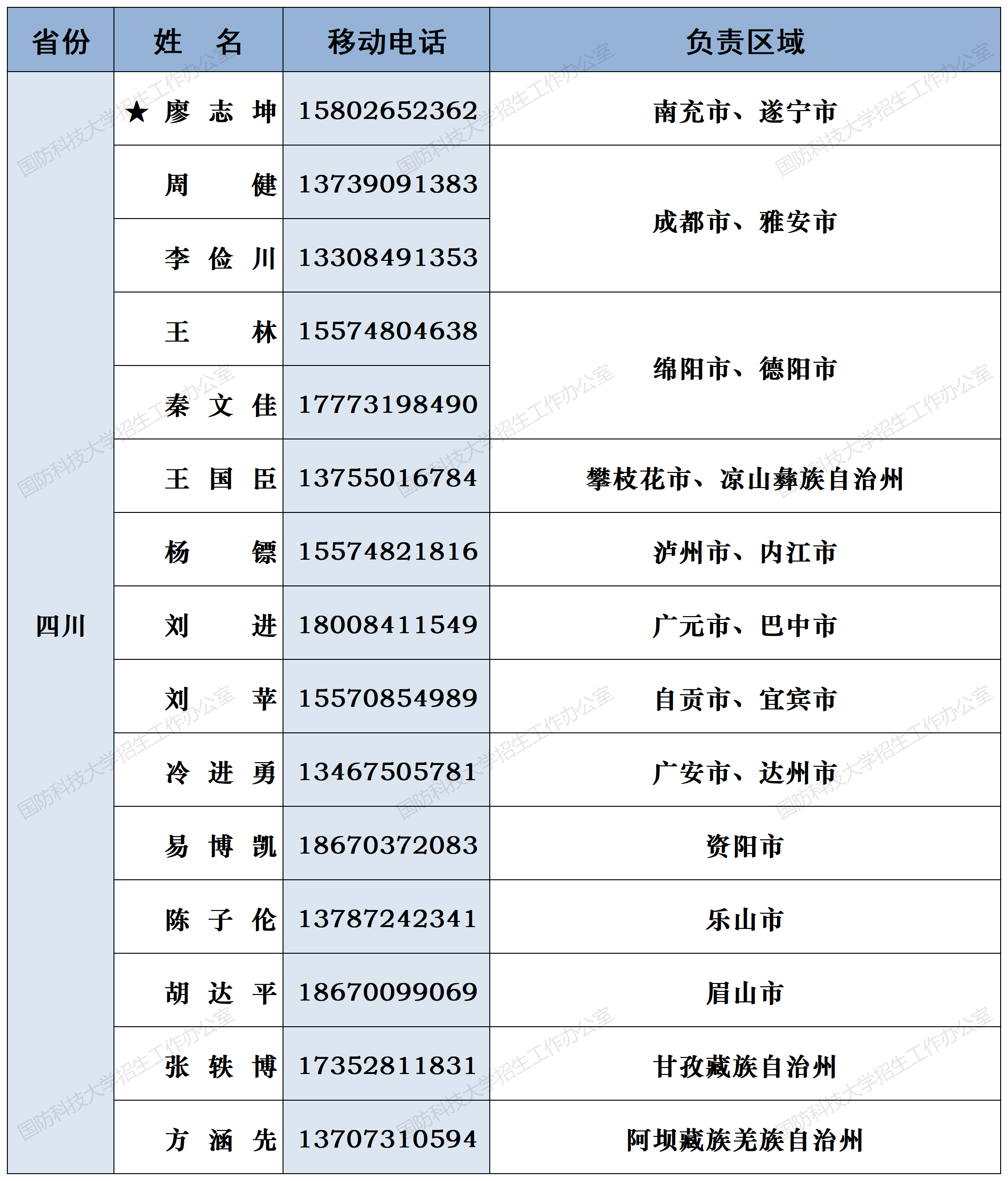 注:姓名前加“★”为各省(直辖市)招生组组长;若所在地域未明确招生老师,考生和家长可选择招生组组长或临近地域招生老师进行咨询。
