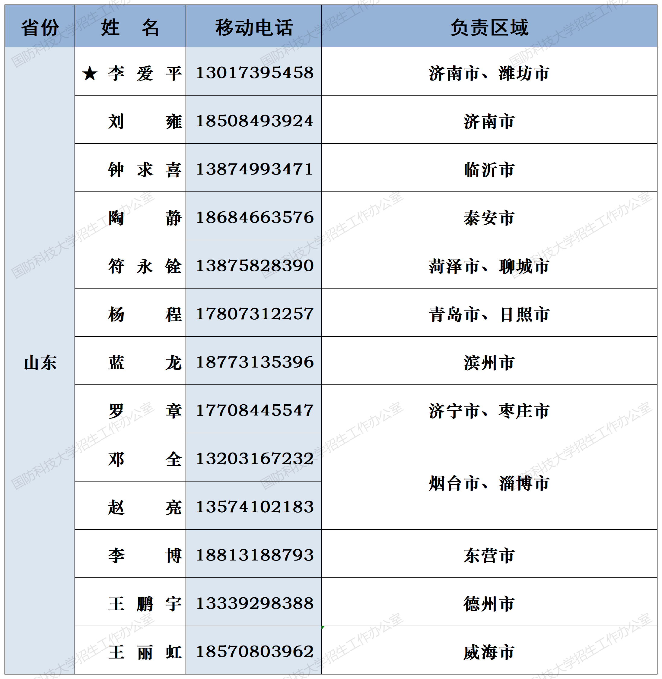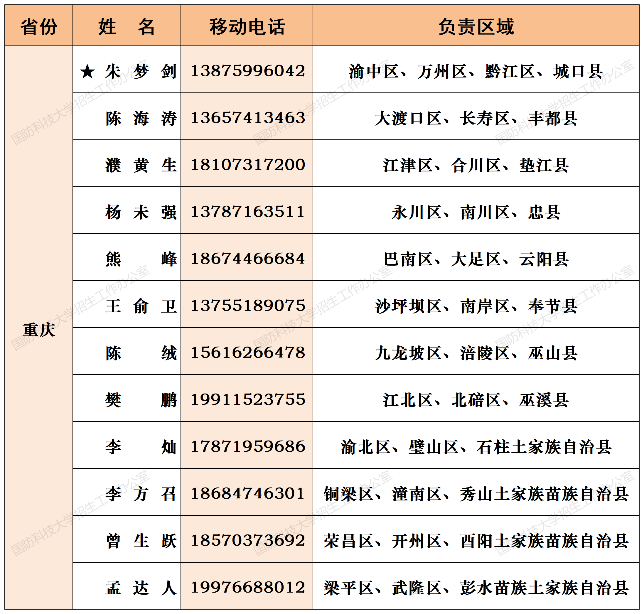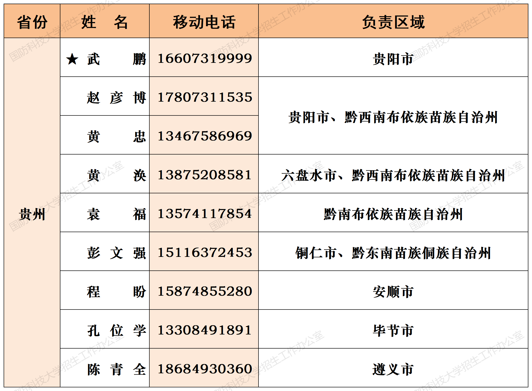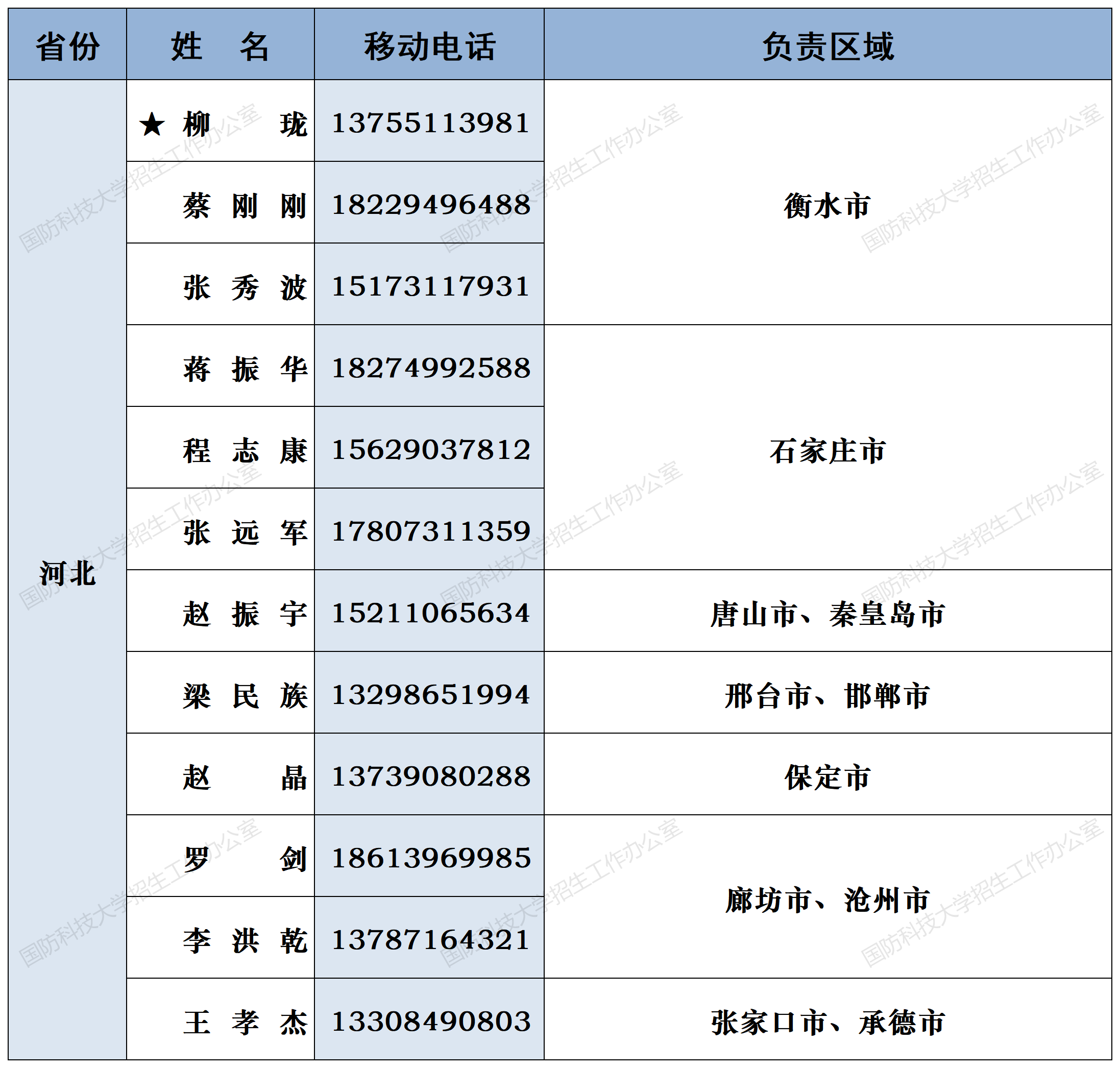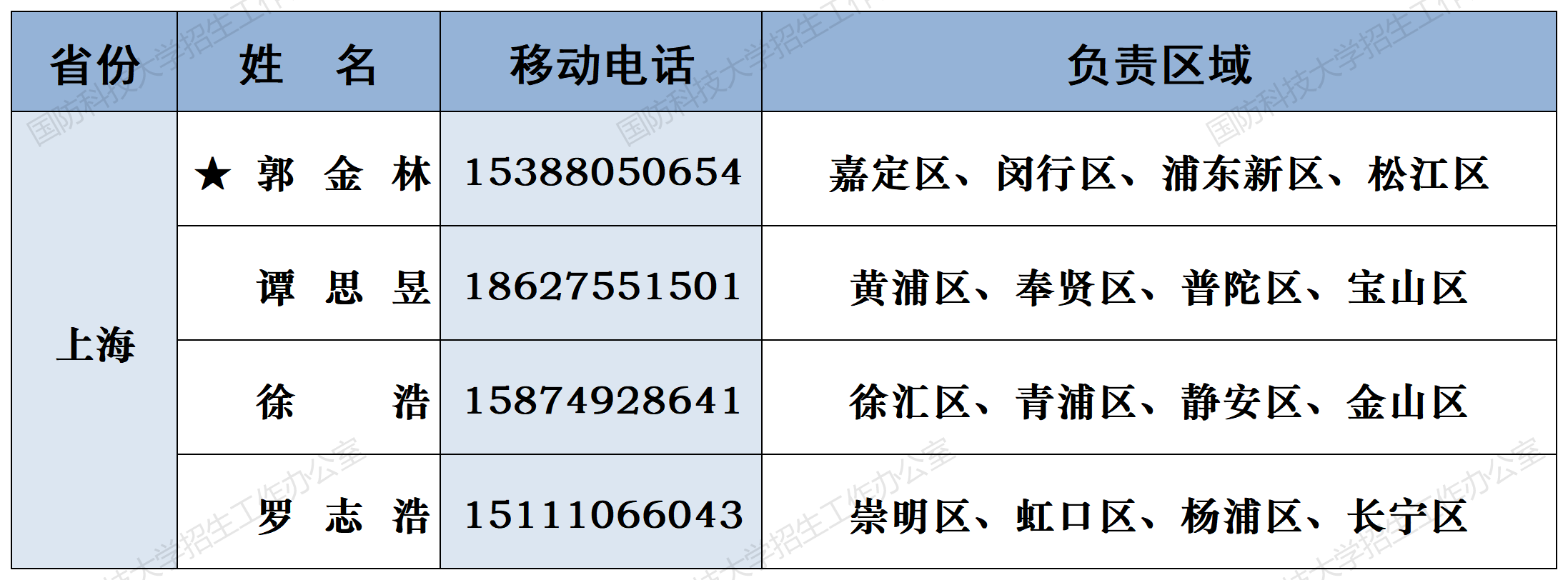 注:姓名前加“★”为各省(直辖市)招生组组长;若所在地域未明确招生老师,考生和家长可选择招生组组长或临近地域招生老师进行咨询。