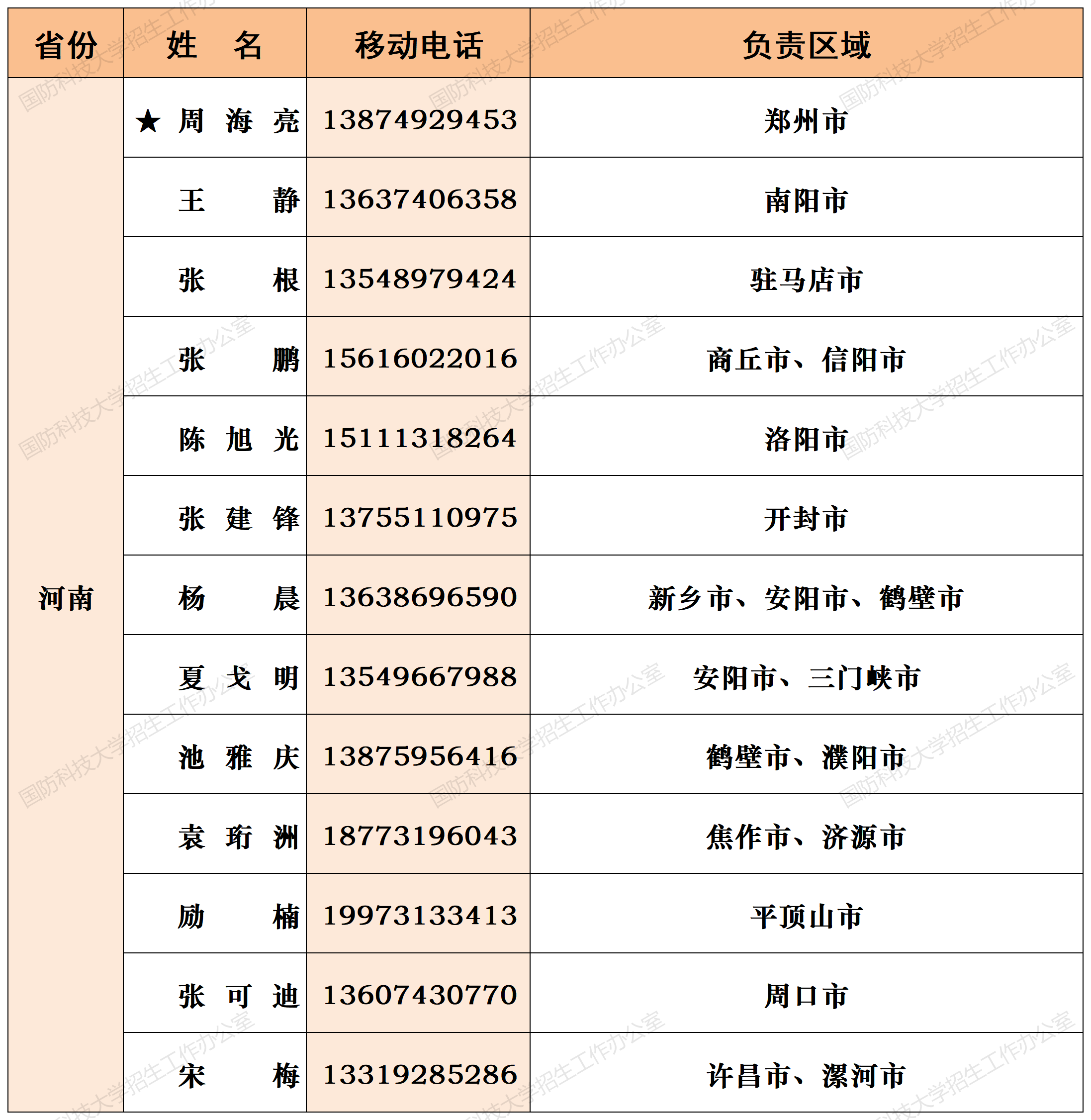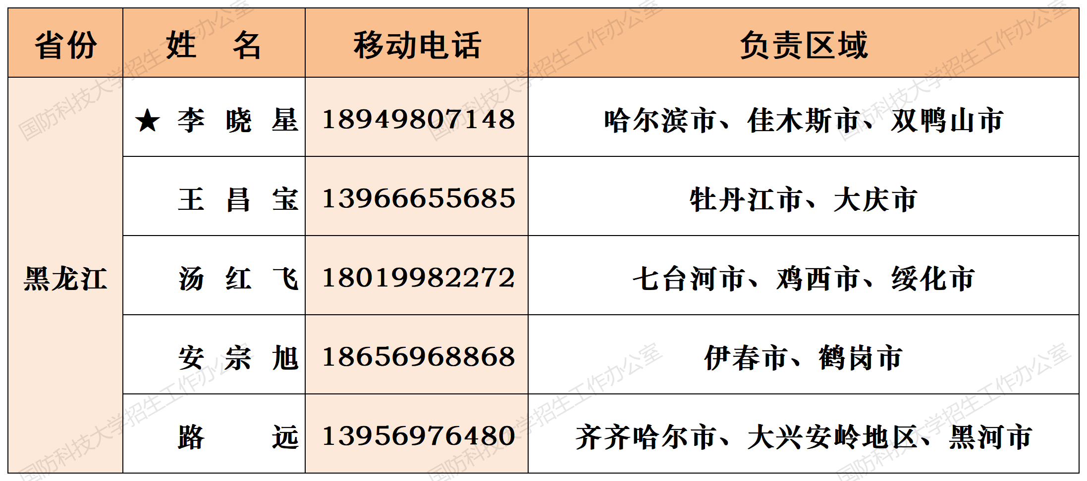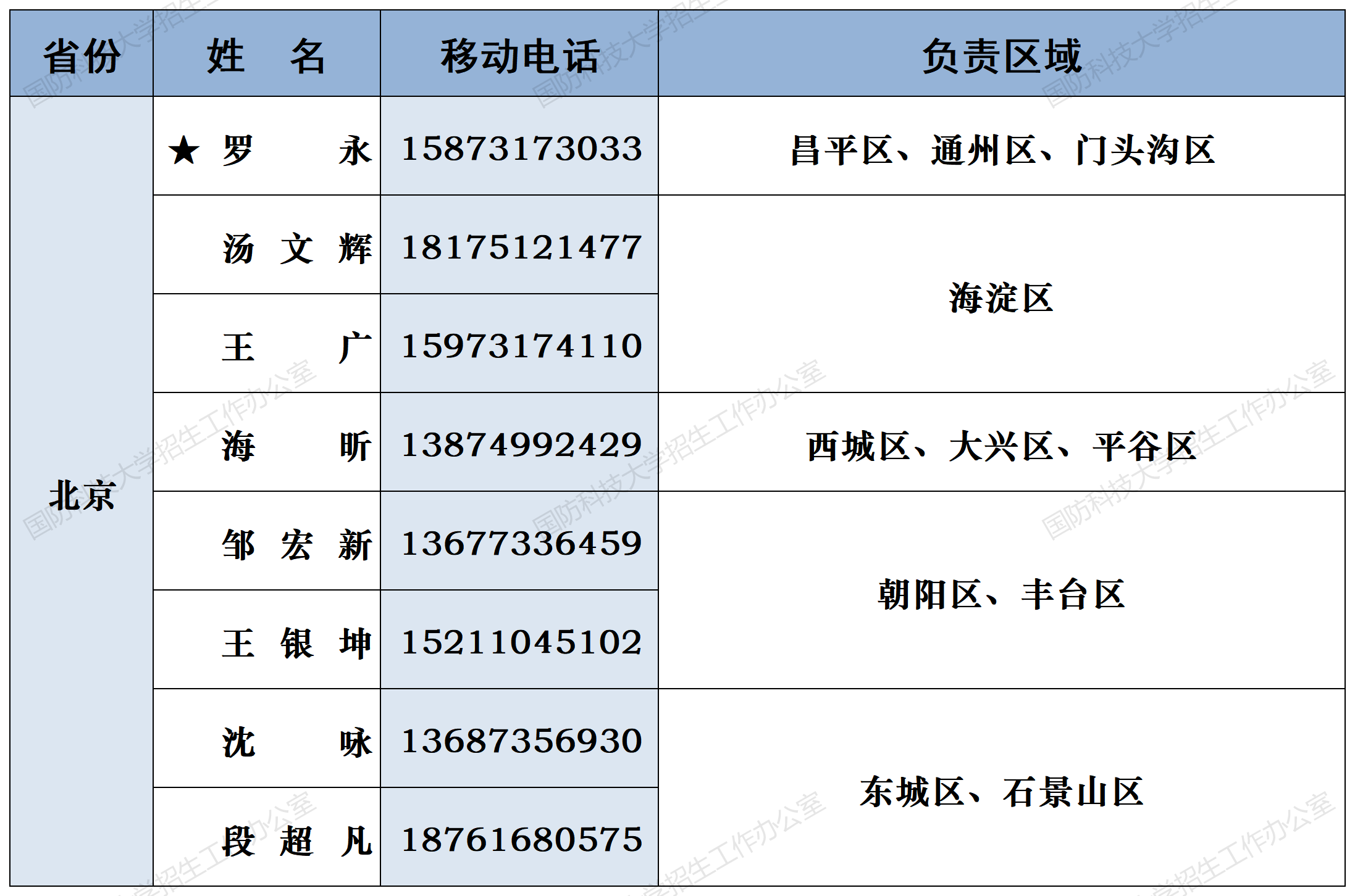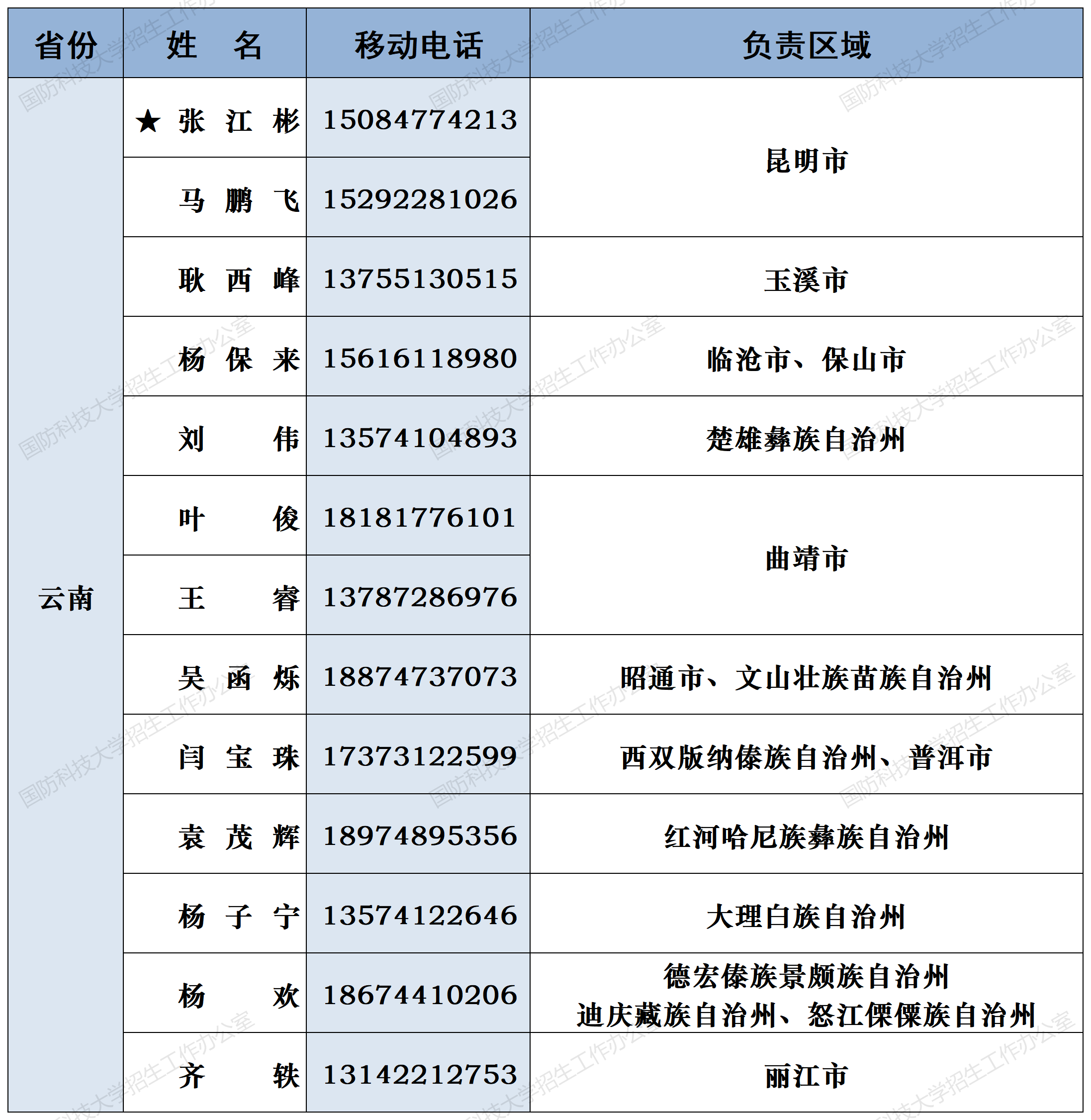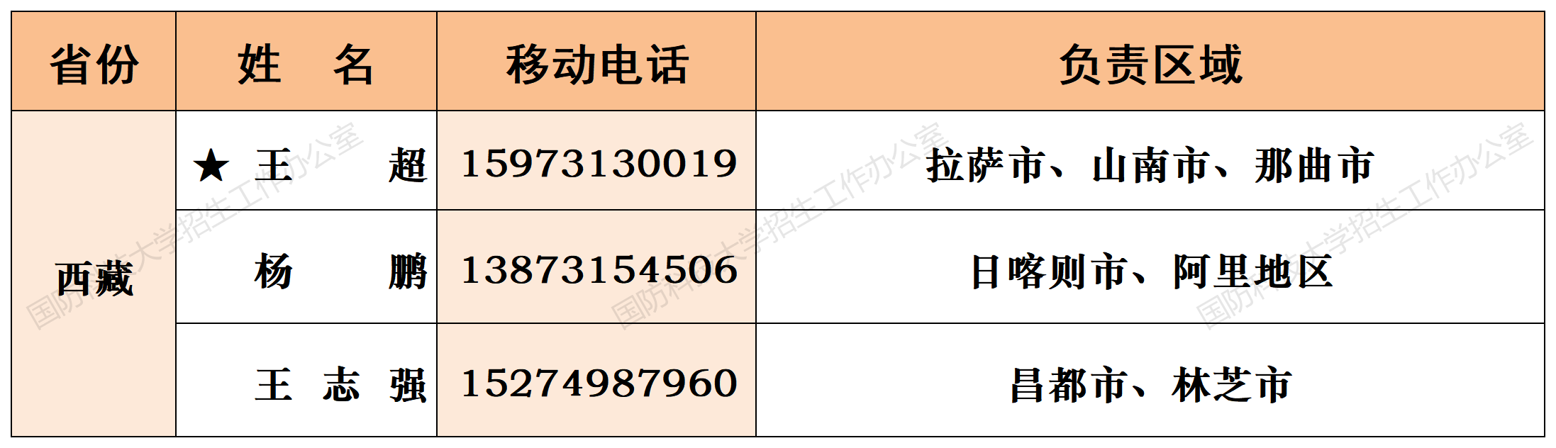 注:姓名前加“★”为各省(直辖市)招生组组长;若所在地域未明确招生老师,考生和家长可选择招生组组长或临近地域招生老师进行咨询。