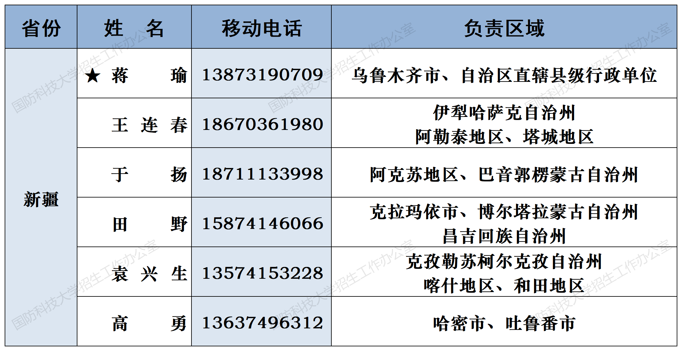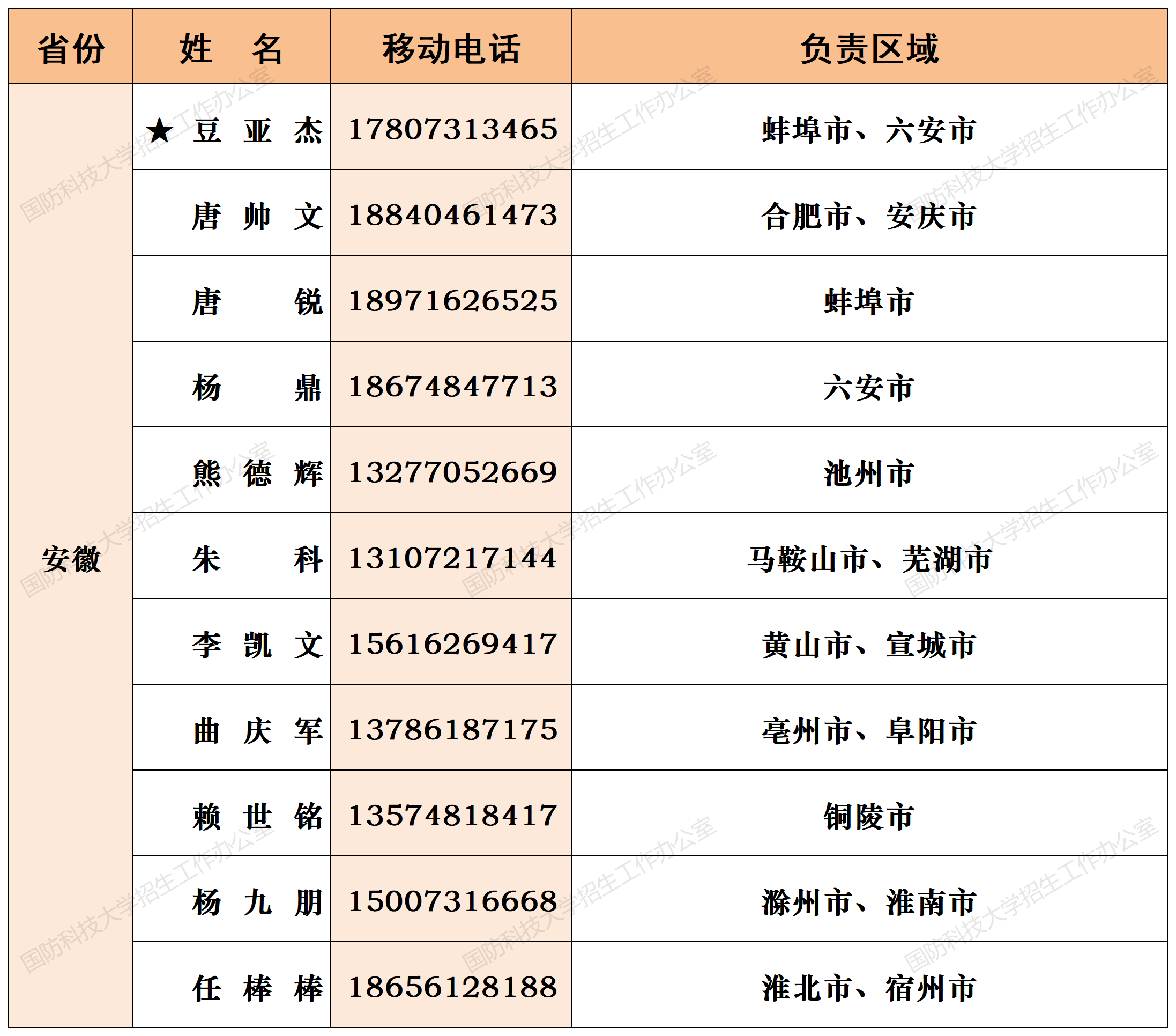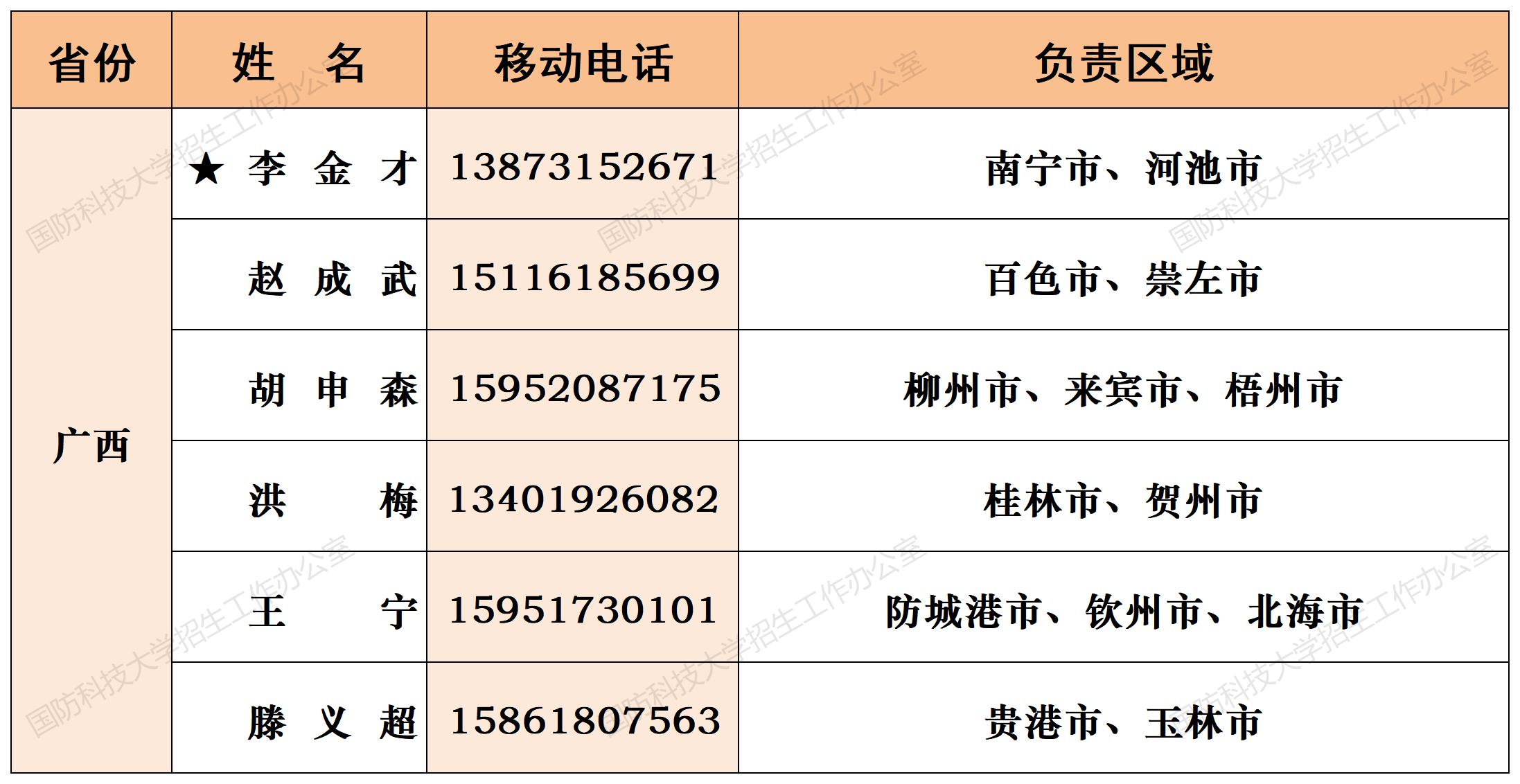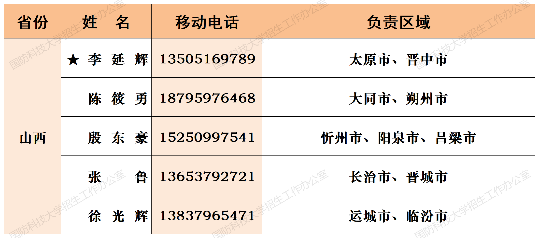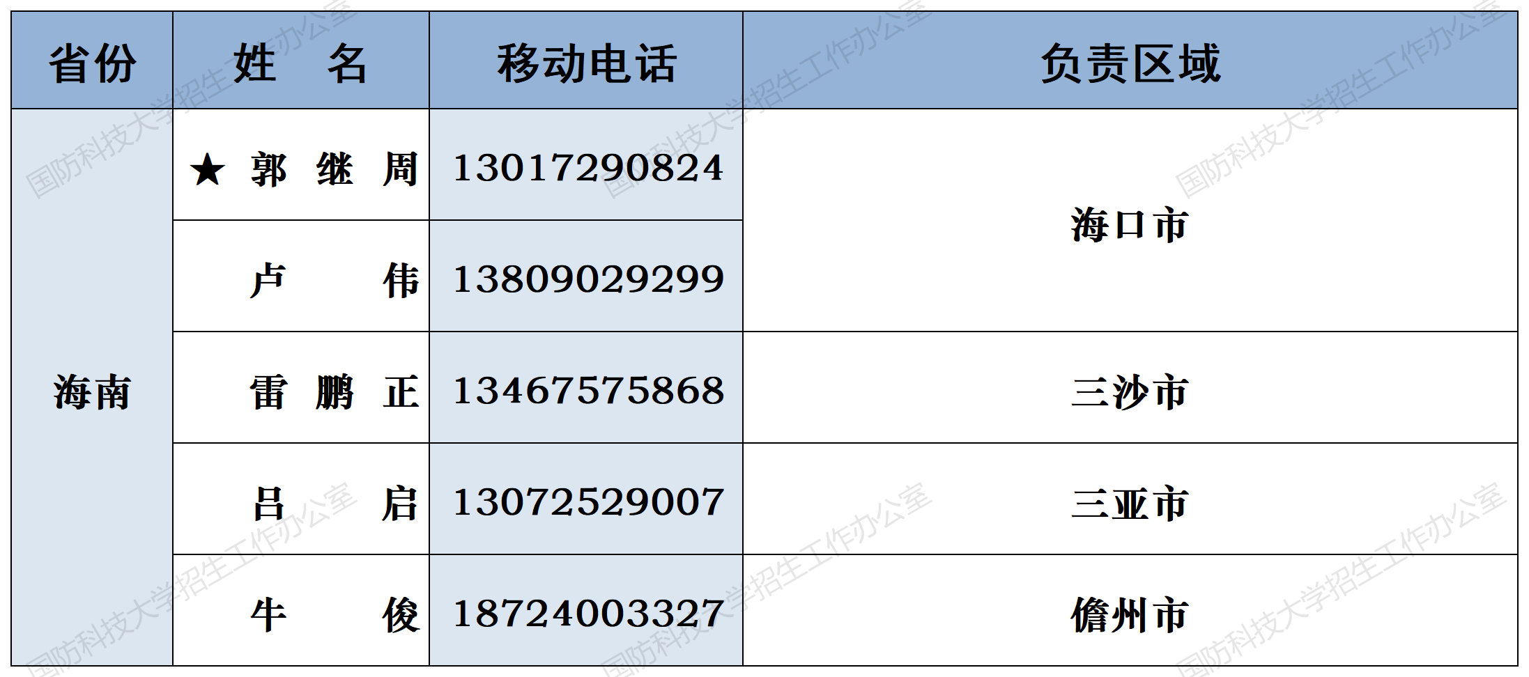 注:姓名前加“★”为各省(直辖市)招生组组长;若所在地域未明确招生老师,考生和家长可选择招生组组长或临近地域招生老师进行咨询。