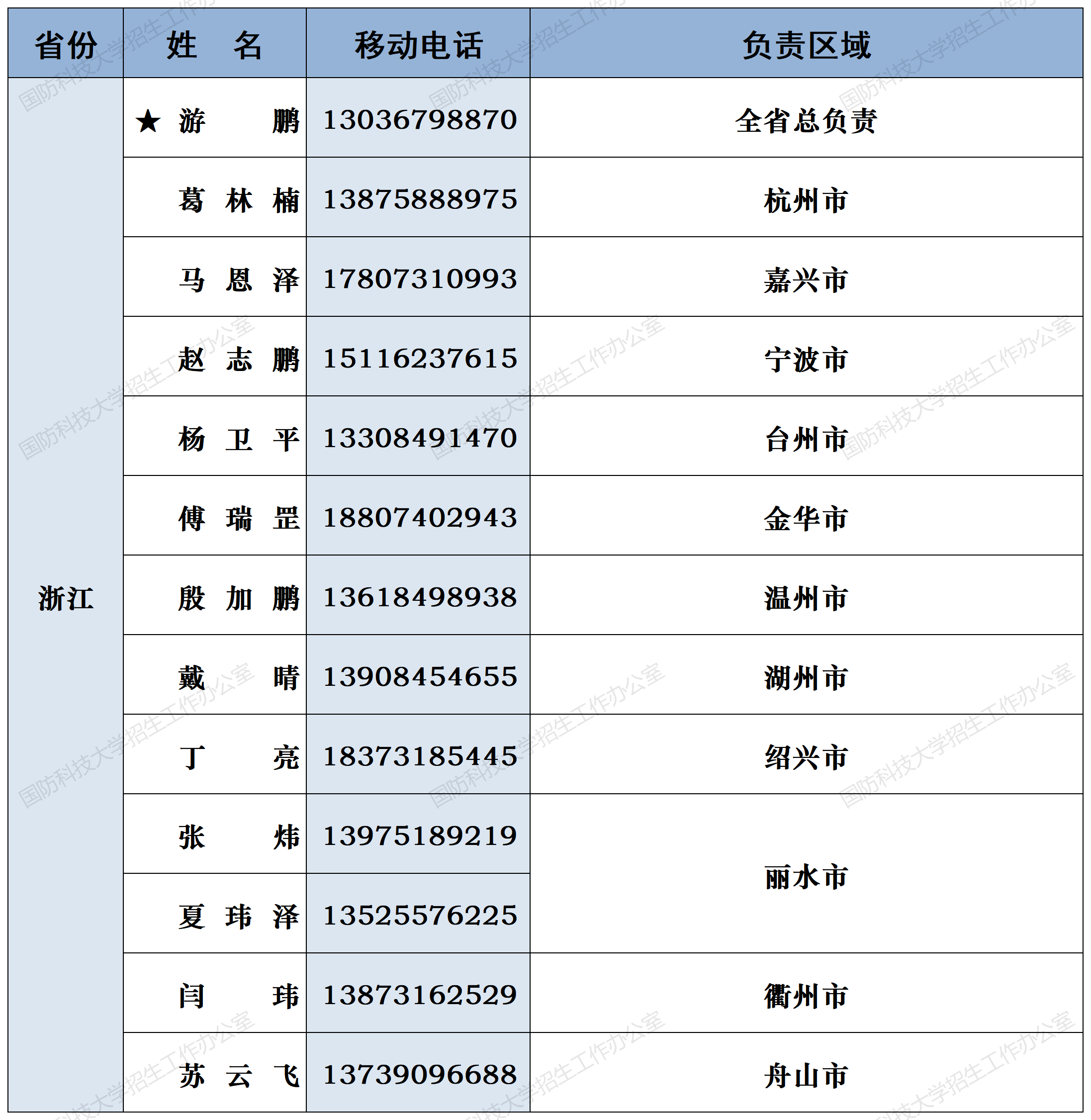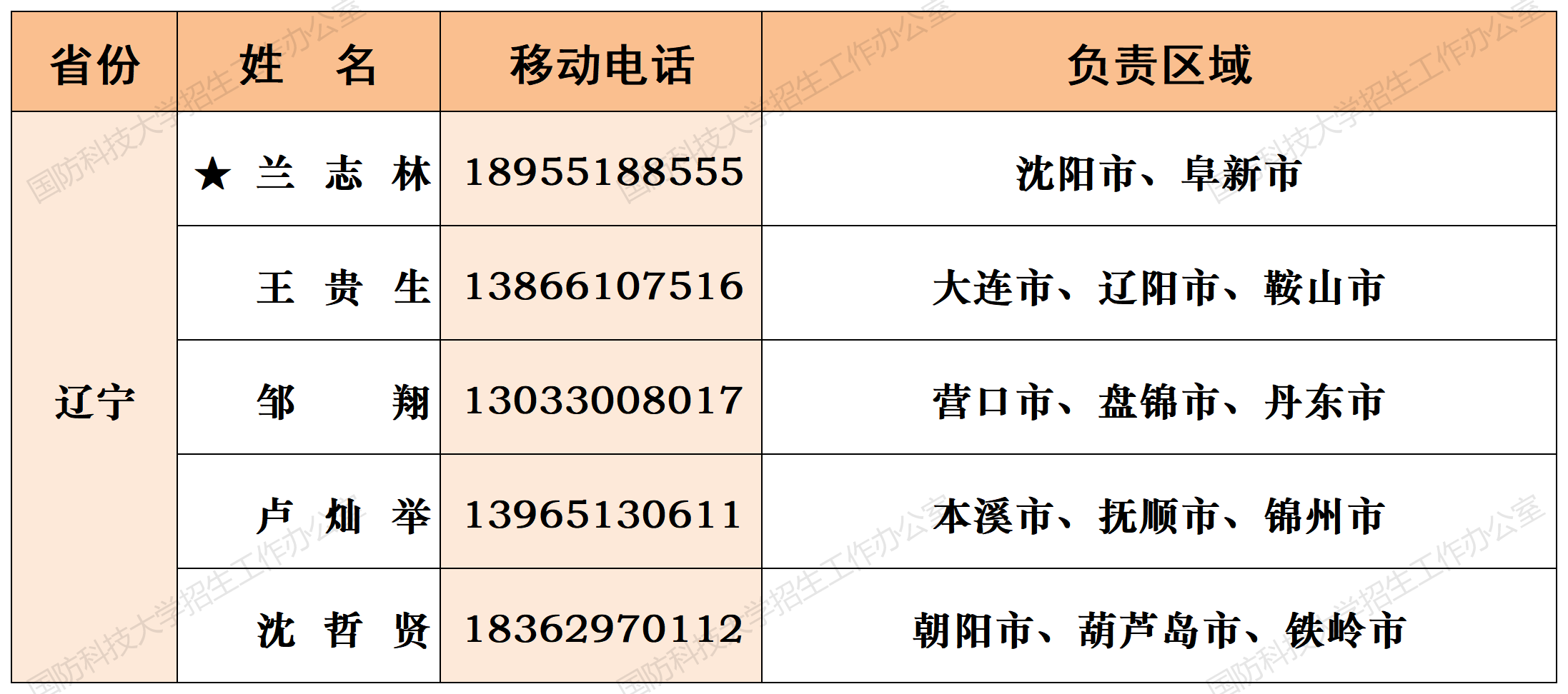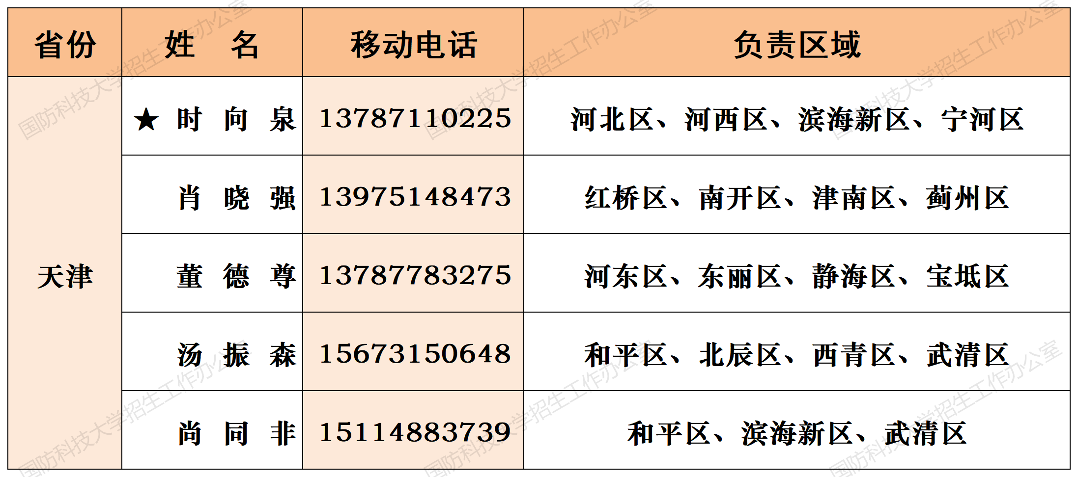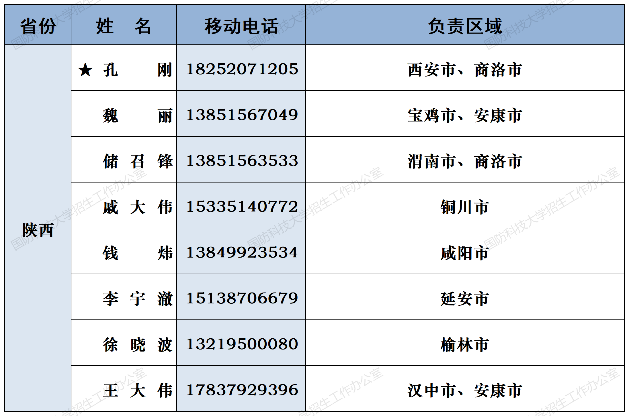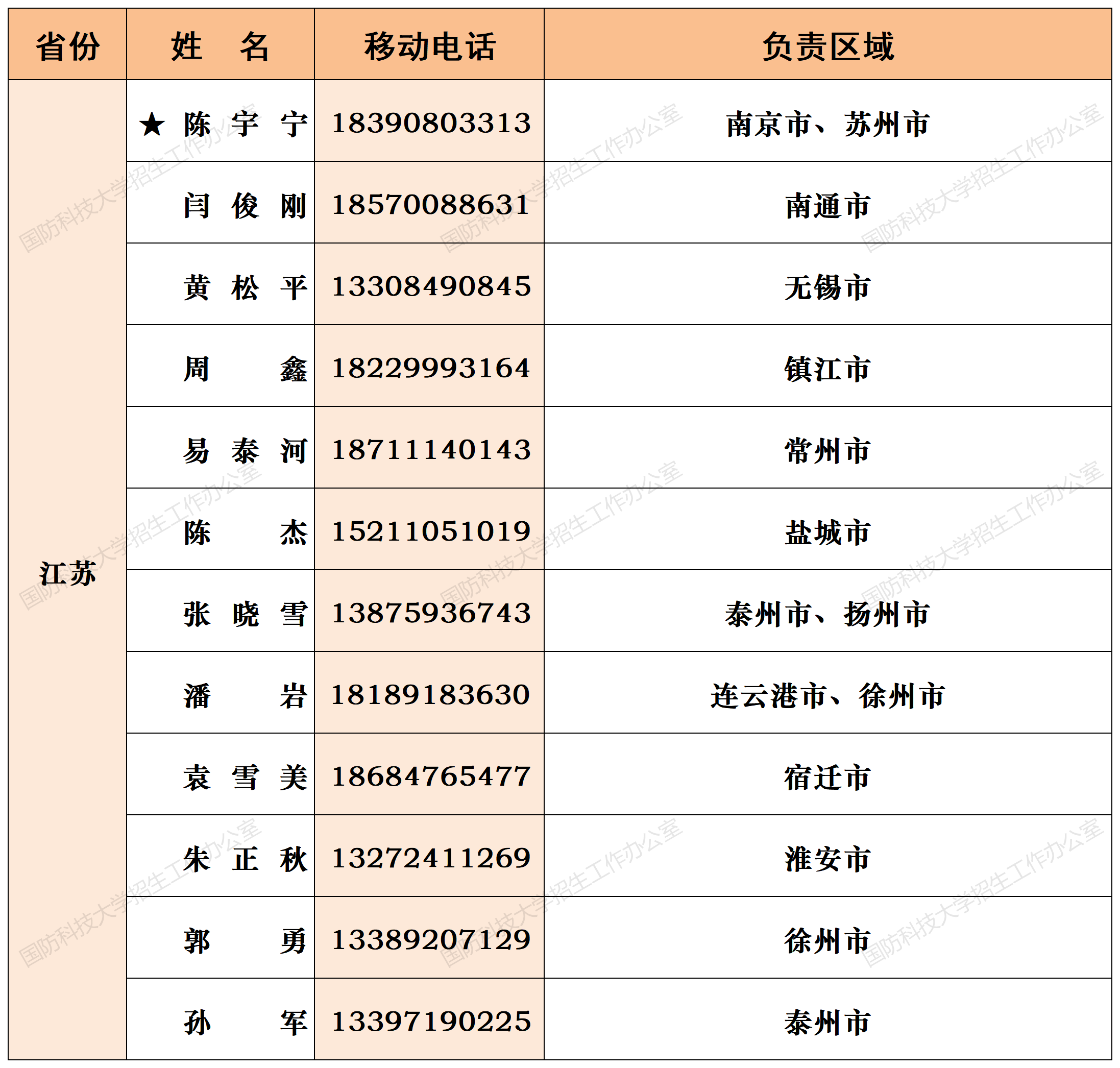 注:姓名前加“★”为各省(直辖市)招生组组长;若所在地域未明确招生老师,考生和家长可选择招生组组长或临近地域招生老师进行咨询。