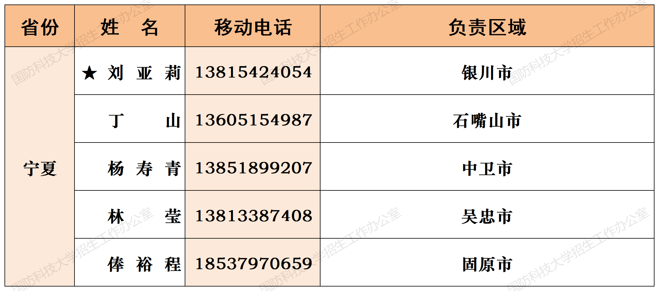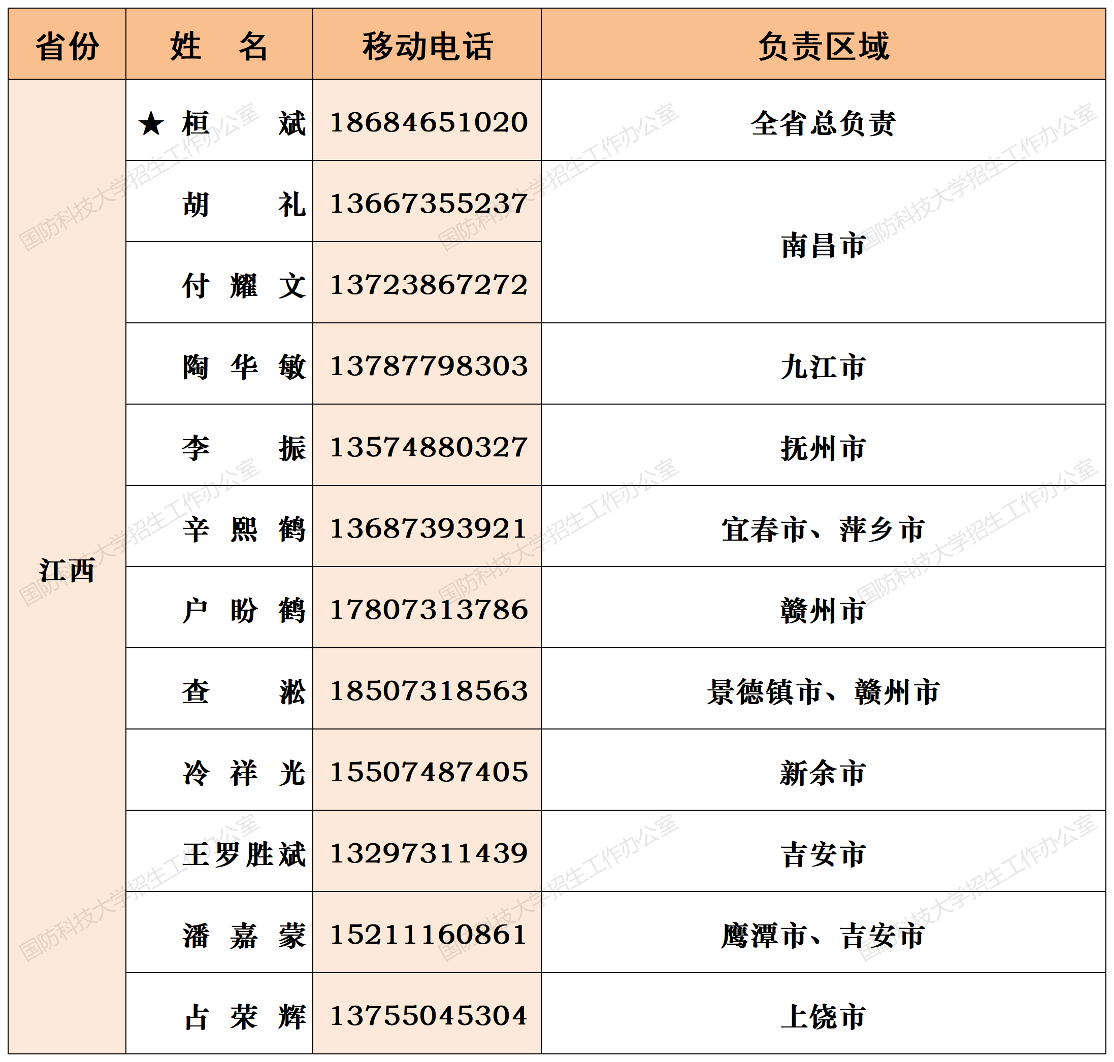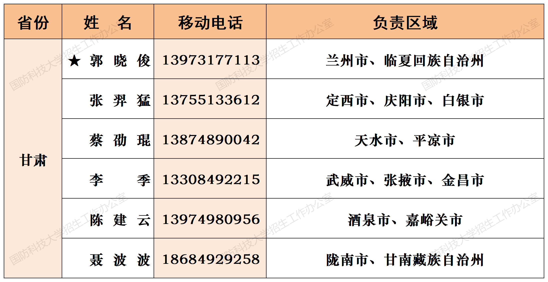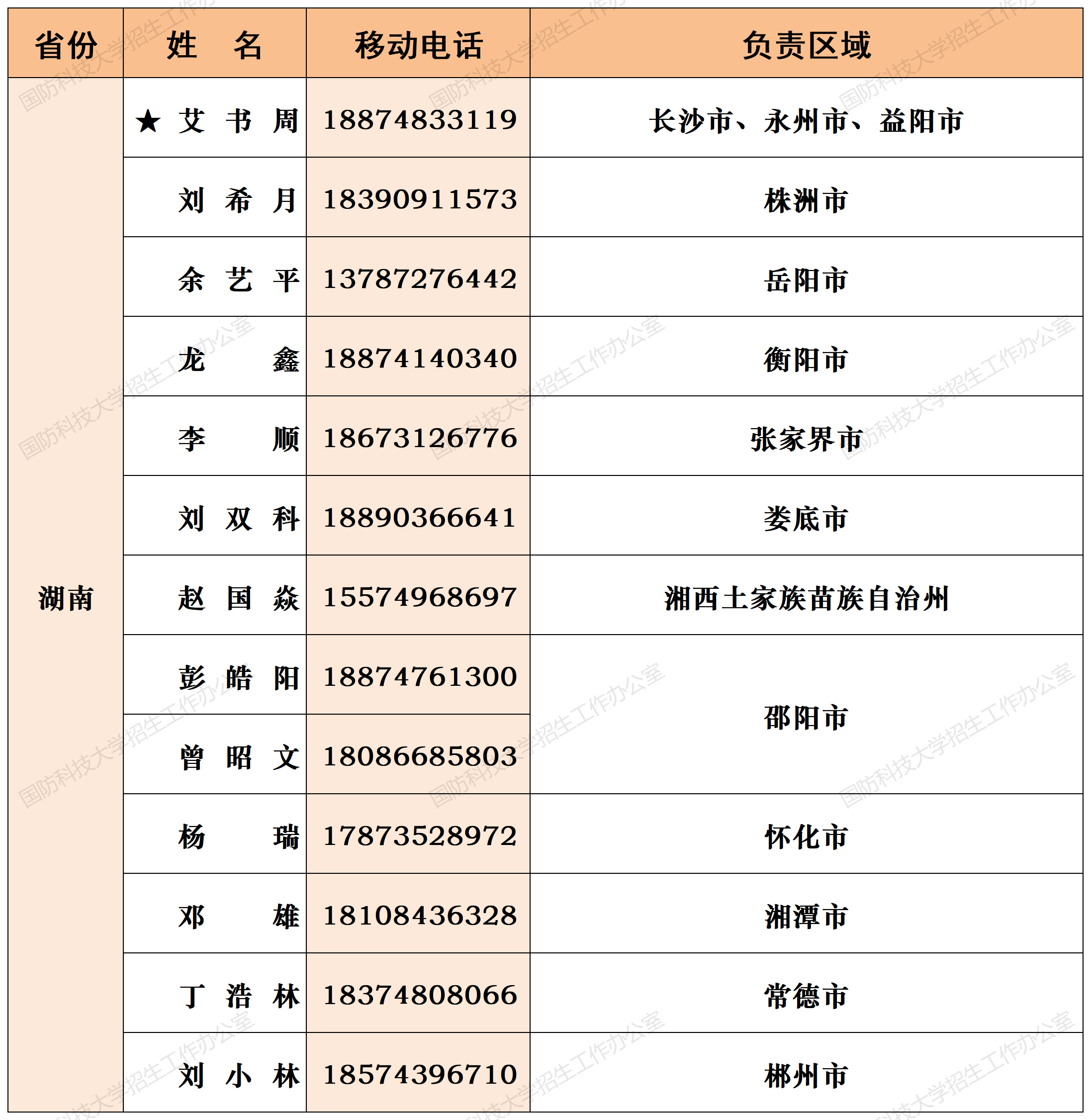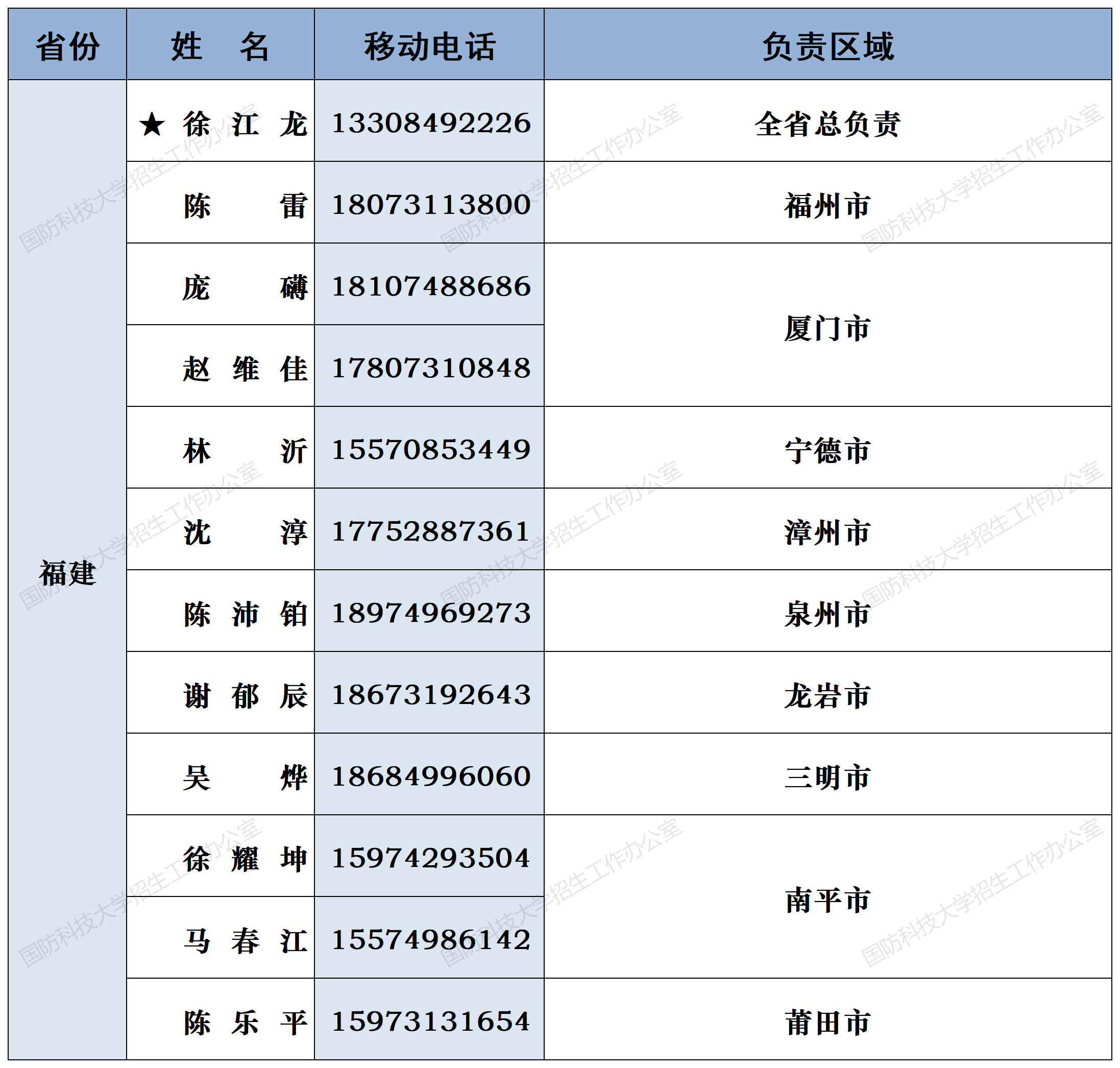 注:姓名前加“★”为各省(直辖市)招生组组长;若所在地域未明确招生老师,考生和家长可选择招生组组长或临近地域招生老师进行咨询。