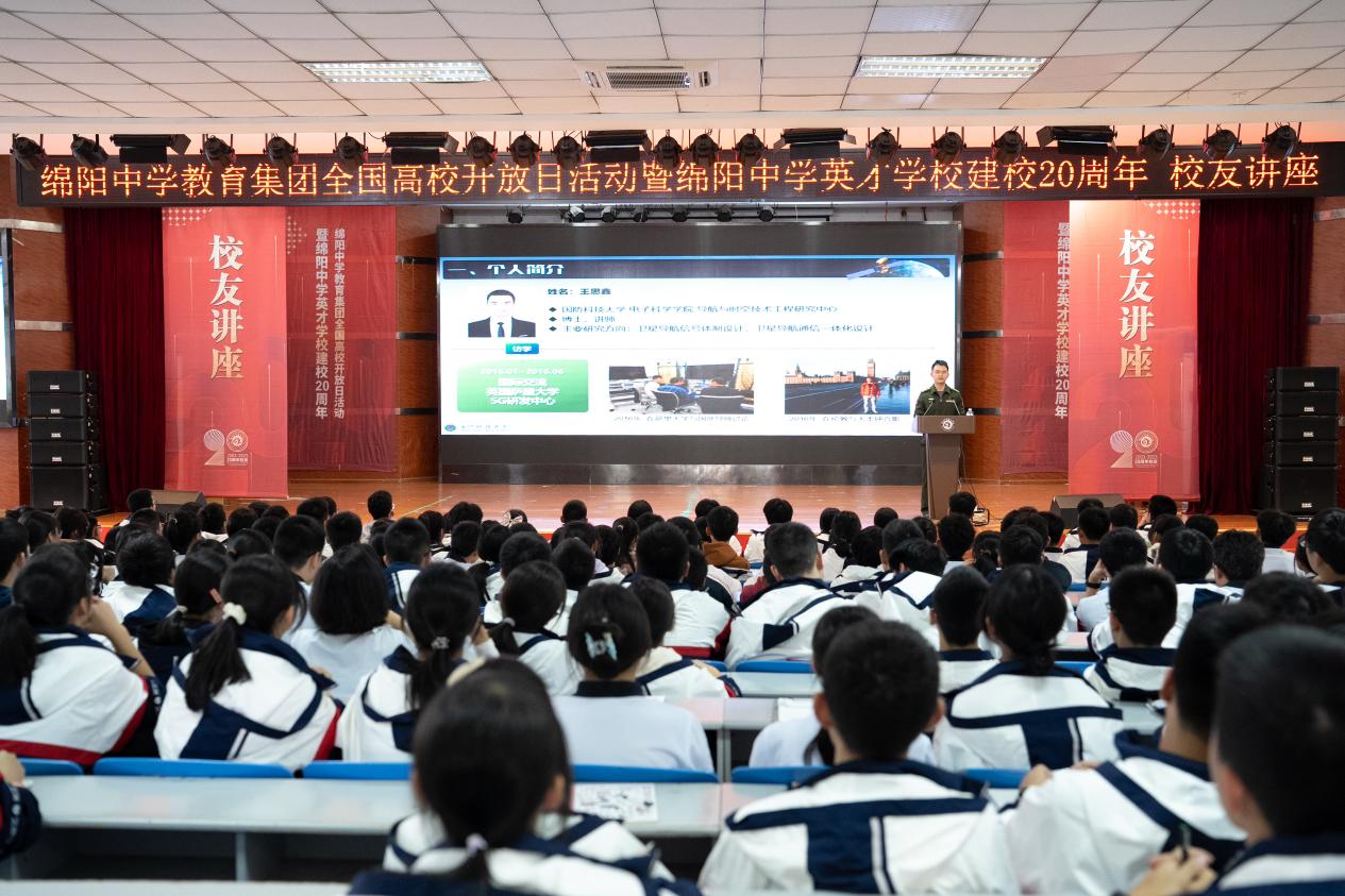 在绵阳中学英才学校庆典现场,该校初2009届优秀校友、我校北斗团队成员王思鑫老师作为特邀代表发言,给中学母校送上了特别的生日祝福。“往事如歌,岁月如诗。英才不仅交给了我知识,教会了我独立,更重要的是让我懂得,要树立远大理想,要把个人的力量投入到民族复兴的伟大事业中,我从军报国的梦想也是在这里变得清晰且坚定”,王思鑫老师回顾了当年在中学的求学经历,心潮澎湃、感慨万千。