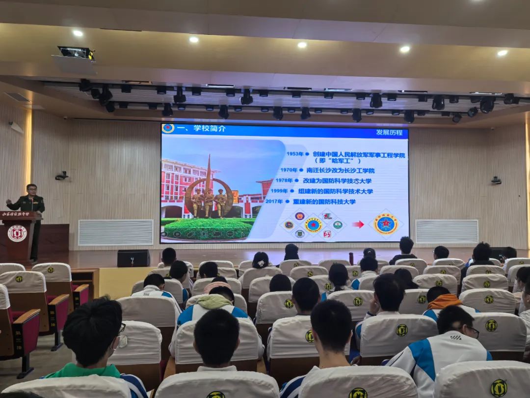 每到一所中学,山东招生组都召集意向考生集中交流。组长李爱平教授向同学们详细介绍了学校的发展历程、文化特色、课程设置、专业特点、建设成就等,鼓励广大学子积极报考学校,携笔从戎,成就梦想。宣讲结束后,同学们积极参与互动交流,询问报考条件、招生政策、未来发展等多方面的问题,招生老师一一耐心解答。