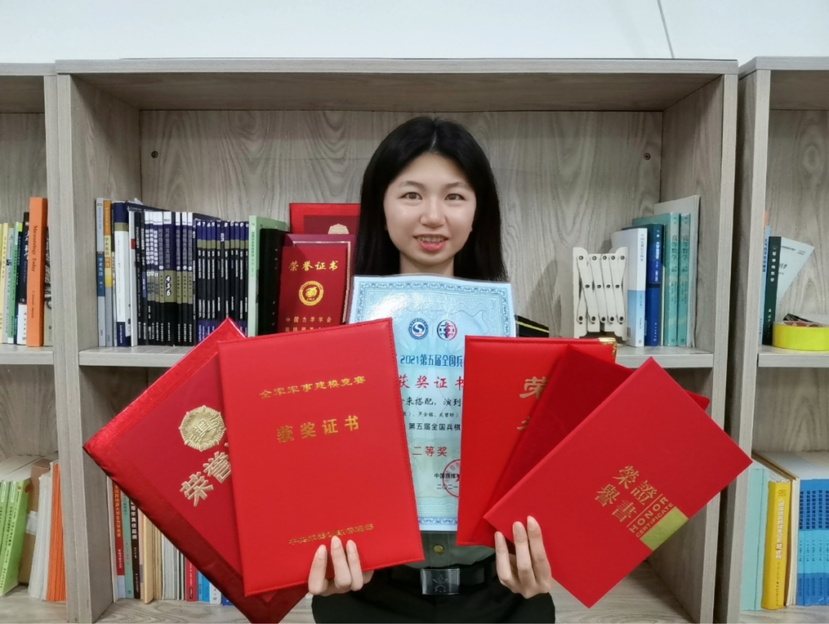 关曾昕是一个集主持、唱歌、表演于一体的“全能才女”,每次大型晚会,总少不了她的身影,队里的学员都戏称她为“舞台钉子户”。担任强军知识竞赛主持人、参与舞台剧主演、组织联欢晚会……“一支话筒、一束灯光,站在舞台上,自己就是主角儿!”关曾昕的自信开朗给身边人带来不少温暖和阳光。舞台下,她还是个小小军事迷,喜欢阅读军事类书籍,爱看军事题材纪录片、电视剧,尤其着迷于“披挂上阵”参加兵棋推演。和军事有关的竞赛场上总少不了她的身影,墨子杯兵棋推演竞赛全国二等奖、军事建模全军二等奖见证着她的付出与成长。