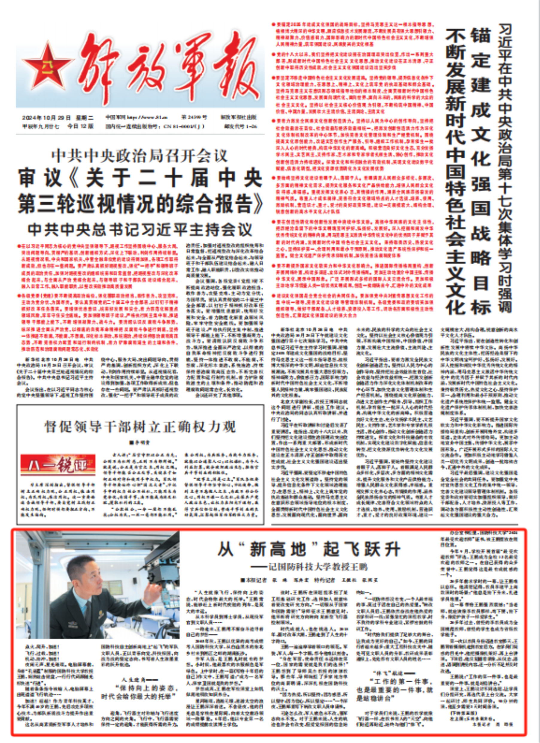 从今天的“新高地”起飞翱翔,向未来的“新高地”勇敢冲锋——新时代新征程,这是王鹏和每名国防科大人给出的响亮回答。
