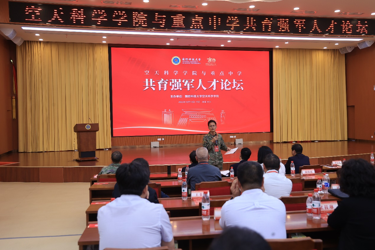 空天科学学院罗亚中院长以自身成长为例,生动讲述了学校办学育人的优势特色,号召广大高中一道为共同培育有能力、有担当的青年学生,并使之成长为家国情怀深厚、创新能力突出、堪当强军重任的国家栋梁而共同奋斗。