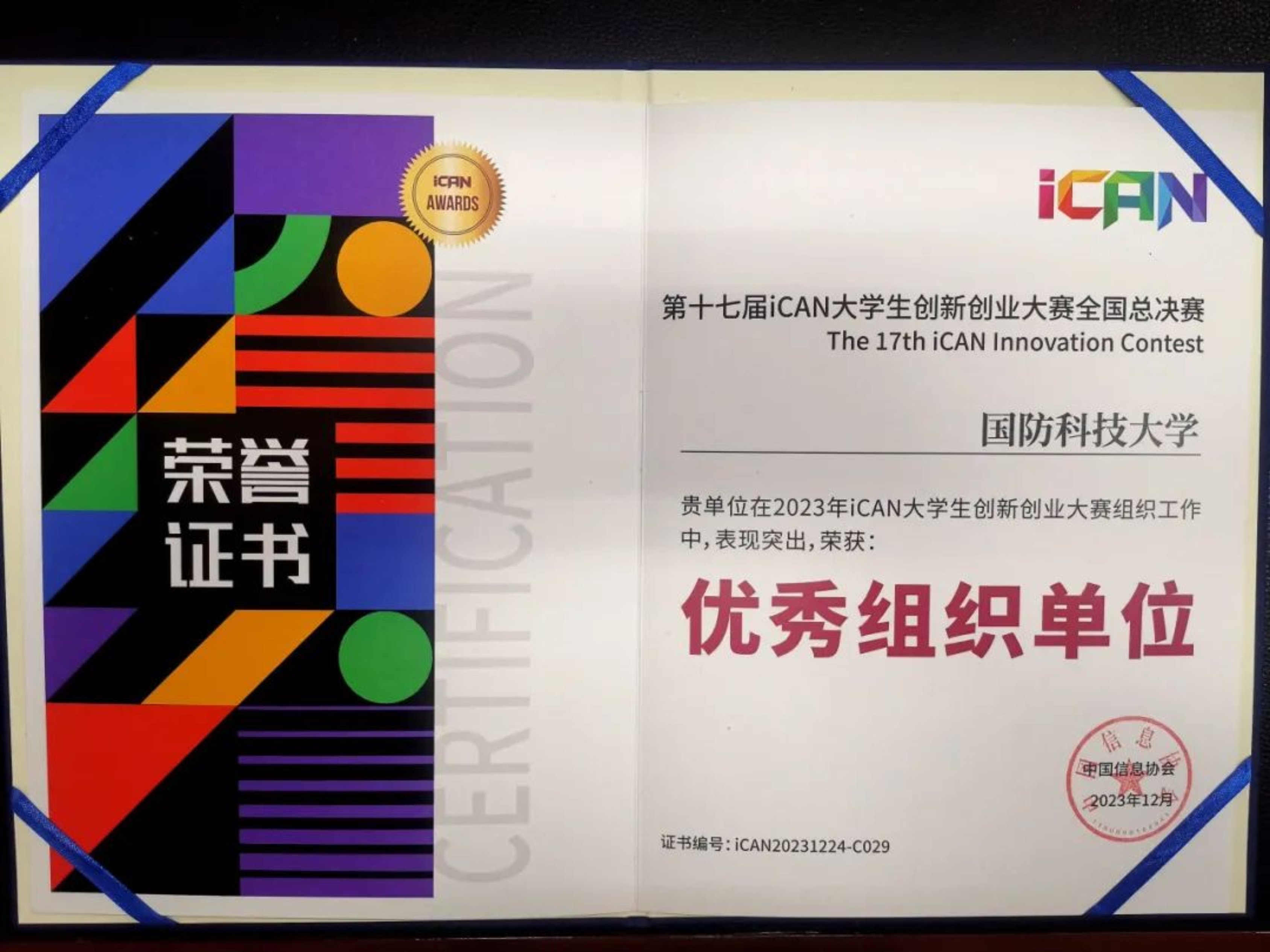 近日,第十七届iCAN大学生创新创业大赛全国总决赛在北京落下帷幕,国防科大获得国家一等奖2项、二等奖2项、三等奖1项,并获优秀组织奖,智能科学学院带队老师卢坤获评iCAN教育之星。