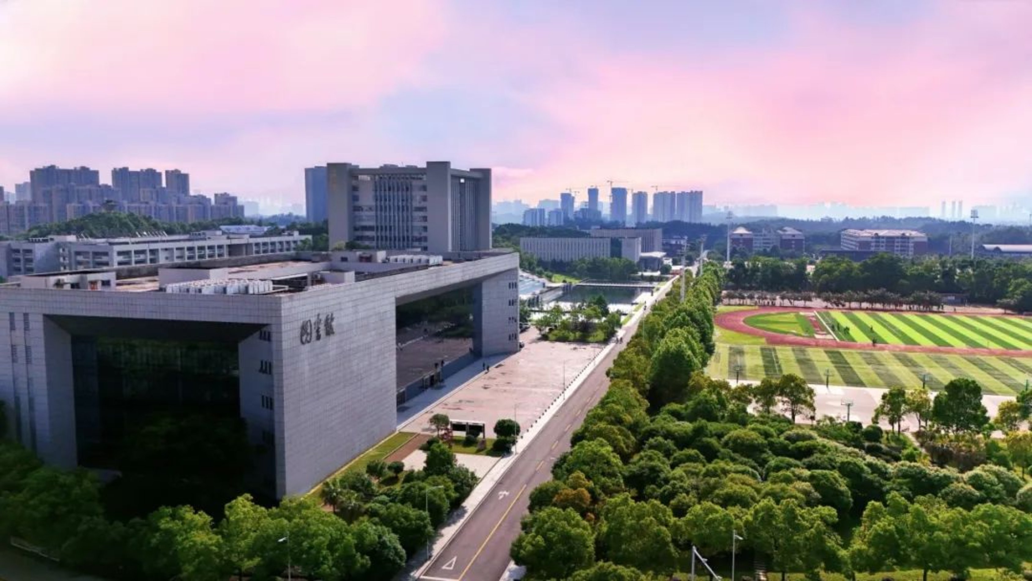 我们从田径场的灼灼红霞中走过