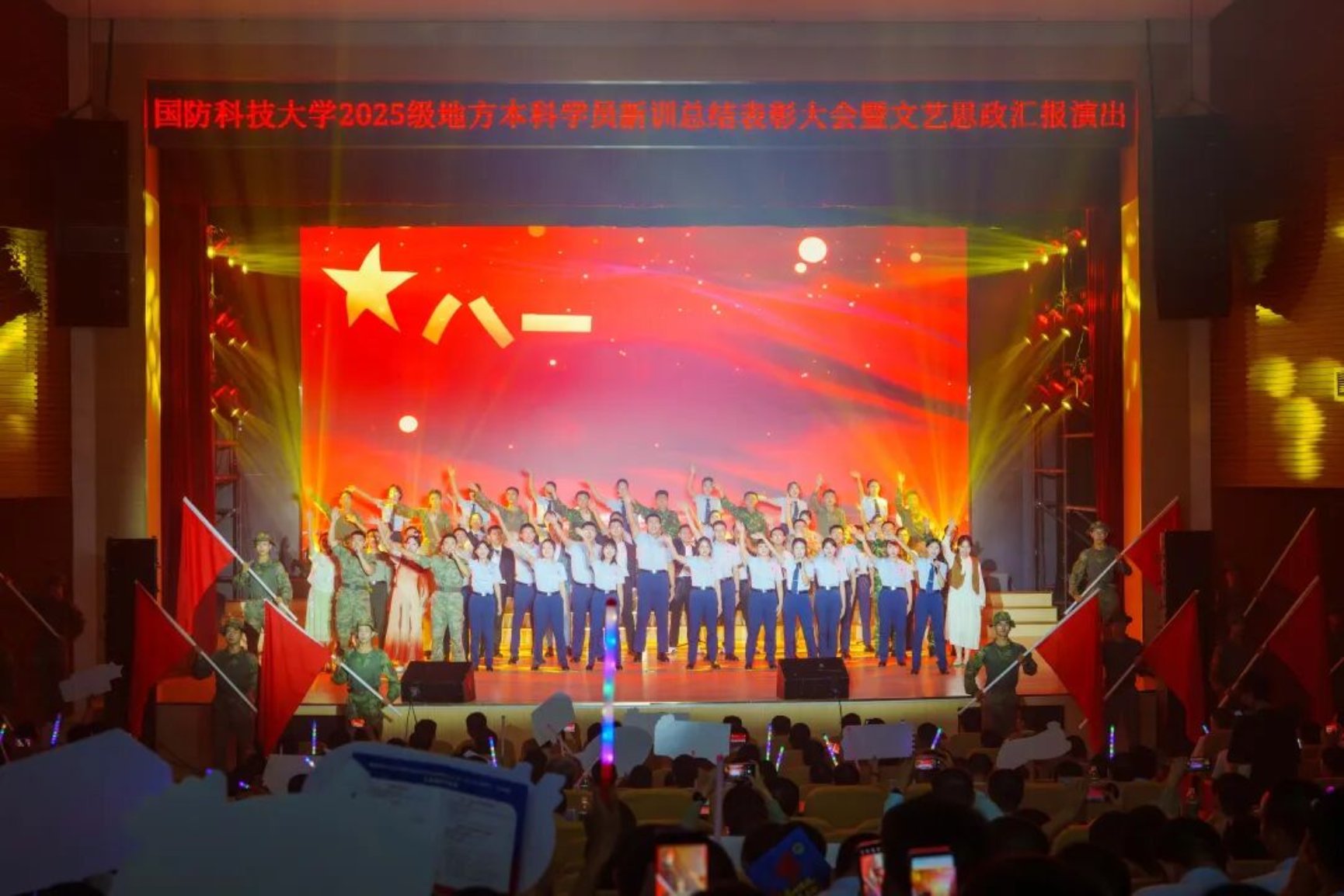 高地铸魂 青春启航, 新训总结表彰大会暨文艺思政汇报演出在长沙校区三号院举行, 演出在全场大合唱《启航》中落下帷幕