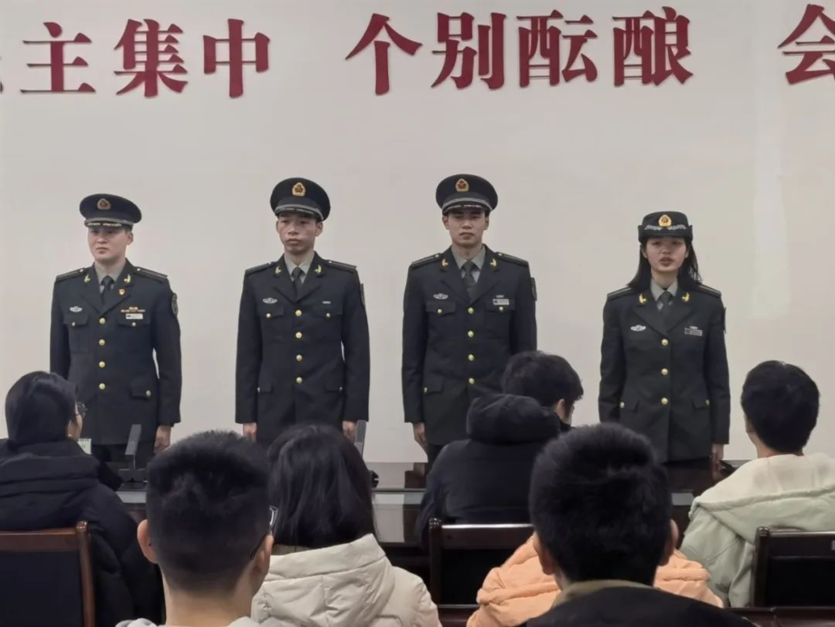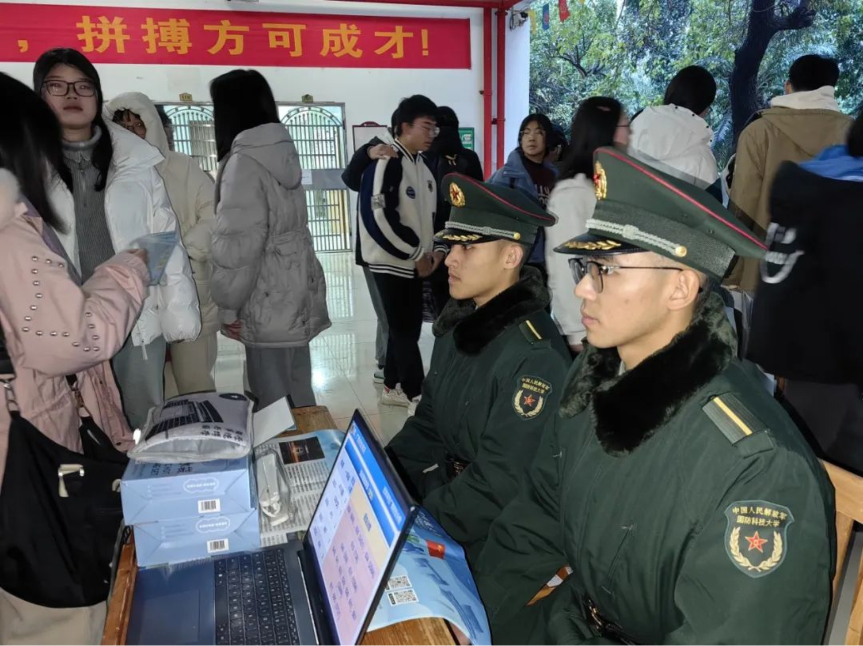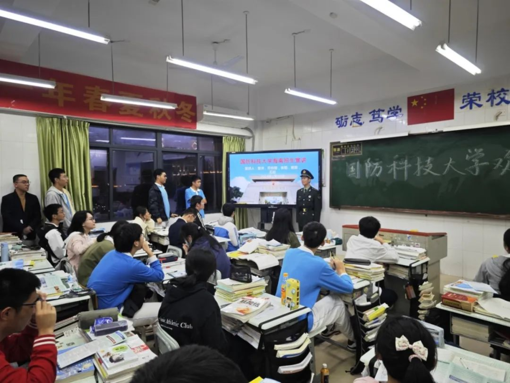 1月31日,由学校生长军官本科学员杨涛榕、谭卢潇霄、赵俊和、伍迪、周嘉惠和吴灏六人组成的汇报宣讲团来到南宁市第二中学进行宣讲。宣讲团在重点班级进行了宣讲答疑,同学们对国防科大表现出了浓厚的兴趣,纷纷咨询报考事宜。宣讲结束后,许多报考意愿强烈的同学通过学校考生服务系统登记了生源信息,希望获取更多学校资讯。同时,不少家长赞赏国防科大学员的年轻有为和踏实担当,希望自己的孩子能够像这些学员一样,穿上军装,从军报国,为新时代的强军事业贡献力量。