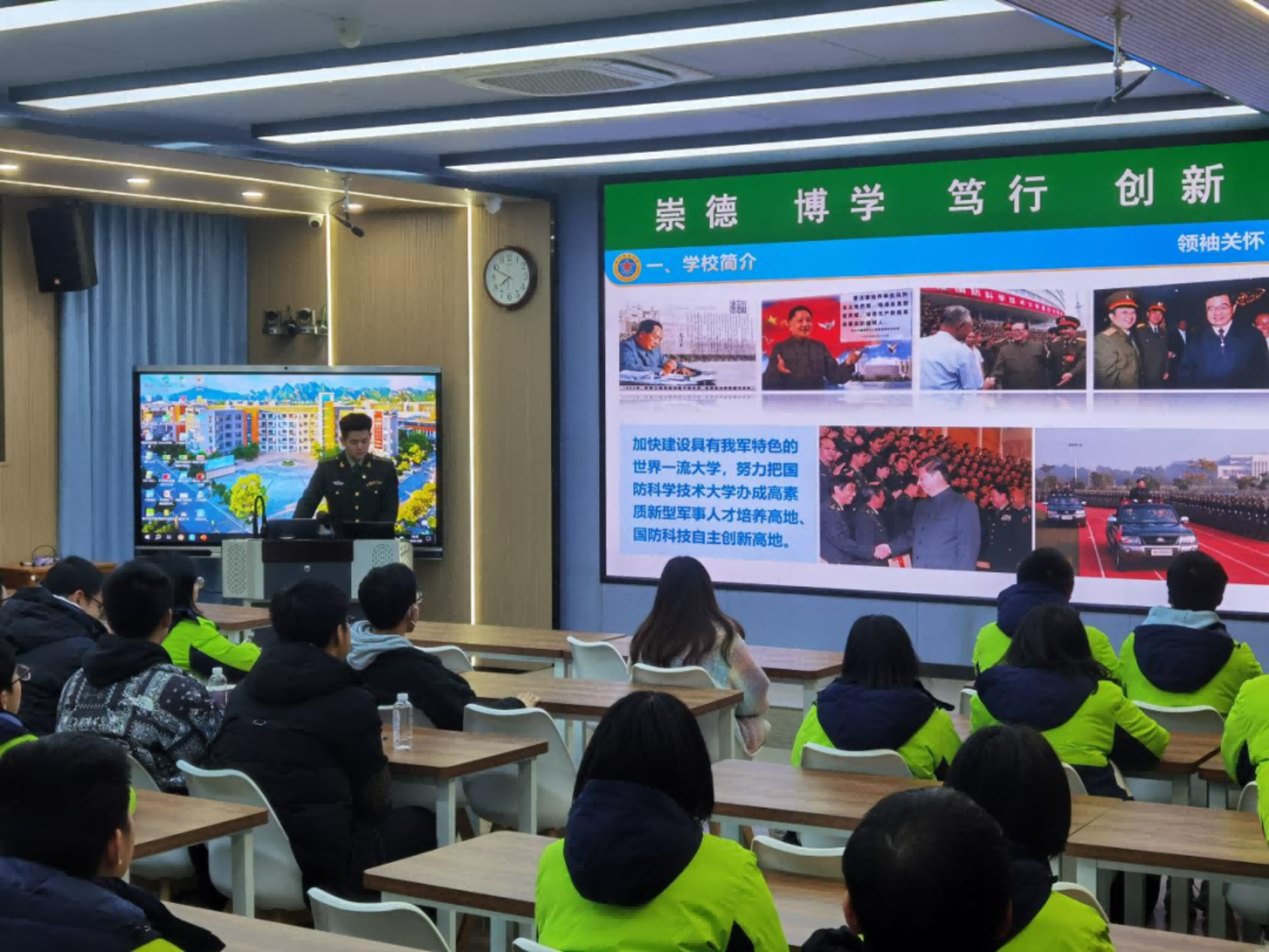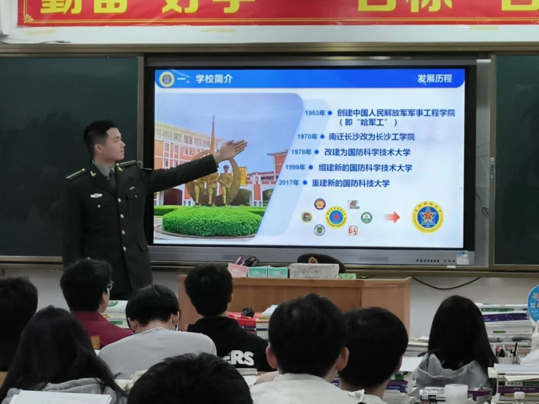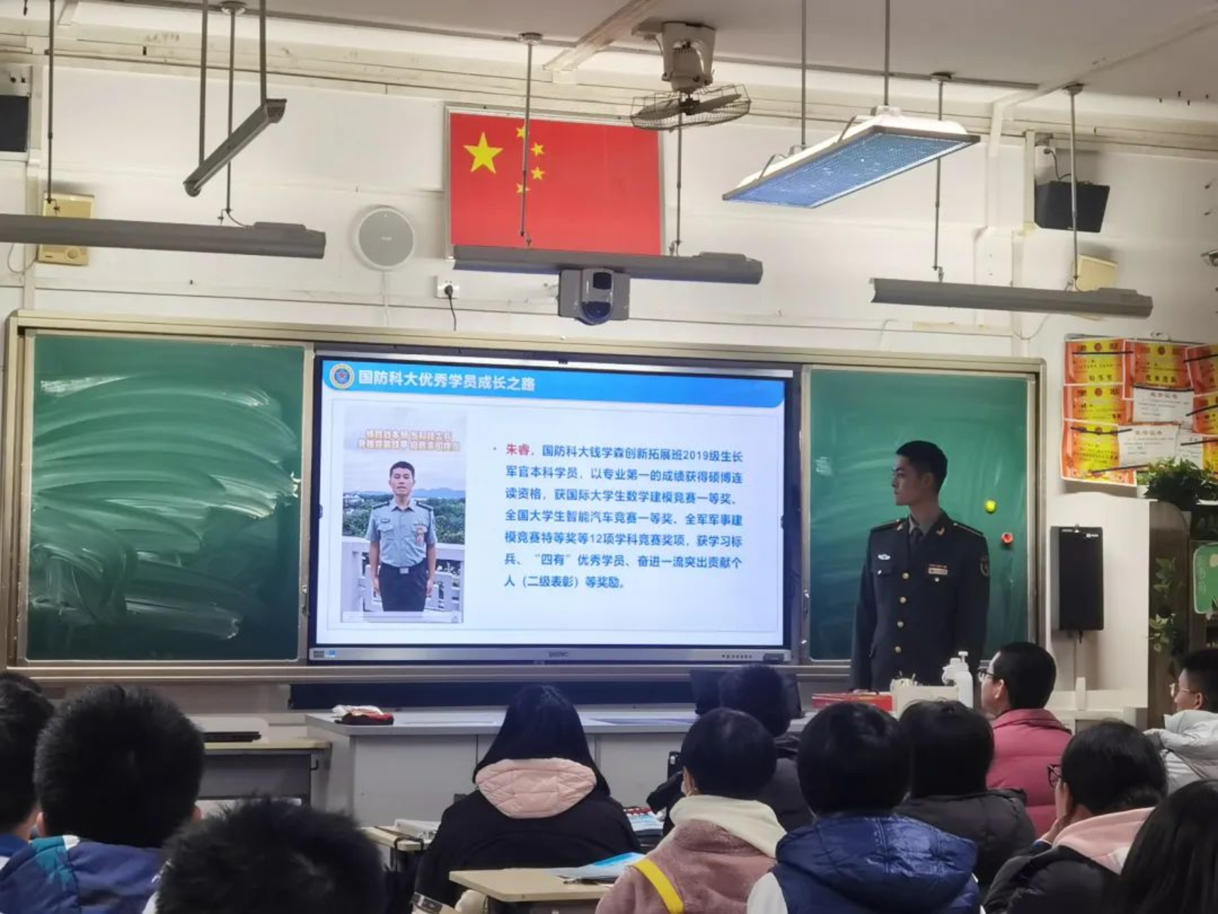 寒假期间,国防科大“母校中学行”汇报宣讲活动火热进行,近2500名学员深入1200余所母校中学,汇报成长历程、畅谈军校生活、分享学习心得,为学弟学妹解惑引路,鼓励优秀学子积极投身强军事业。