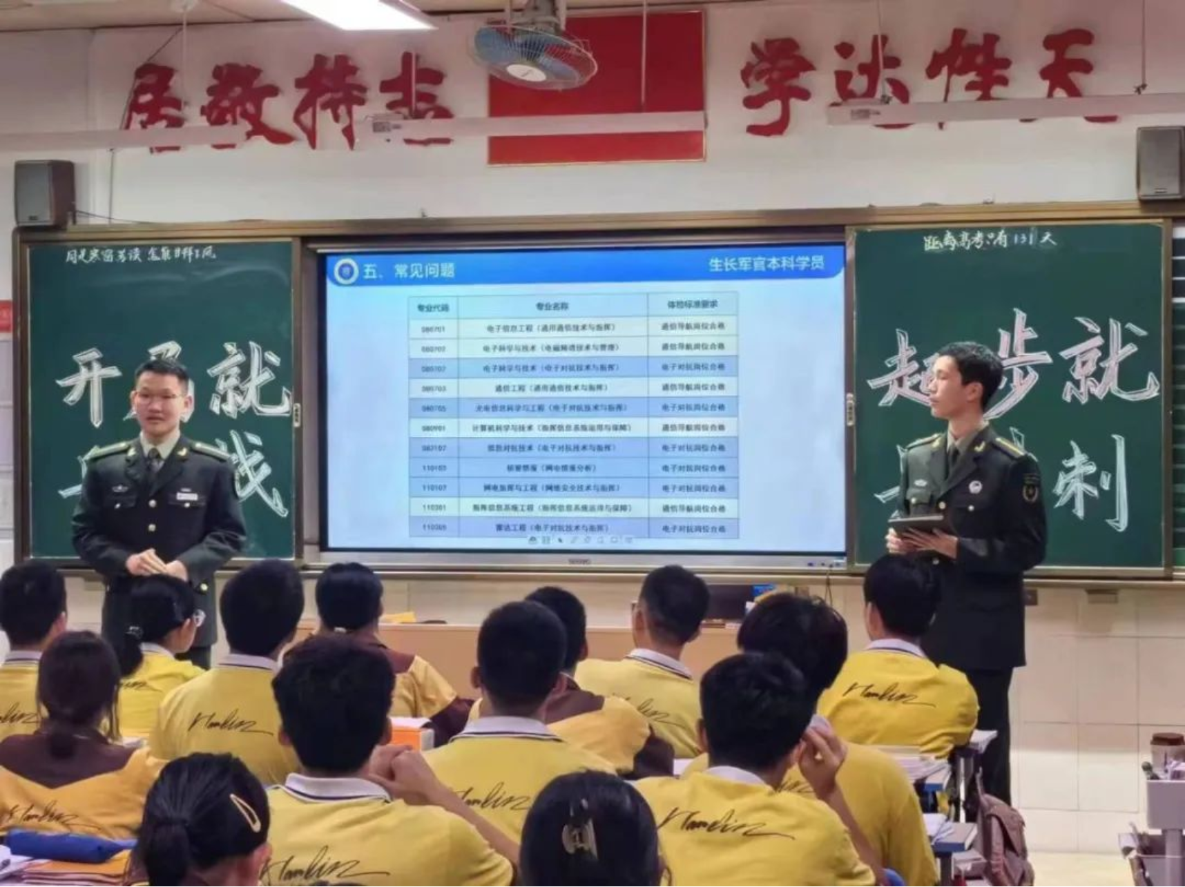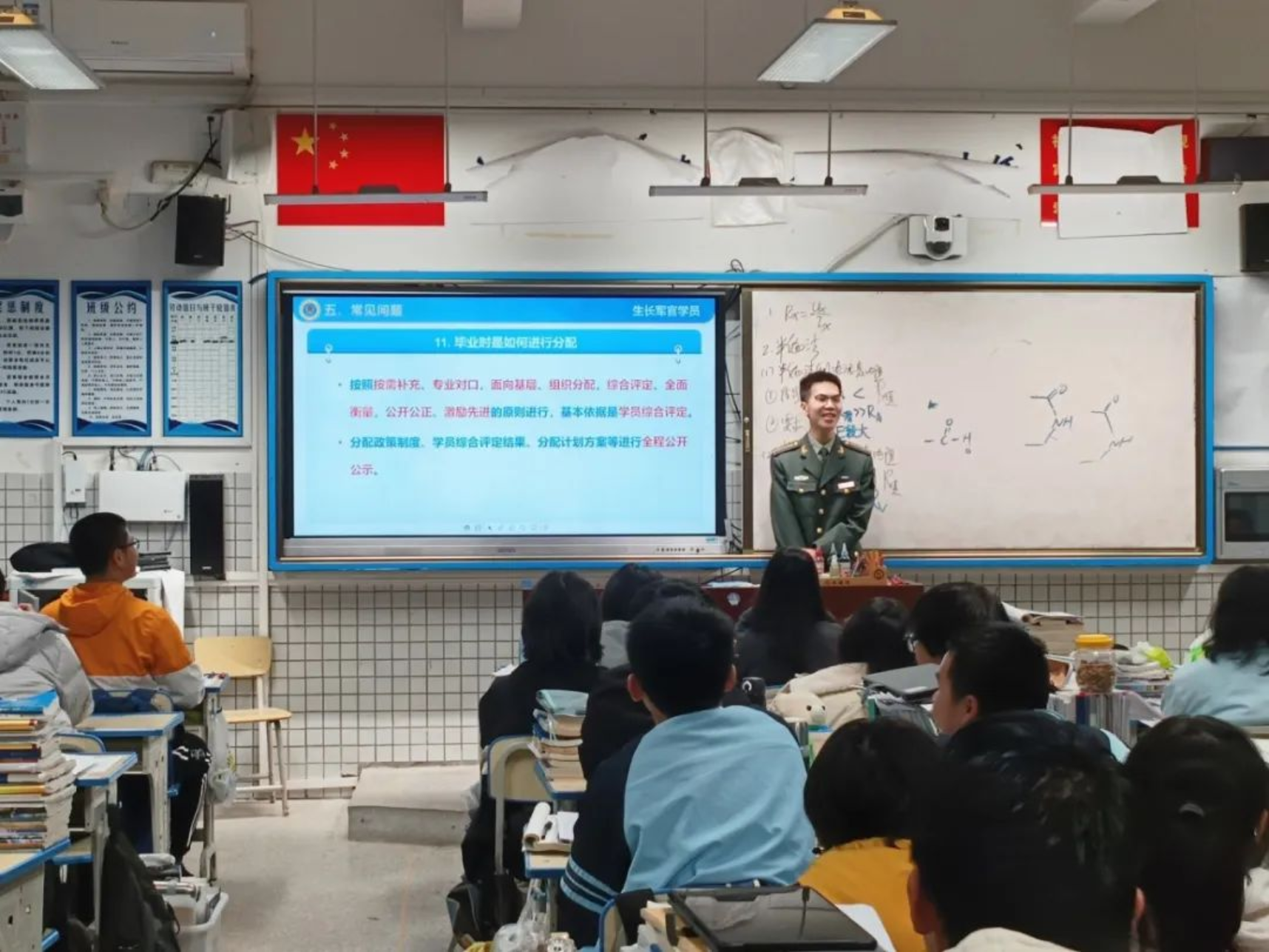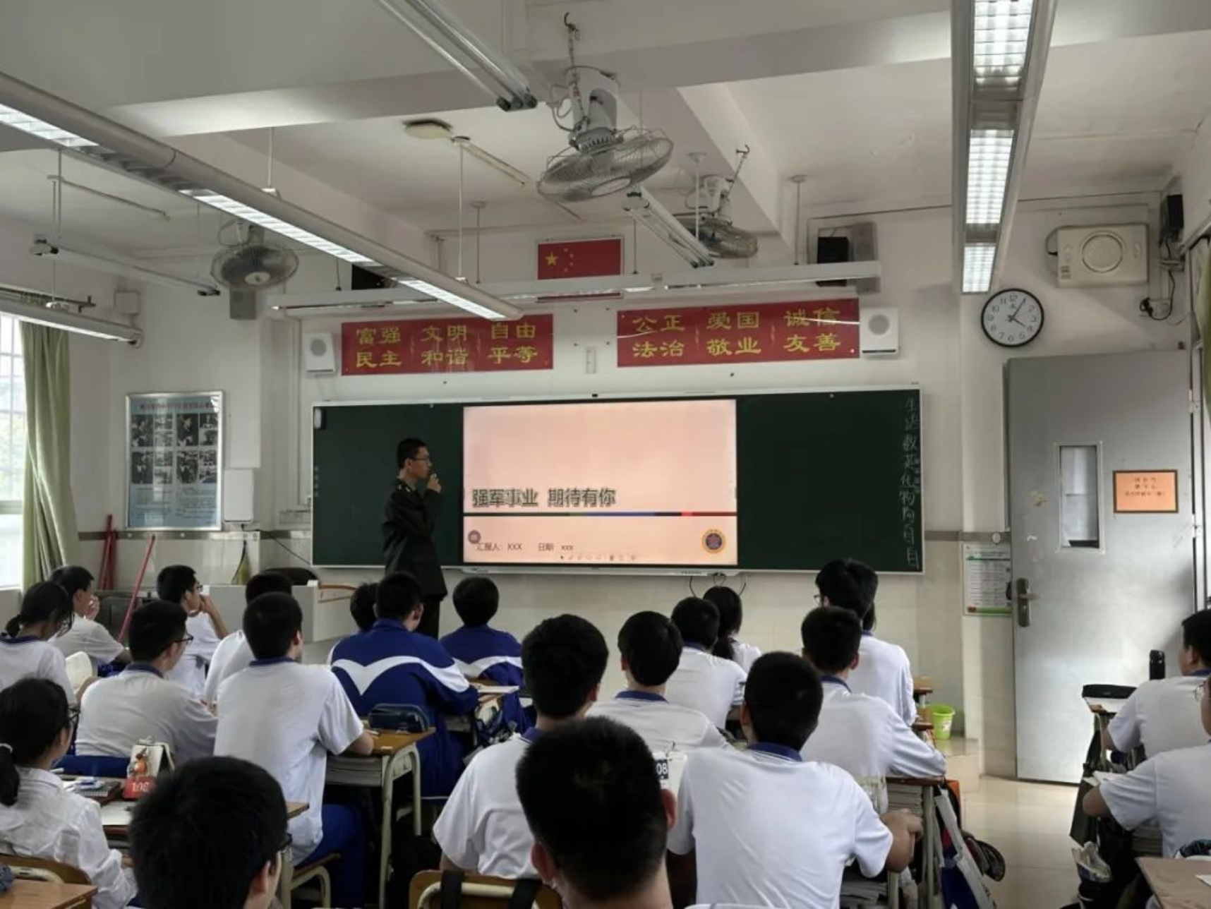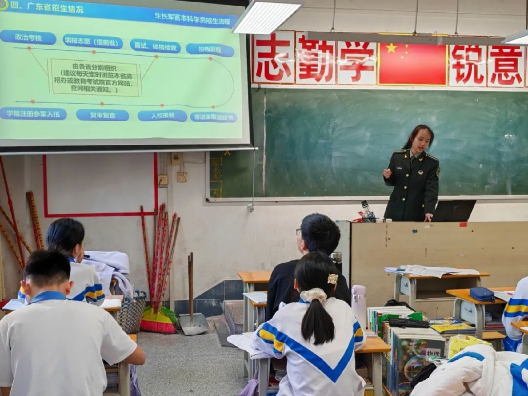 2月19日,毕业于深圳市华侨城中学的汇报宣讲团成员们在学校广东招生老师带领下前往母校开展招生宣讲。宣讲现场气氛热烈,家长与学生们的参与积极性十分高涨。此次活动不仅激发了众多高三学子对军队院校的向往和热情,更在低年级学生的心中播下了投身强军事业的梦想种子。这将激励他们不断奋进,以满腔热血投身国防事业,为实现报效祖国的远大梦想而努力奋斗。