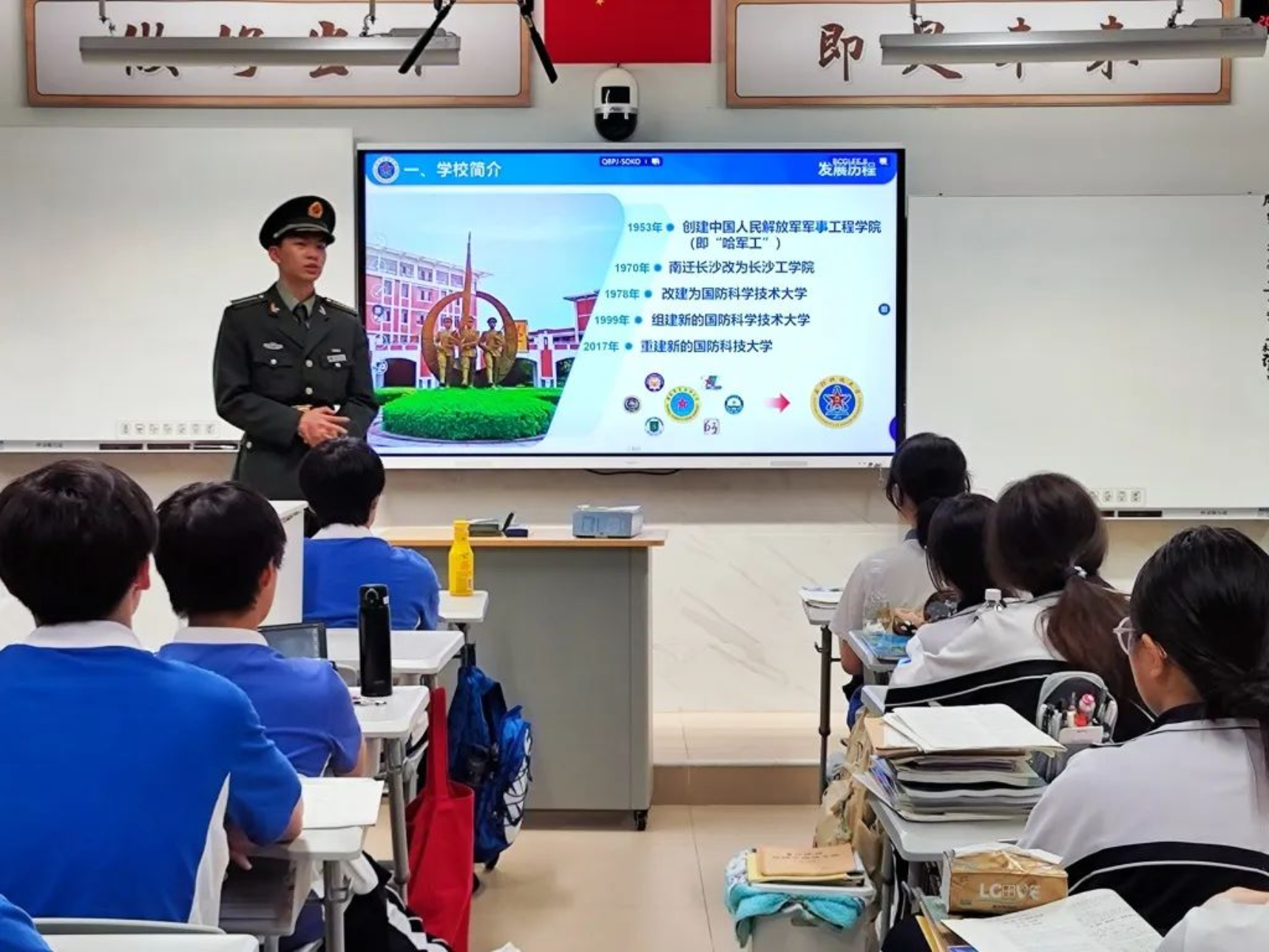 重返高中,我有幸与高三的学子们分享在科大四年的成长之旅。面对着这些年轻的面孔,我仿佛看到了四年前的自己,满怀憧憬地踏入科大校门。如今,我已从一名倾听者变为一位分享者。我渴望将国防事业的使命与责任传递给每一位有志青年,激励他们加入我们这个充满激情与智慧的集体。