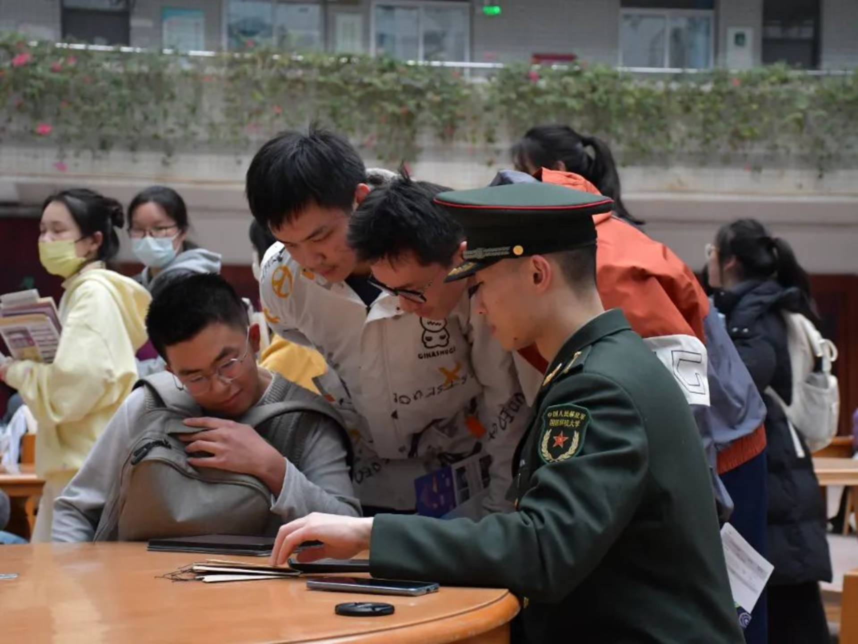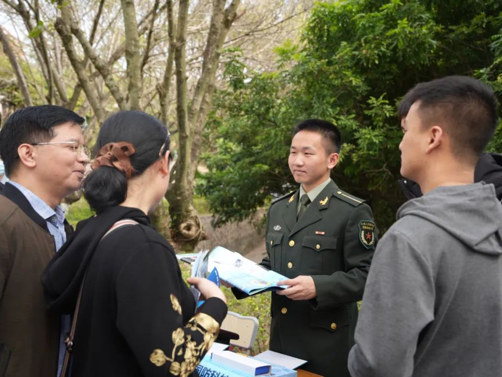 我感受到了学弟学妹们对于国防事业如火般的热情。为了达到更佳的宣传效果,我们身着军装进行宣讲。许多优秀学子纷纷前来咨询,他们展现出了强烈的献身国防意愿,这让我深受感动。我尽力为家长和学生们答疑解惑,希望他们未来能够如愿加入我们,共同为国防事业贡献力量。