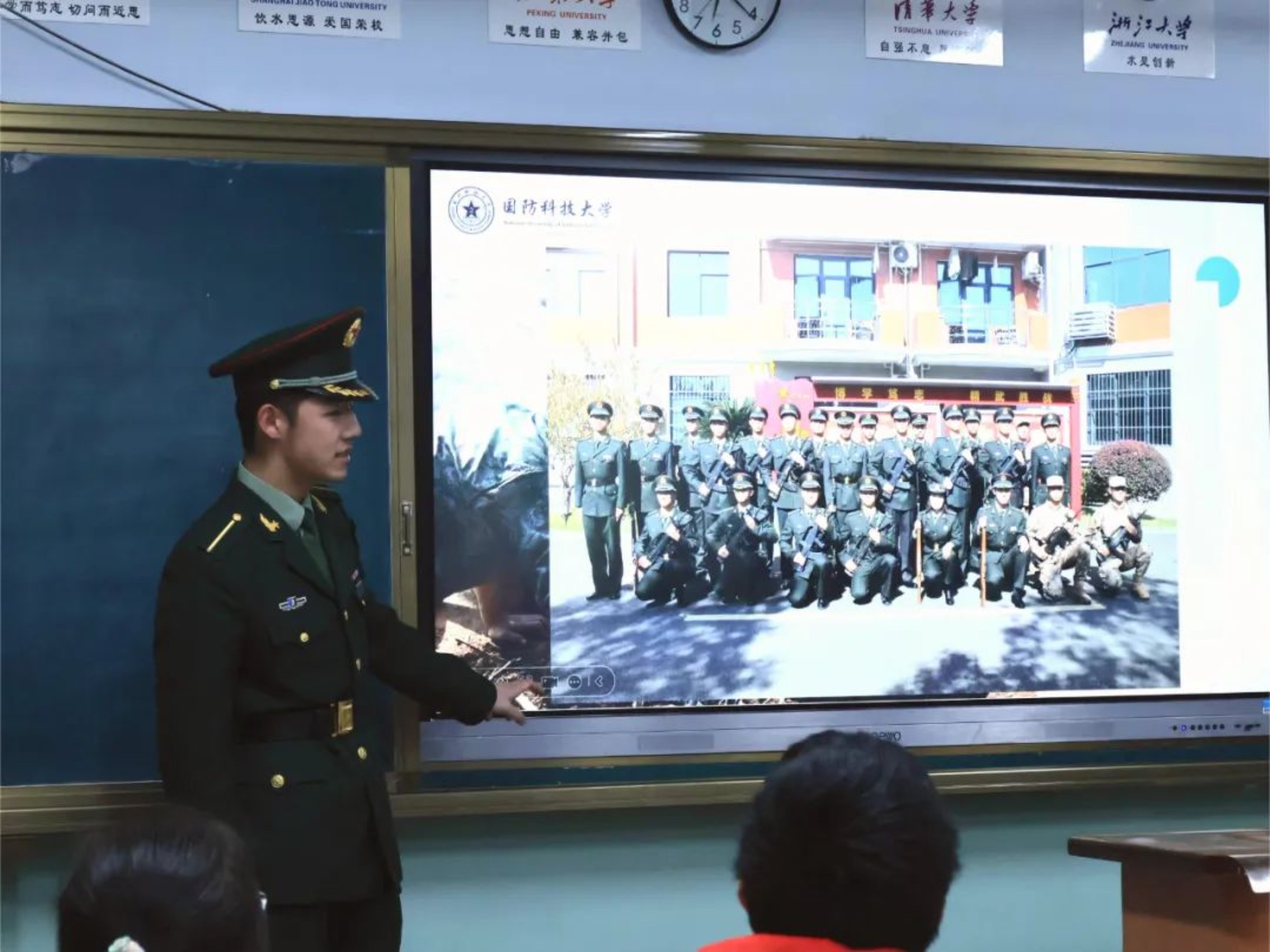 宣讲中,学弟学妹的热情、好奇和活泼让我触动。我将我热爱的科大描绘给他们,让追梦的少年对目标更清晰。在科大两年的生活,使我对科大有了新的认识,更加坚定投身强军事业的决心。我向学弟学妹们分享这份喜悦,并鼓励他们实现梦想,为国防事业发展贡献力量!