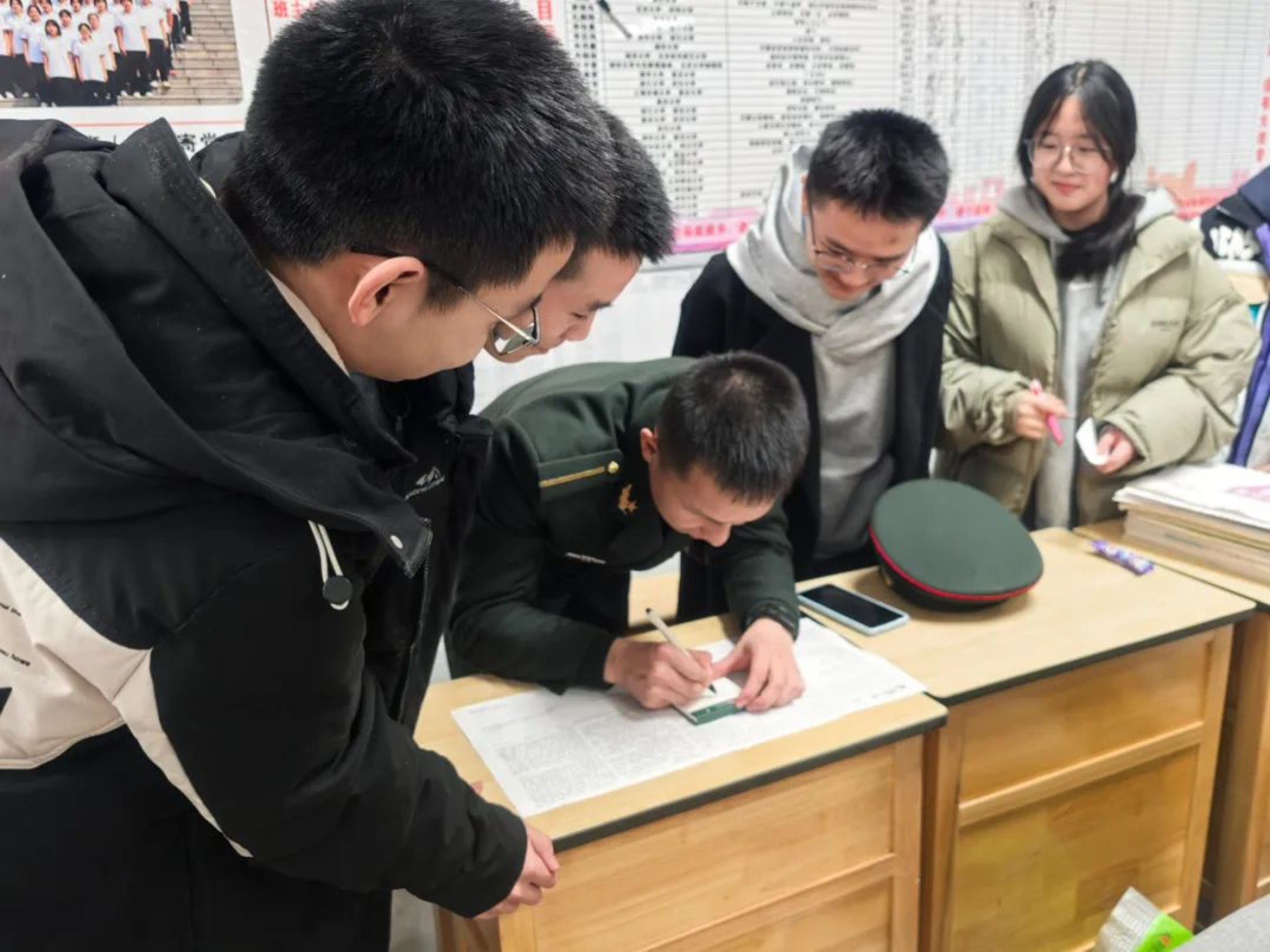 活动现场,生长军官学员邓嘉欣和无军籍学员欧阳鹏昊从不同角度为同学们耐心解答各类疑问,详细介绍国防科大基本情况,分享成长经历以及备考经验,并贴心送上学校主题文创产品。在热烈的交流互动中,一颗颗立志献身国防、逐梦强军征程的种子悄然在同学们心间种下。