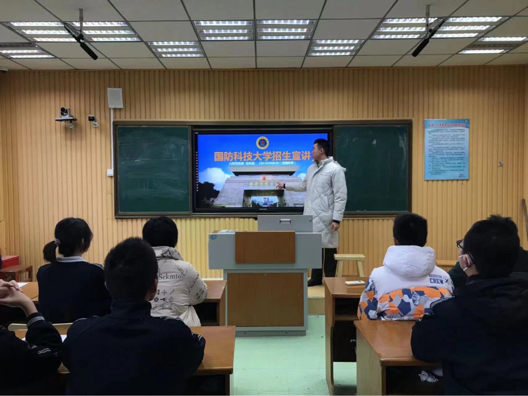 回母校宣讲时,正值大雪纷飞的严寒,但没有阻挡同学们参加宣讲的热情,大家从军报国的热情如此高涨,我感到十分欣慰。希望他们能够得偿所愿,来到军队这个大熔炉,提升自我,强军报国。同时,希望我的宣讲能够在他们心中种下强军报国的种子,希望他们最终能够考入国防科大,实现自己的军营梦,也希望还能够再返母校,为学校招生工作尽绵薄之力。