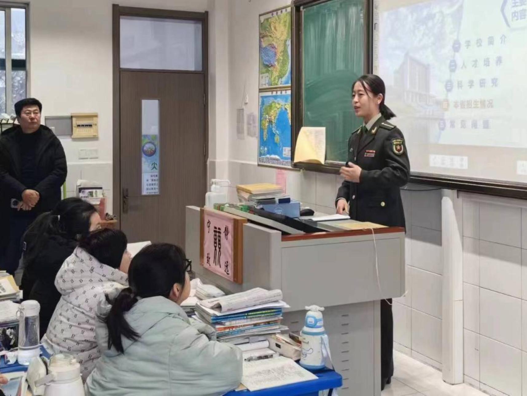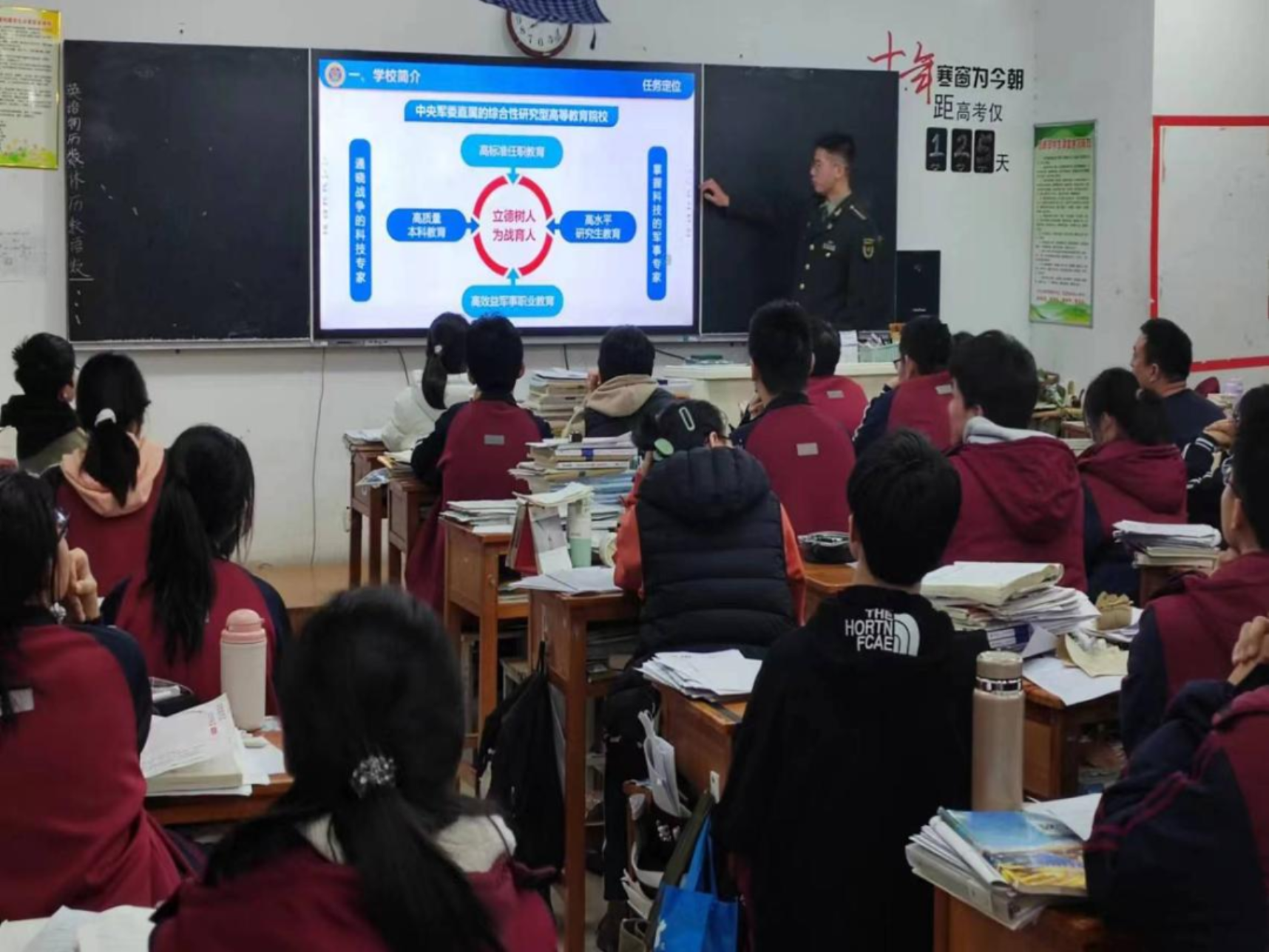 寒假期间,国防科大“母校中学行”汇报宣讲活动火热进行,近2500名学员深入1200余所母校中学,汇报成长历程、畅谈军校生活、分享学习心得,为学弟学妹解惑引路,鼓励优秀学子积极投身强军事业。