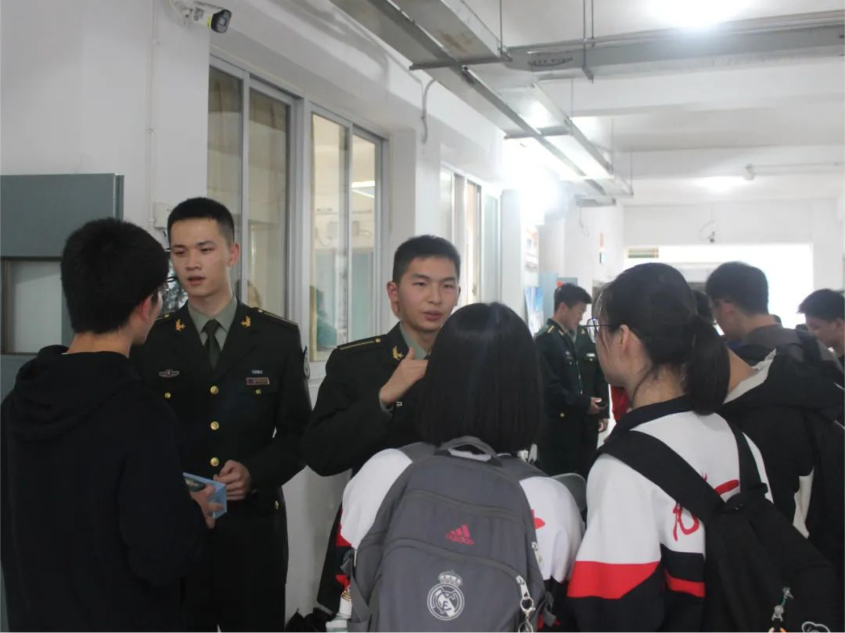 我怀着无比激动地心情,重返了母校。熟悉的校园,熟悉的校服,高中奋斗的时光仿佛就在昨日。从校服到军装,从高中的懵懂幼稚逐渐走向成熟,半年近170天,我逐渐完成两个转变,成为了一名光荣的科大学员。宣讲过程中,我深情地向学弟学妹们介绍国防科大的独特魅力。他们的眼中闪烁着对科大的好奇与向往,让我仿佛看到了当初自己的影子。我热情分享自己在科大的学习和生活经历,半年的科大生活让我收获颇丰,我也十分希望附中的学弟学妹们能报考科大,携笔从戎,共同书写属于我们的青春华章。