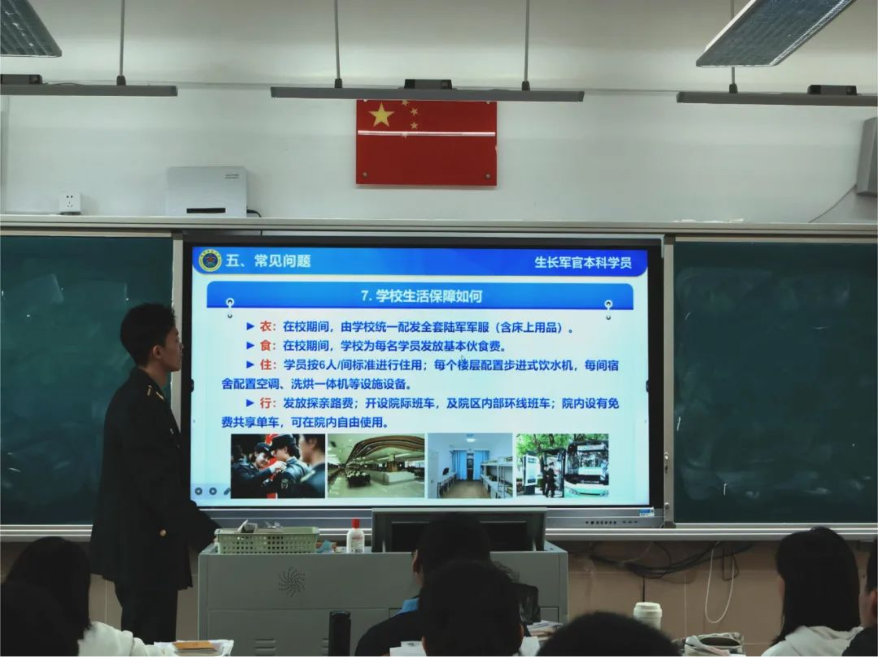 当我站在那个熟悉的讲台上,看着下面一双双充满好奇和憧憬的眼睛,我深知自己的责任重大。我希望能够通过自己的经历,为他们带去一些启示和激励。在宣讲中,我分享了自己在军校的日常生活和训练情况,以及军校对我个人成长的影响。我告诉他们,军校的生活虽然严格,但正是这种严格,让我学会了如何面对挑战、如何超越自我。在军校,我不仅学到了专业知识,更重要的是,我学会了如何成为一个有担当、有责任感的人。