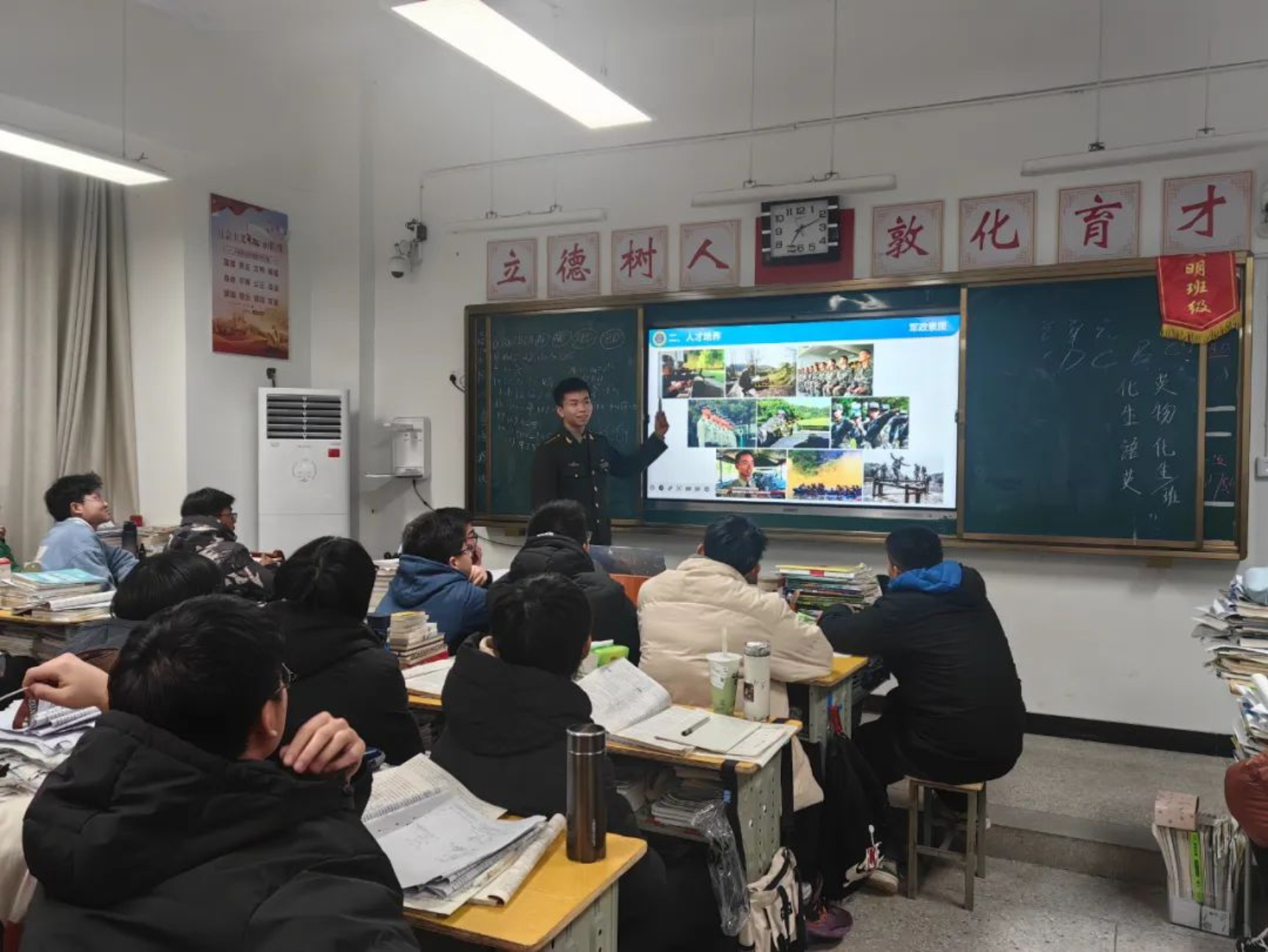 寒假期间,毕业于江西省芦溪中学的汇报宣讲团成员回到母校,为学弟学妹们带来了一场令人振奋的宣讲,约250名高三学子热情参与。汇报宣讲团成员结合自身经历,生动详细地阐述了国防科大的教育理念、培养模式以及丰富多彩的校园生活等。他们的介绍让在场的学弟学妹们对军校生活有了更为真切、立体的感知。同时针对高三阶段的学习挑战,分享了实用的学习策略和心态调整方法,激励学弟学妹们以坚定的信念和昂扬的斗志迎接挑战,勇敢追梦。