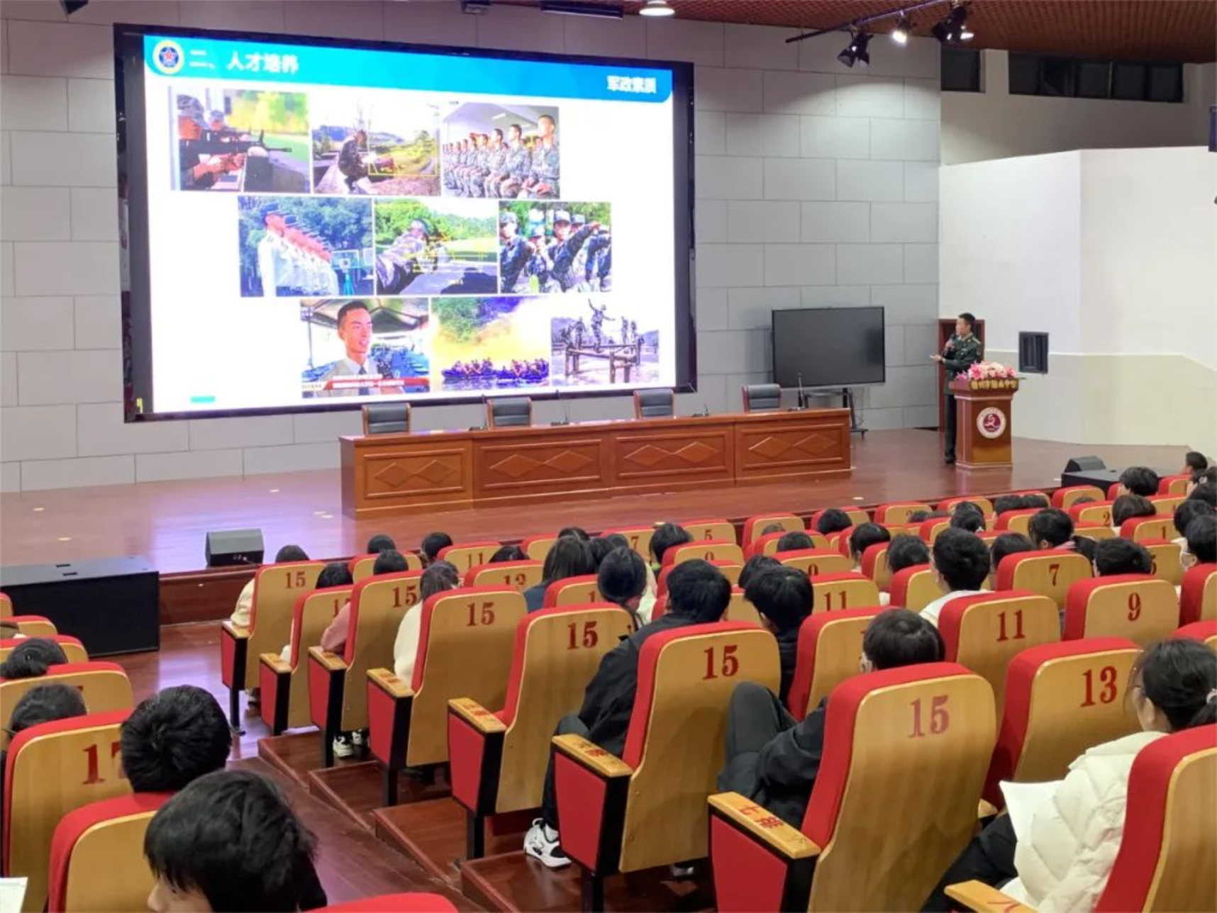 2月14日至15日,学校生长军官本科学员薛浚铧和陈欣怡回到母校南安第一中学,向母校领导及老师汇报成长经历,并面向高三学子开展招生宣讲。汇报宣讲团成员进行了深入宣讲,内容涵盖军人情怀、青年使命、学校现状、发展前景、招生情况和优秀校友等内容,并耐心解答同学们疑惑问题,鼓励同学们为理想目标而努力奋斗,现场反响热烈。