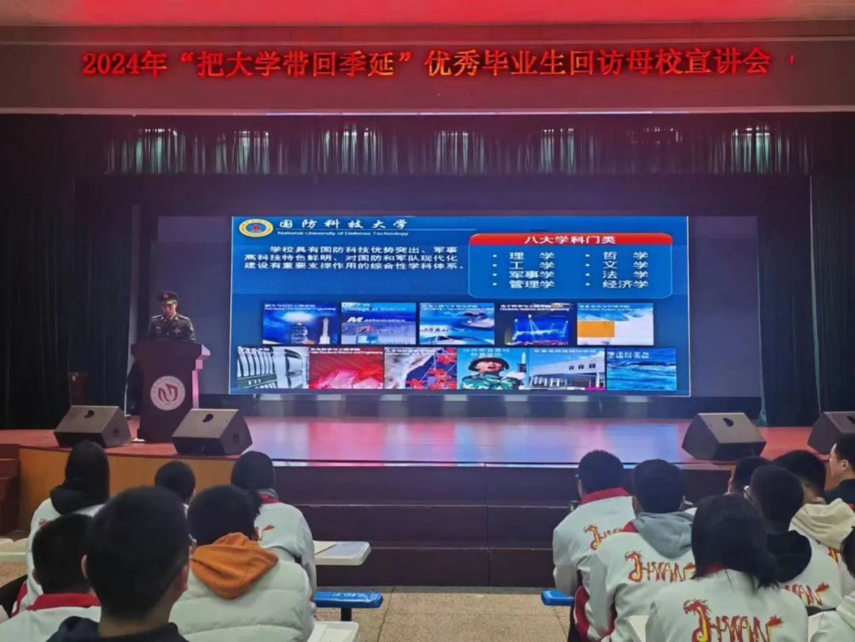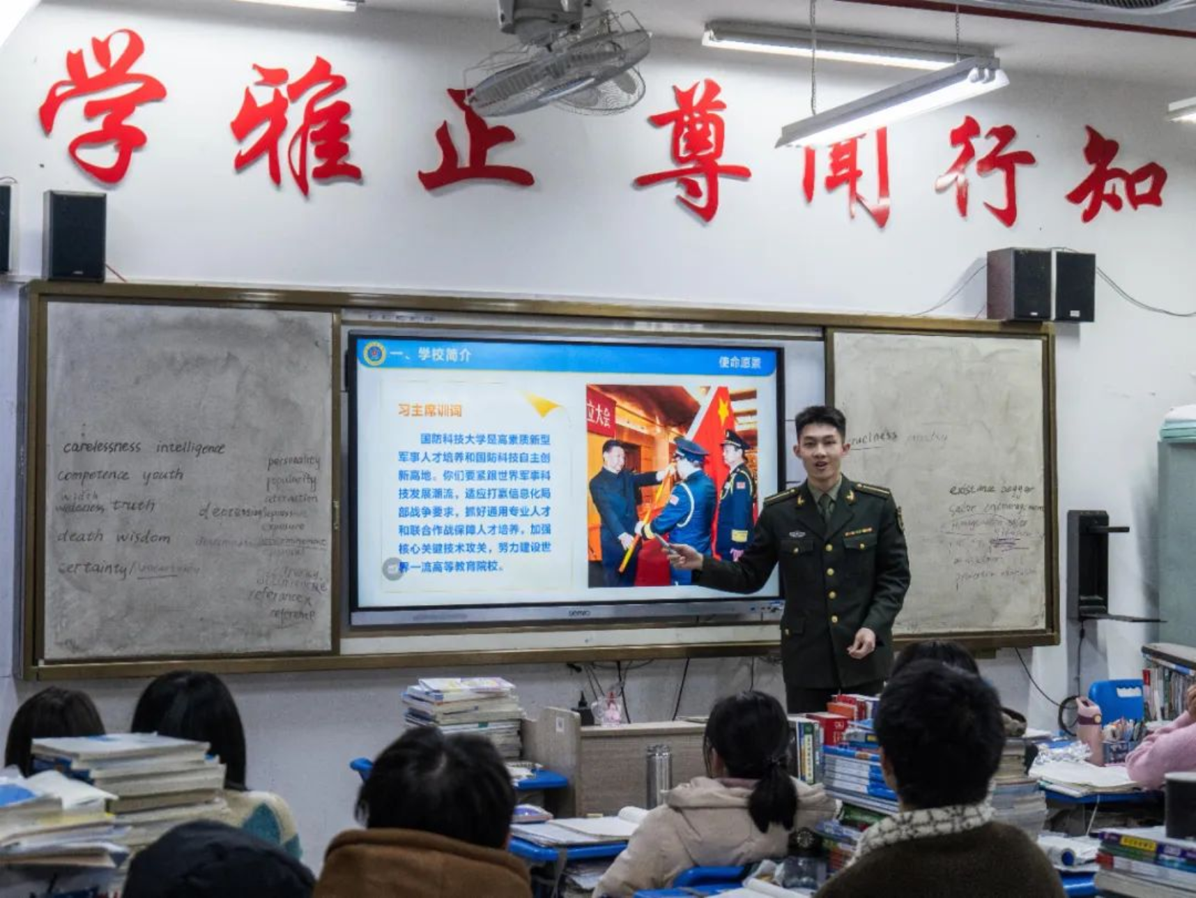 寒假期间,国防科大“母校中学行”汇报宣讲活动火热进行,近2500名学员深入1200余所母校中学,汇报成长历程、畅谈军校生活、分享学习心得,为学弟学妹解惑引路,鼓励优秀学子积极投身强军事业。