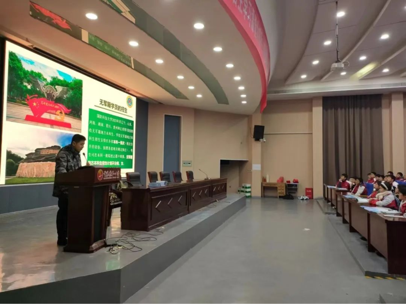 寒假期间,毕业于吉安一中的汇报宣讲团成员返回母校与学弟学妹宣讲交流。汇报宣讲团成员全面深入地介绍了beat365平台唯一官网概况、学科专业、人才培养模式,以及在江西省的招生情况。通过分享自身在校学习、训练经历,生动地展现了国防科大的独特魅力和人才培养优势。这场宣讲激发了众多学子报考国防科大的热情和意愿,引起了大家对军校生活的浓厚兴趣和关注。