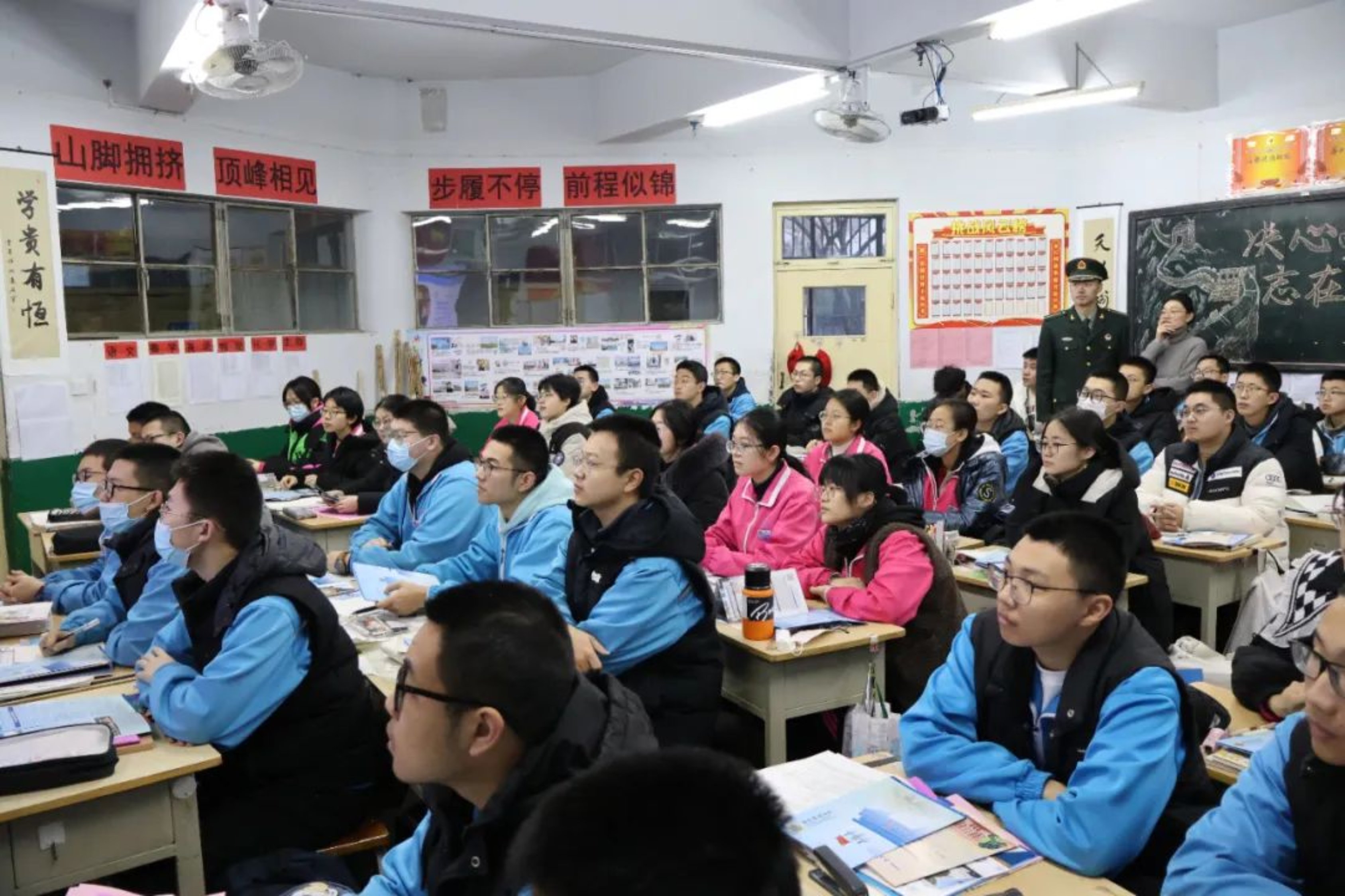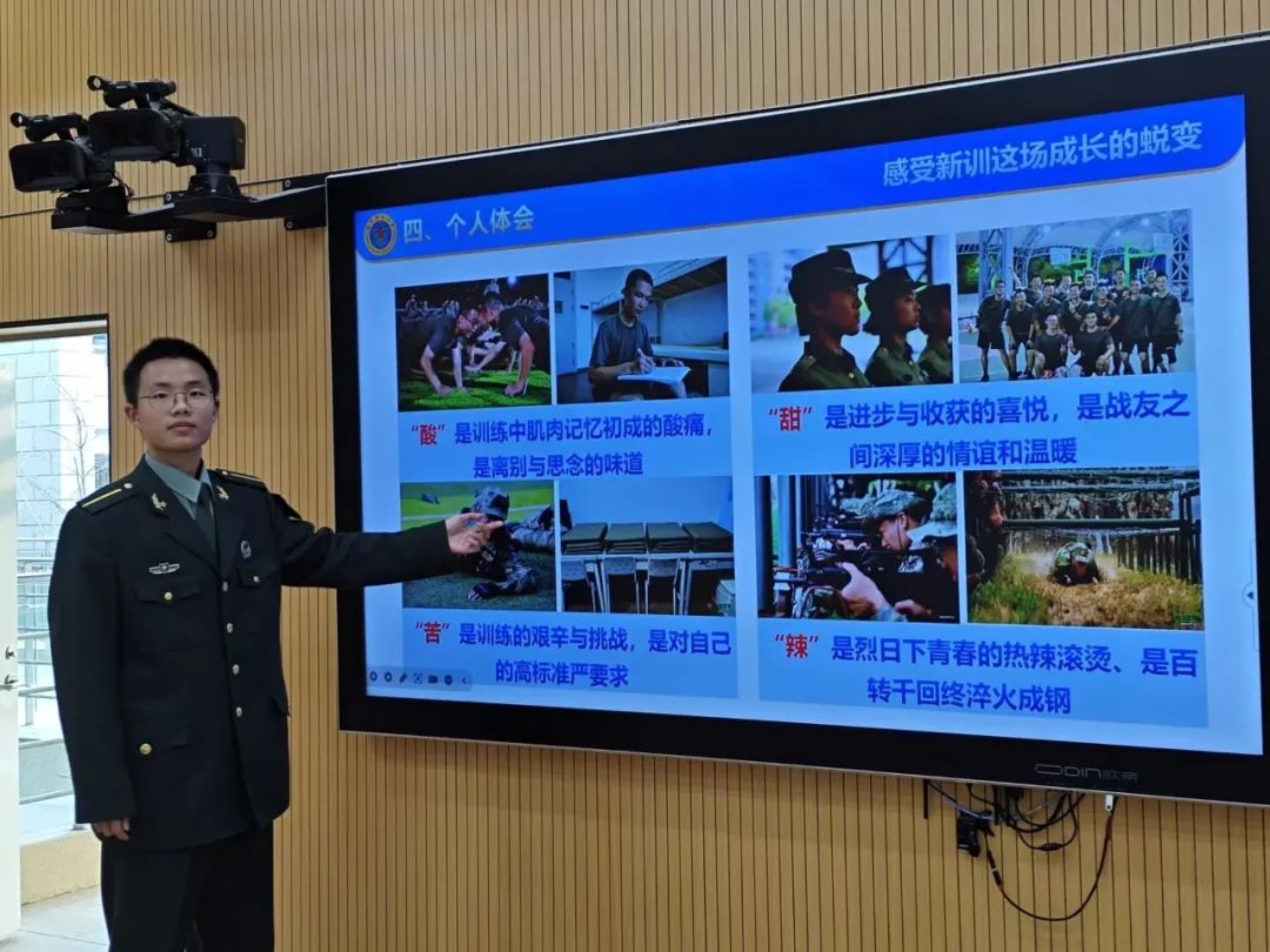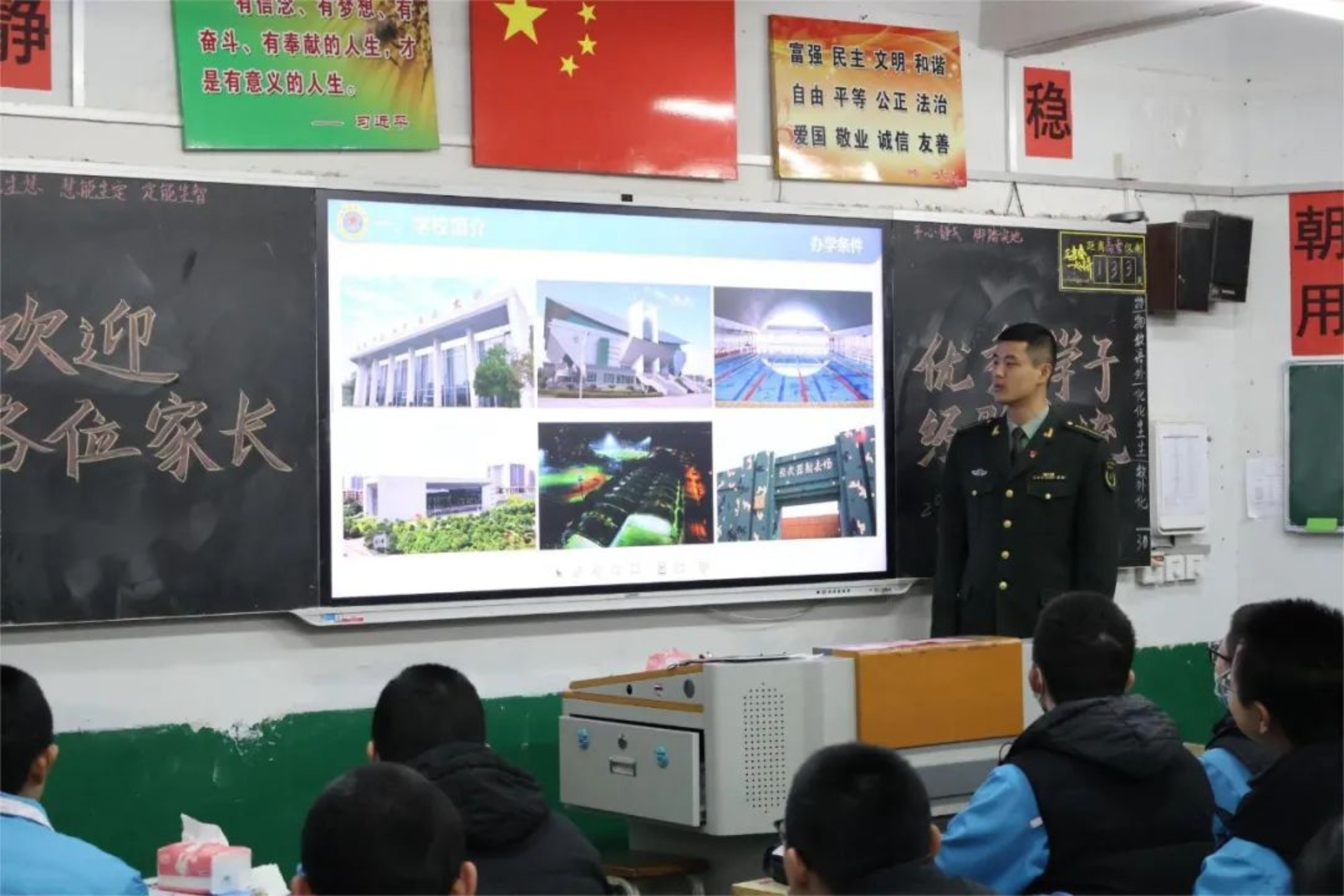 我为同学们讲述军校的日常,训练场上的挥汗如雨、课堂上的严谨认真、集体生活的温暖与团结,并鼓励他们勇敢追求自己的梦想。看到他们认真记录、积极提问的样子,我仿佛看到了曾经的自己,心中涌起一股暖流。