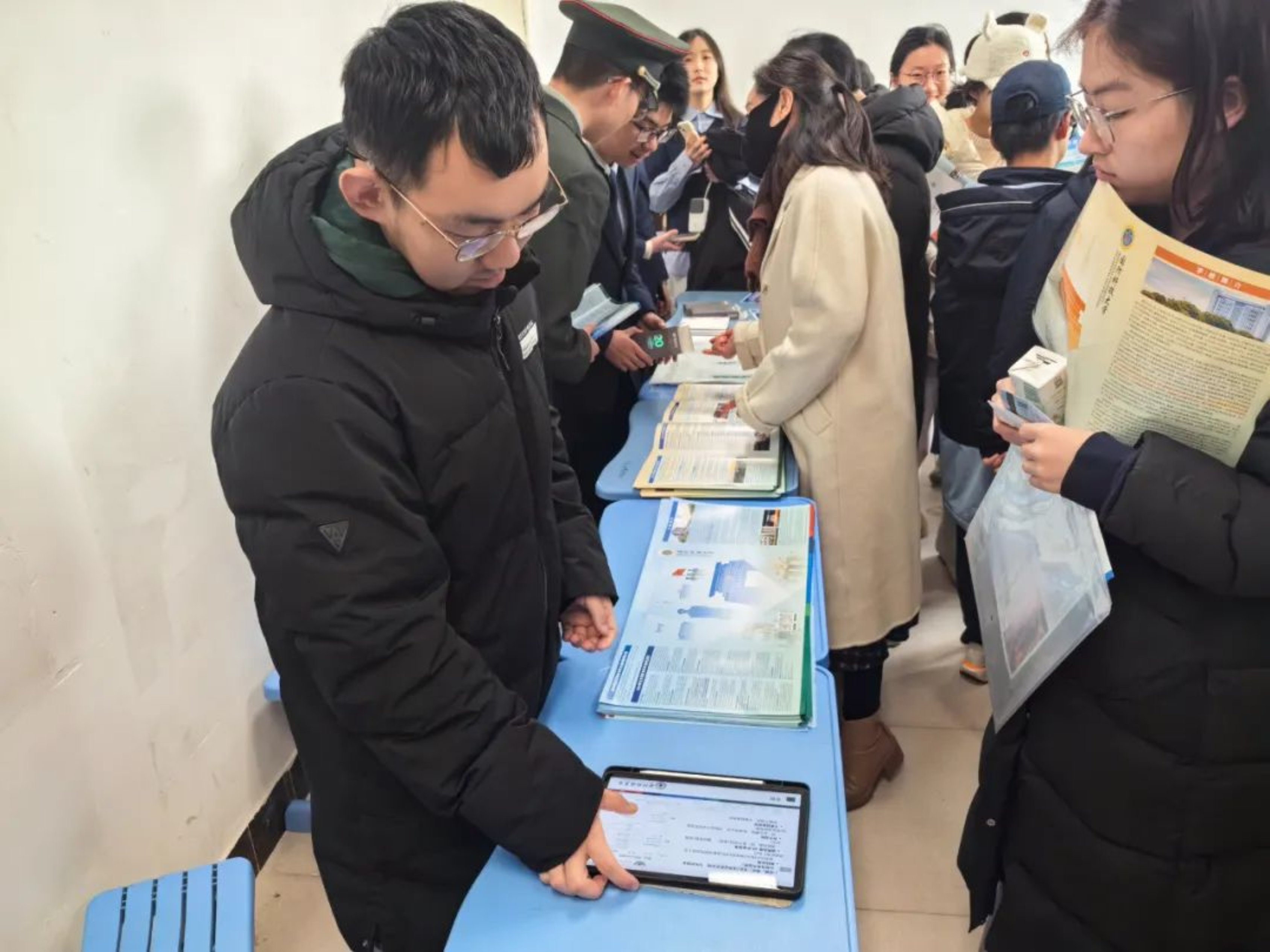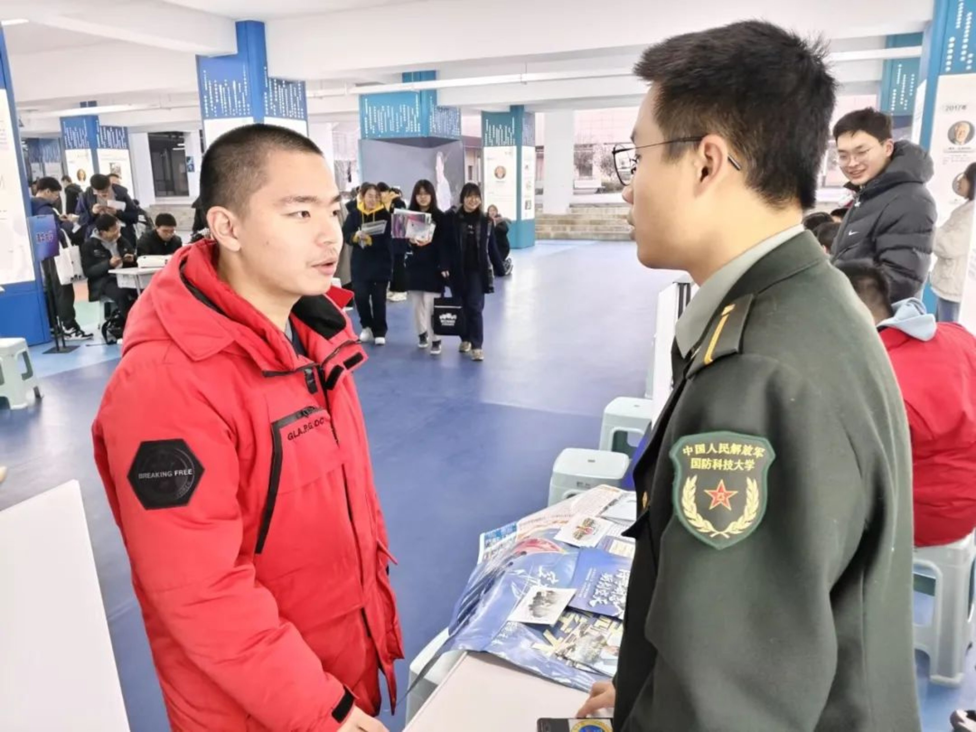 在下沉空间,中学组织不同院校开展定点宣传,吸引众多同学参加。李汪承与其他军事院校学员组队,就军校招生有关问题开展联合宣讲。中学同学聚焦招生政策、学习生活、未来职业发展路径等方面积极踊跃提问。李汪承耐心细致地为每一位同学答疑解惑,并给出中肯建议,受到同学们一致认可。