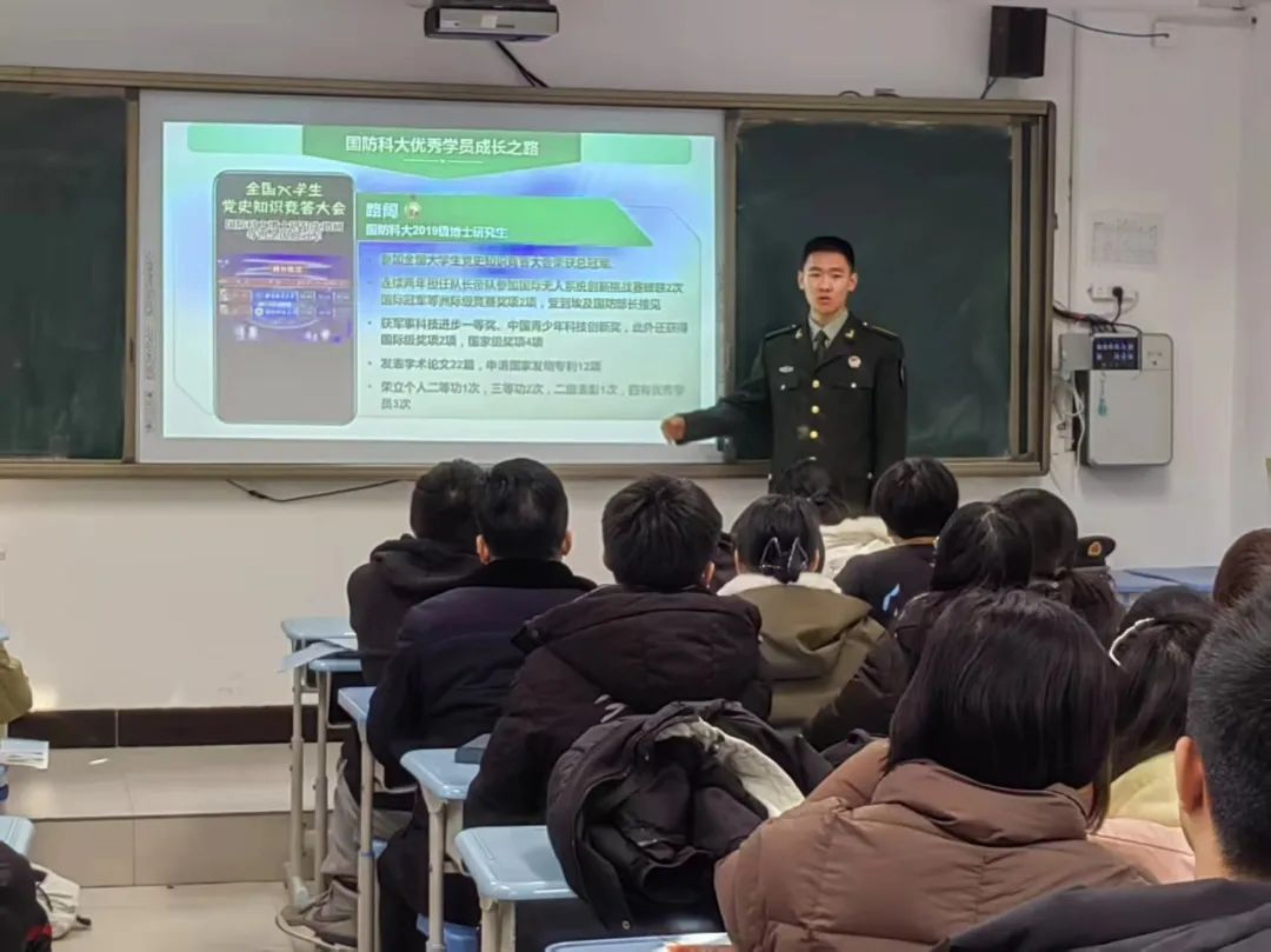 站在熟悉的讲台上,我仿佛看到了曾经的自己,对未知充满好奇,对梦想满怀憧憬。这次宣讲,我希望能将心中对国防事业的热爱与执着传递给更多人,让更多的学弟学妹们了解科大、关注军校,投身国防事业。