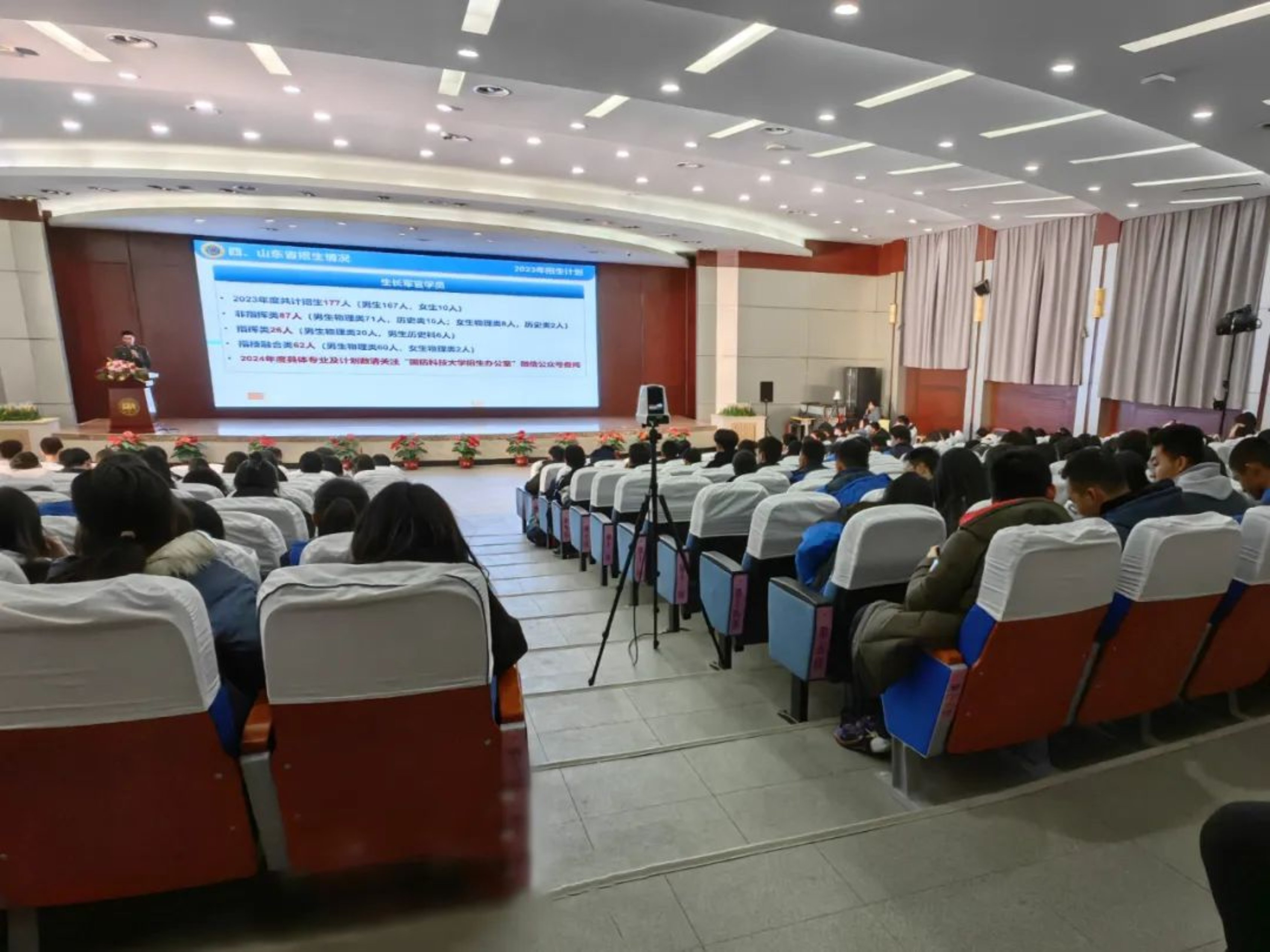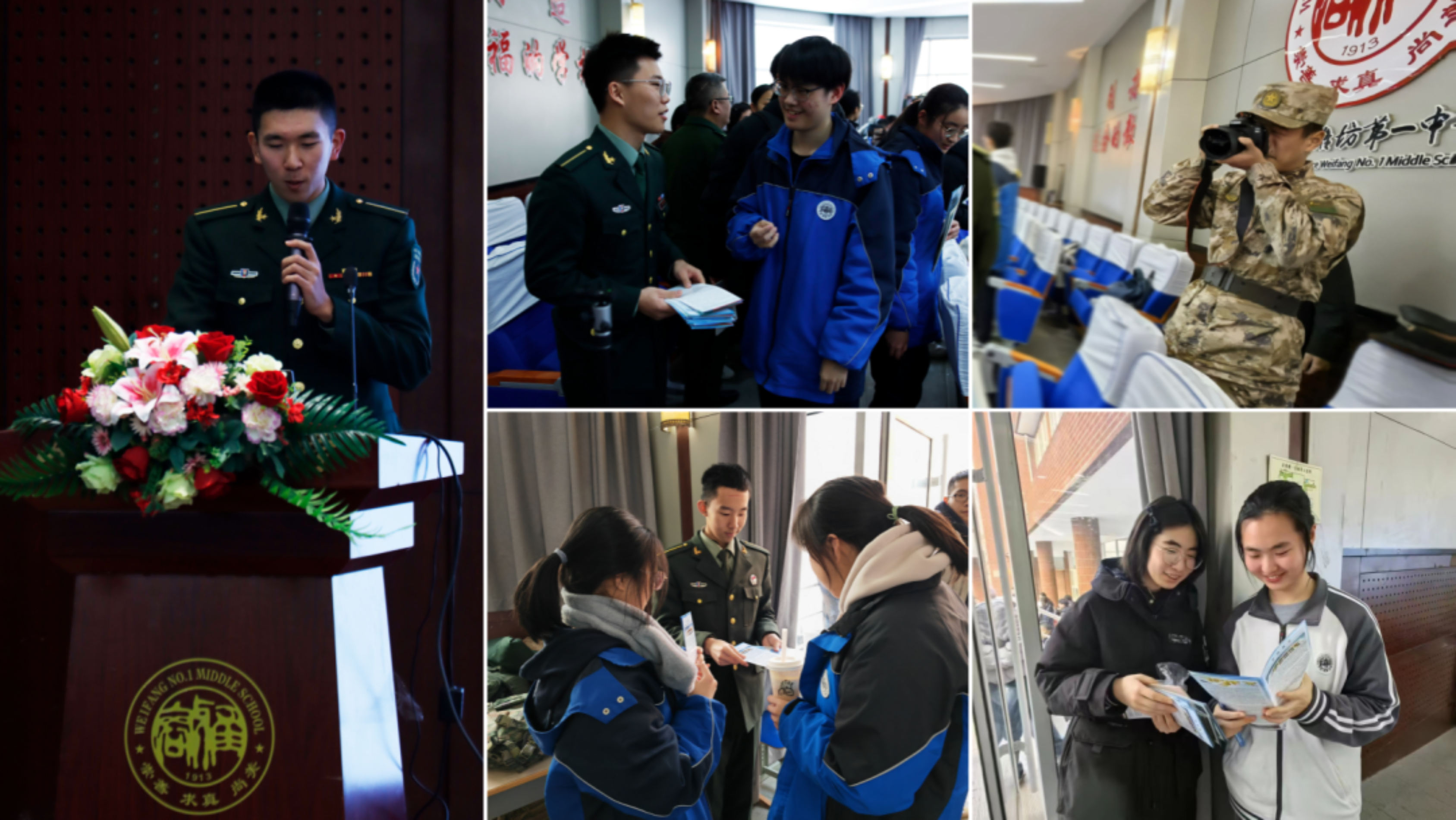 近日,在学校山东招生组组长李爱平教授的带领下,由生长军官本科学员陈梓毅、蔡翀、朱宸希、刘恒恺、巩克和无军籍地方本科学员张煜欣组成的汇报宣讲团来到了山东省潍坊第一中学,让我们跟随他们的脚步,一同感受属于他们的母校情吧!