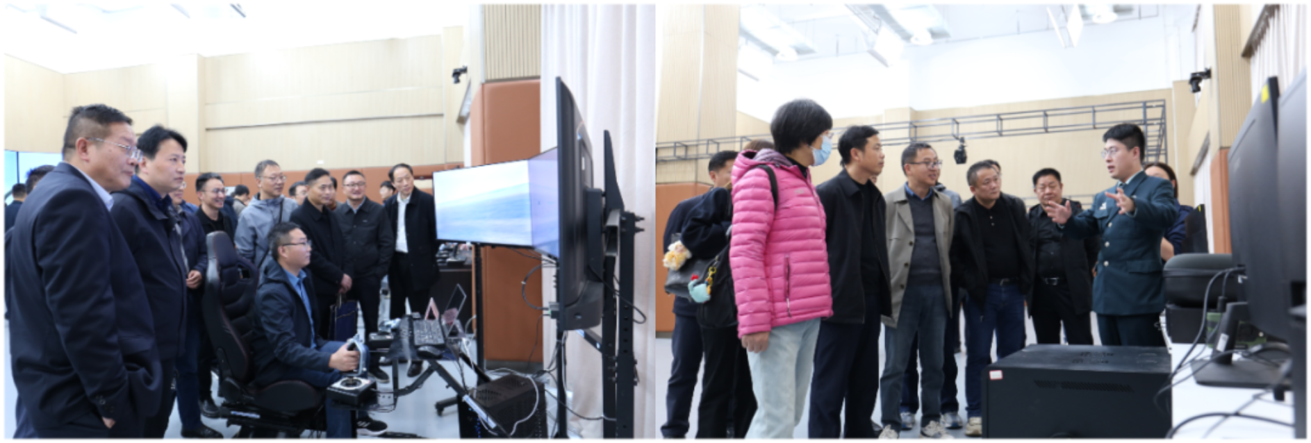 在系统工程学院3个国家级重点科研平台和1个省级实验平台,校长们观摩并体验了多种类型的装备模拟器,现地感受学校在科技练兵方面的建设成果。