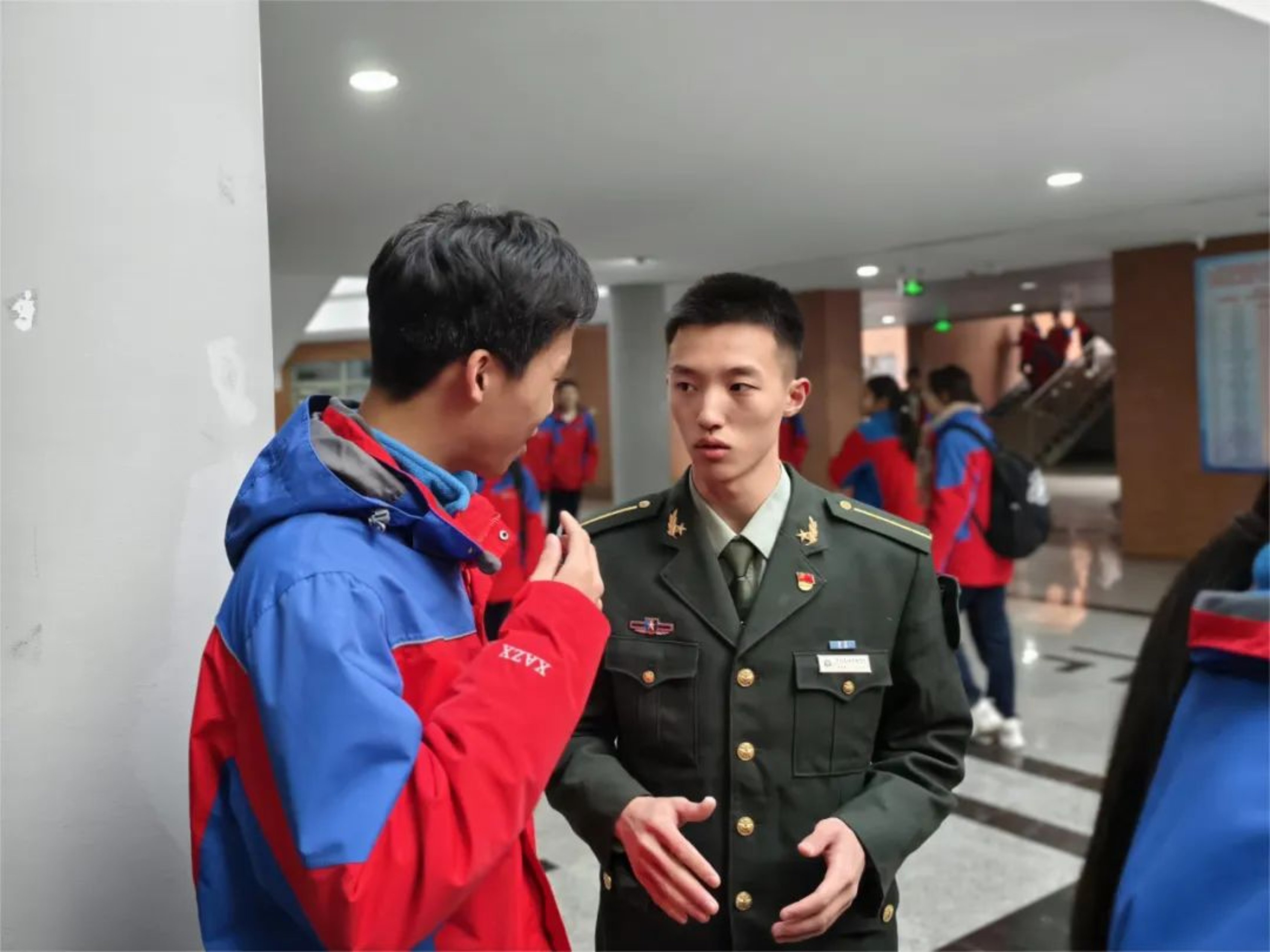身着军装,重回母校,我深感荣幸。站在熟悉的讲台上,看到学弟学妹们渴望和期盼的眼神,我仿佛看到曾经的自己。我分享在国防科大的多彩生活、丰富活动与学习训练,努力传递“高地”信念、科大风采。当他们眼中露出对军校的向往,我明白这不仅是宣讲,更是梦想的接力。真心希望母校能为科大输送更多有志青年,一起投身强军报国的伟大事业。