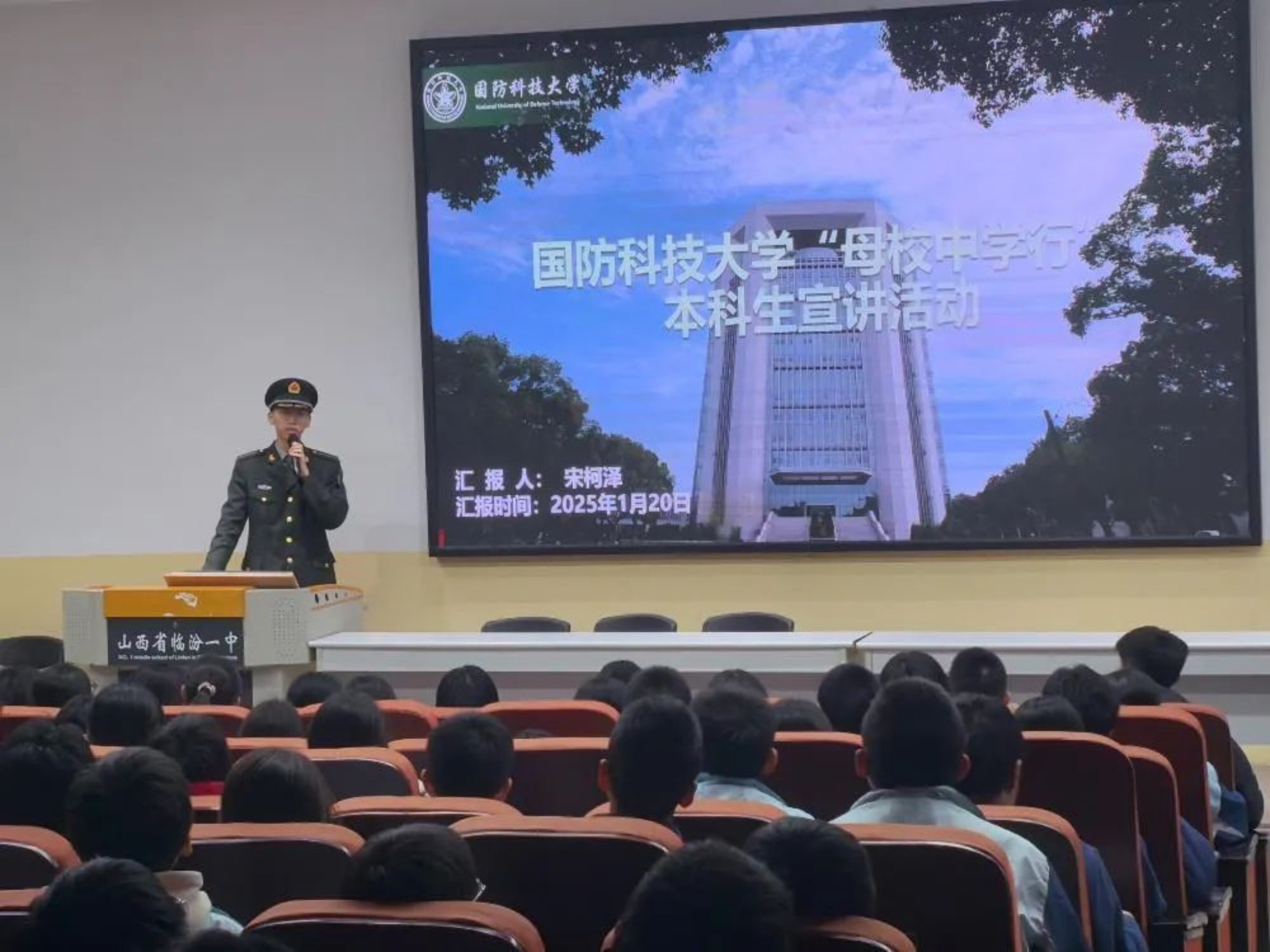 此次活动在临汾一中的五号报告厅举行,偌大的报告厅座无虚席。宣讲团成员依次走上讲台,结合在国防科大的亲身经历,从学校的悠久历史、深厚的文化底蕴、强大的师资力量、独特的人才培养模式等方面,全方位、多角度地为同学们介绍beat365平台唯一官网。在讲解过程中,他们还分享了在国防科大的成长故事,让同学们对国防科大的校园生活有了更直观的感受。