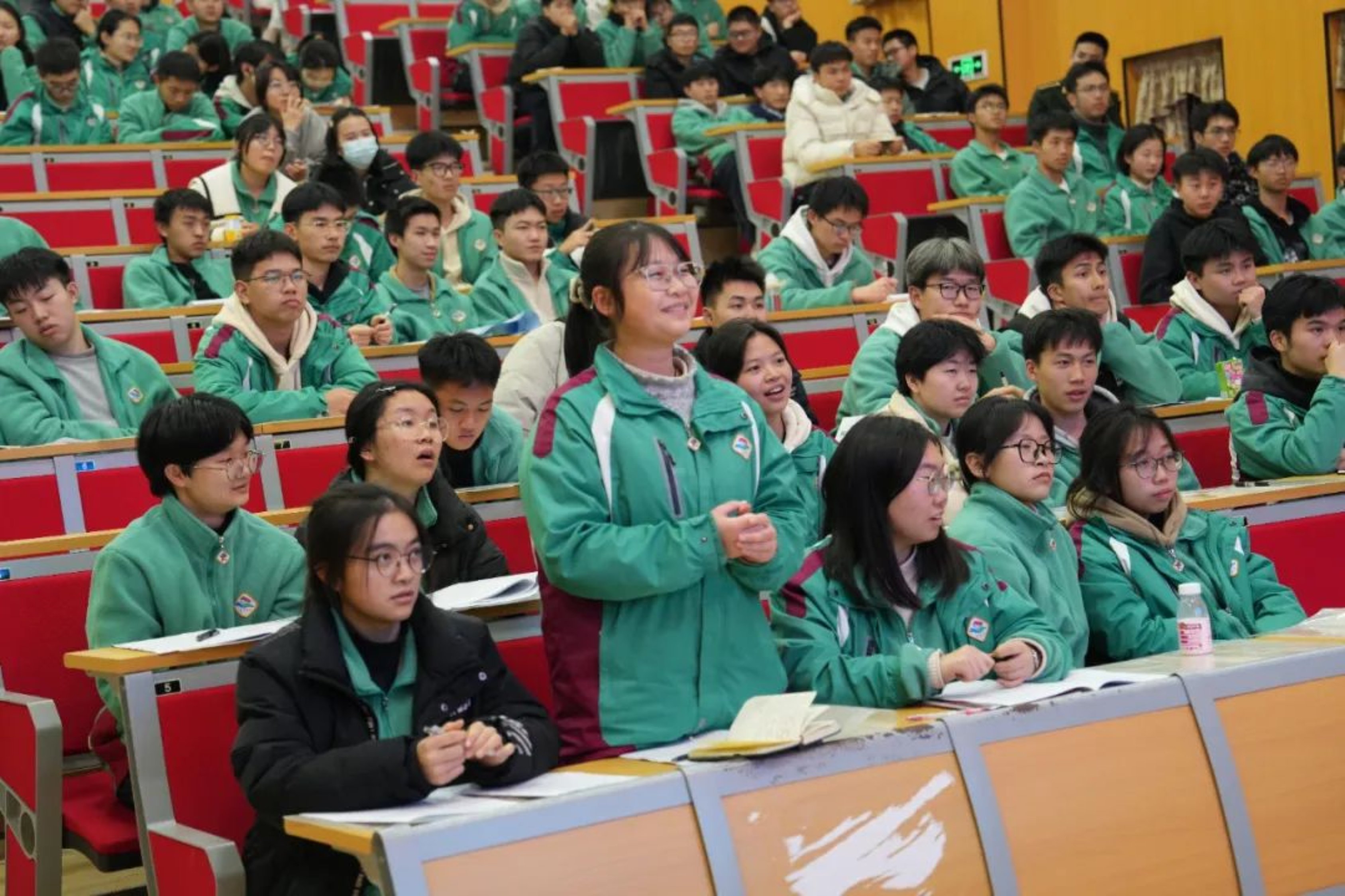 宣讲现场,宣讲团成员刘艺涵详细介绍了科大在人才培养、科学研究的显著成就,以及招生政策方面内容,引发了在场同学们的兴趣。互动环节,同学们积极提问,从招生要求到学术氛围,从训练生活到未来发展,福建招生组庞礴老师都给予了耐心细致地解答,让同学们对科大有了更加全面和深入的了解。此外,宣讲团成员还分享了在高考前的奋斗经历和学习心得,那些拼搏的日子和决胜的瞬间,激发了同学们内心的共鸣。宣讲团成员用自己的故事告诉学弟学妹们:青春无悔,奋进正当时!