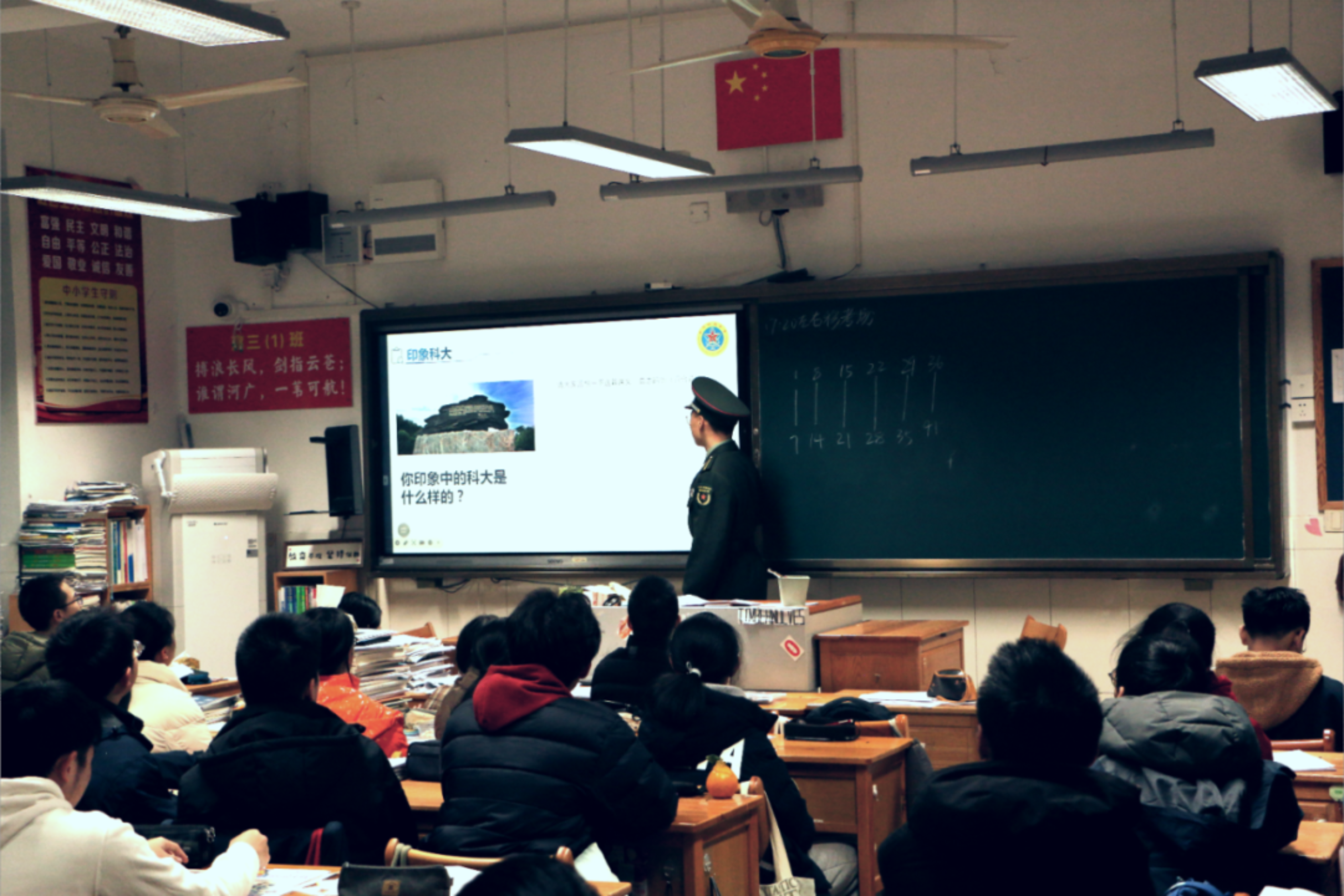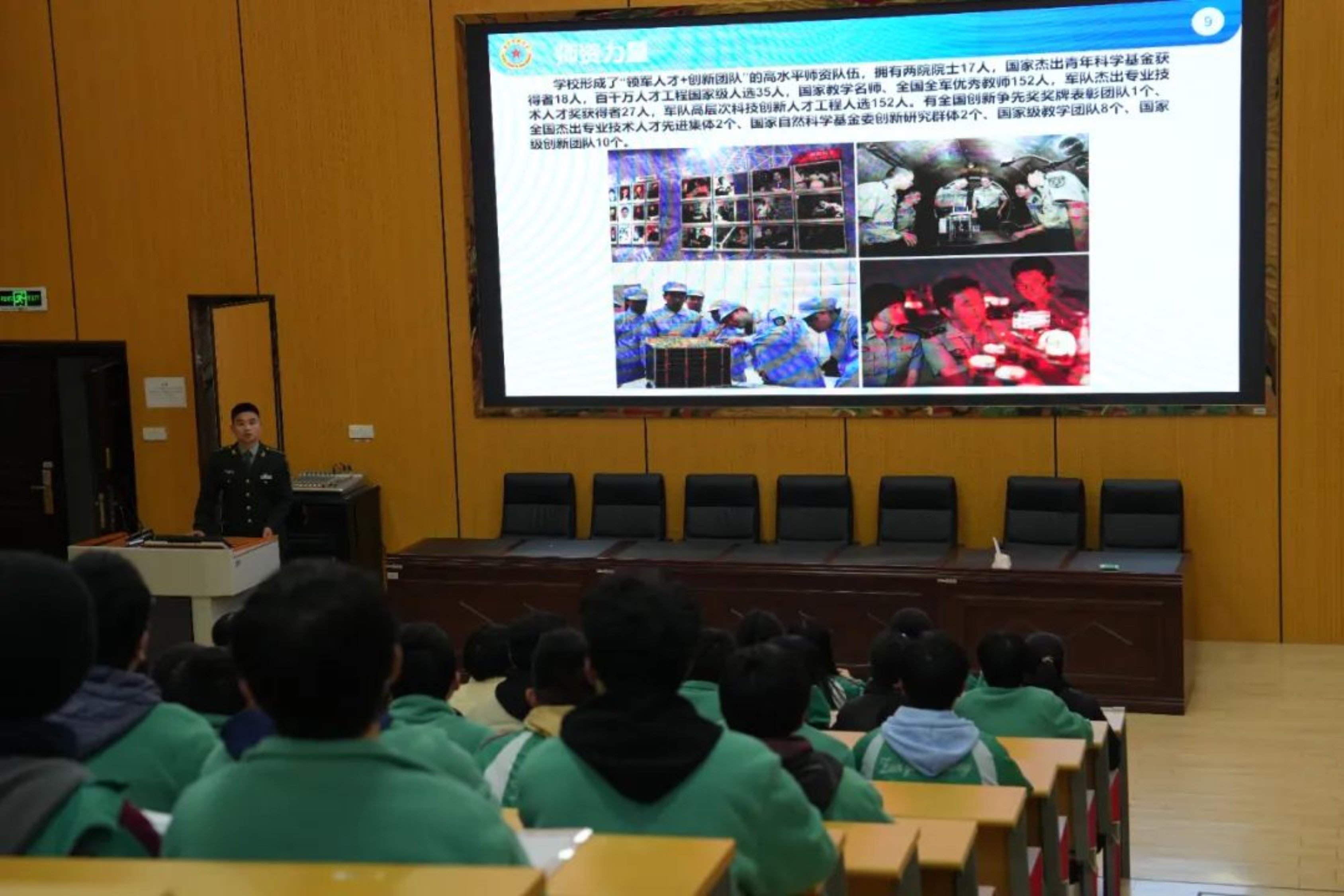 时隔半年,当我再次踏入熟悉的校园,往昔的高中生活如电影般在脑海中放映。这次宣讲,我向同学们分享了科大生活的丰富多彩,讲述不同专业的特色,以及高考备考的实用技巧。在交流互动环节,同学们积极提问,眼神中满是对未来的憧憬与期待。这次宣讲活动不仅是经验的分享,更是一种传承。我们传递着勇气与希望,鼓励同学们勇敢追梦,努力成为强军报国路上的同行人。