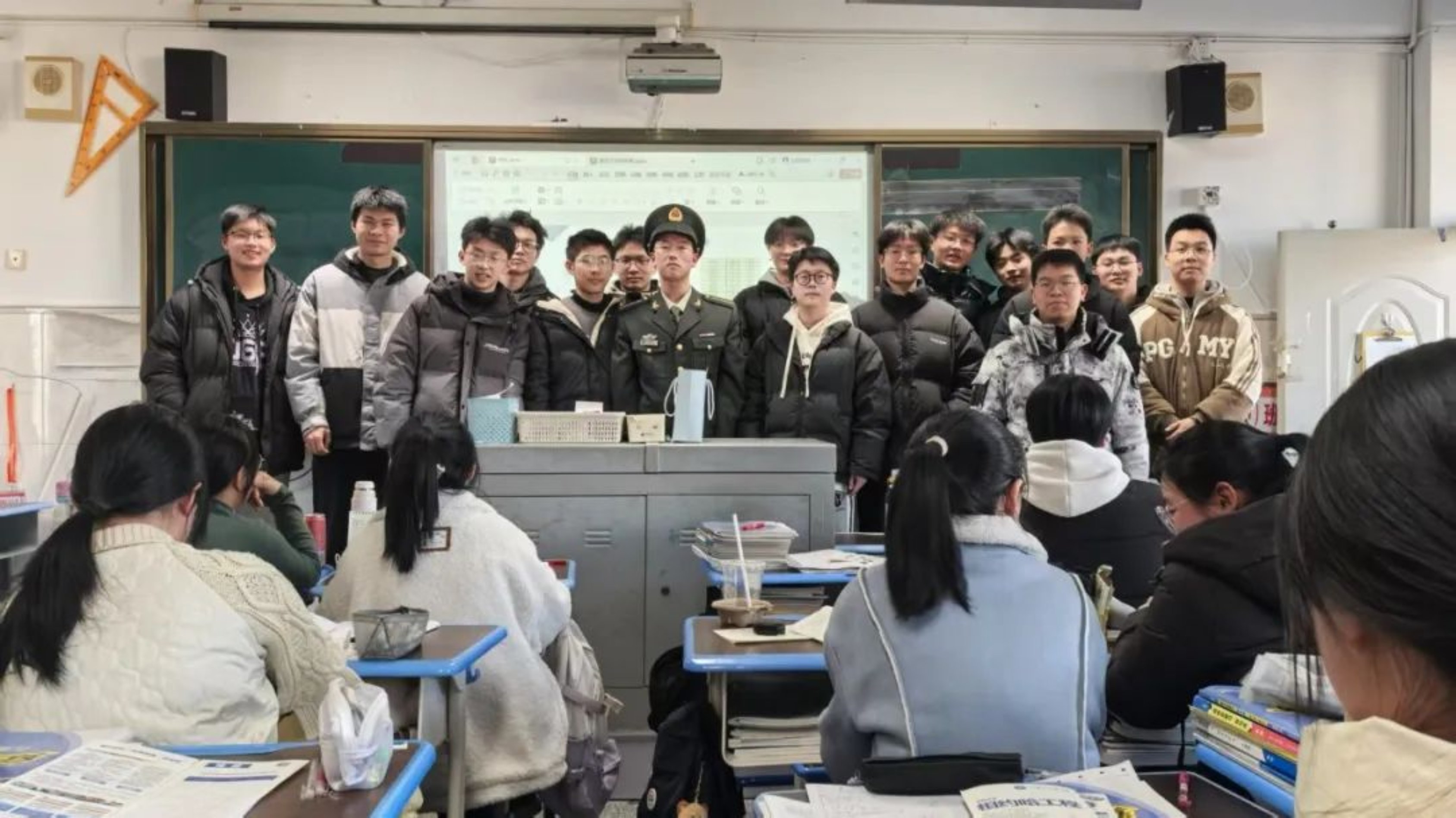 在共同目标的引领下,我们紧密团结圆满完成了宣讲任务。正如我们当年一样,绝大多数高中同学对大学的概念模糊不清,对大学生活充满未知,报考大学时缺乏明确目标,面对专业选择感到迷茫,且对报考军校的体检和政审要求知之甚少。我们立足于自身,解答疑惑,灵活应对,良好地回答了同学们提出的问题,对此感到十分荣幸。