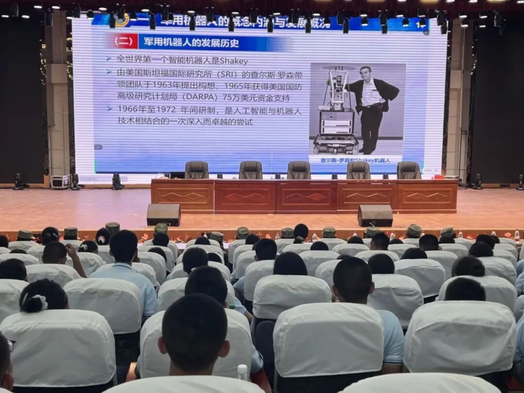 新疆招生宣讲服务团队邀请机器人专家肖军浩教授赴新疆生产建设兵团第一师高级中学,为1000余名高一学生作“军用机器人系统与技术”主题讲座。讲座结合近期国际局势深刻阐述强大国防对国家安全的重大意义,通过生动案例介绍人工智能、无人系统等尖端科技在现代国防领域的应用与发展,直观展示科技如何改变现代战争形态,向大家描绘了科技强军的宏伟蓝图,引发师生广泛共鸣,在同学们心中播下强军报国的种子!