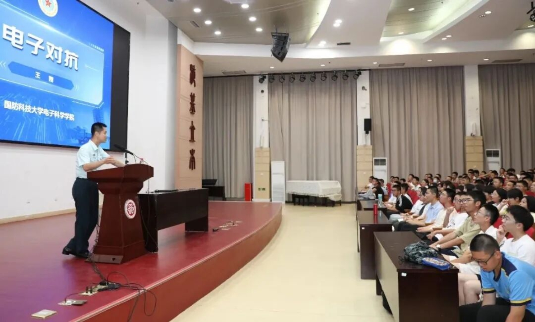 四川招生宣讲服务团队邀请电子科学学院许可教授走进四川省乐山一中,开展以“携手奋进强军兴国、民族复兴的伟大征程”为主题的国防教育与科普讲座,并同步开展招生宣讲,提升了同学们对国防事业的认知与了解,增强了同学们矢志报国的责任担当。活动采取现场互动与线上直播相结合的形式组织,吸引1100余人参加。