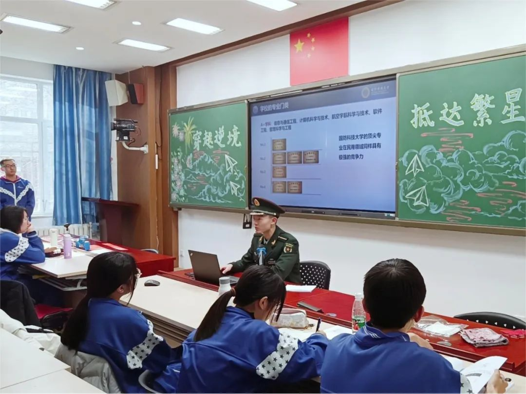 寒假期间,国防科大“母校中学行”汇报宣讲活动火热进行,近2500名学员深入1200余所母校中学,汇报成长历程、畅谈军校生活、分享学习心得,为学弟学妹解惑引路,鼓励优秀学子积极投身强军事业。