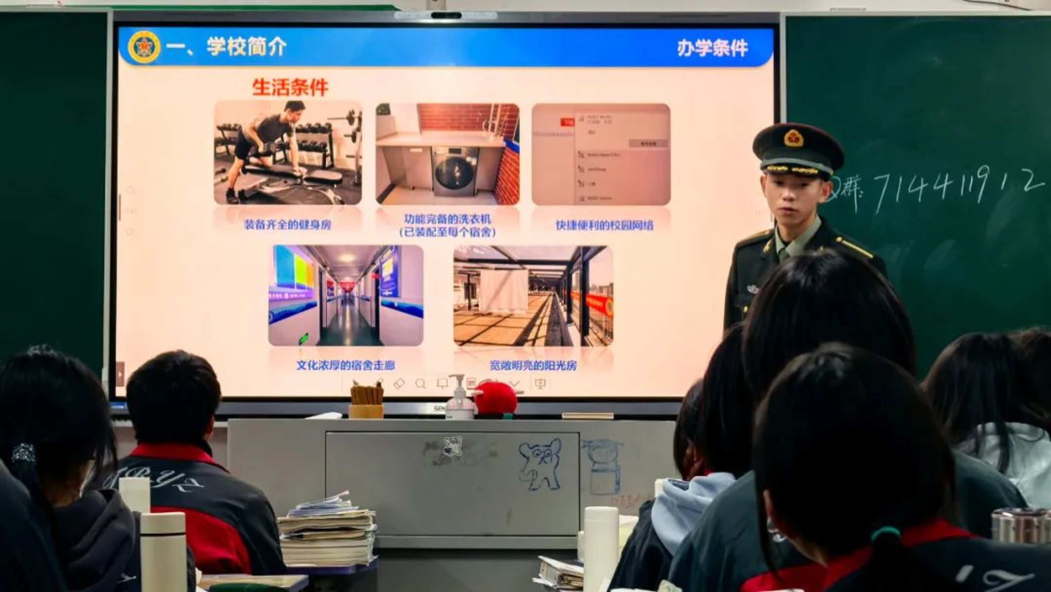军校生活磨砺了我,让我从青涩懵懂成长为如今的坚毅刚强的模样。我站在熟悉的讲台上,分享大学生活的点滴,从学习的挑战到活动的精彩,我希望我的所见所感能够点燃同学们心中逐梦强军的火种,也希望我的经历能激励更多人踏上参军之路。