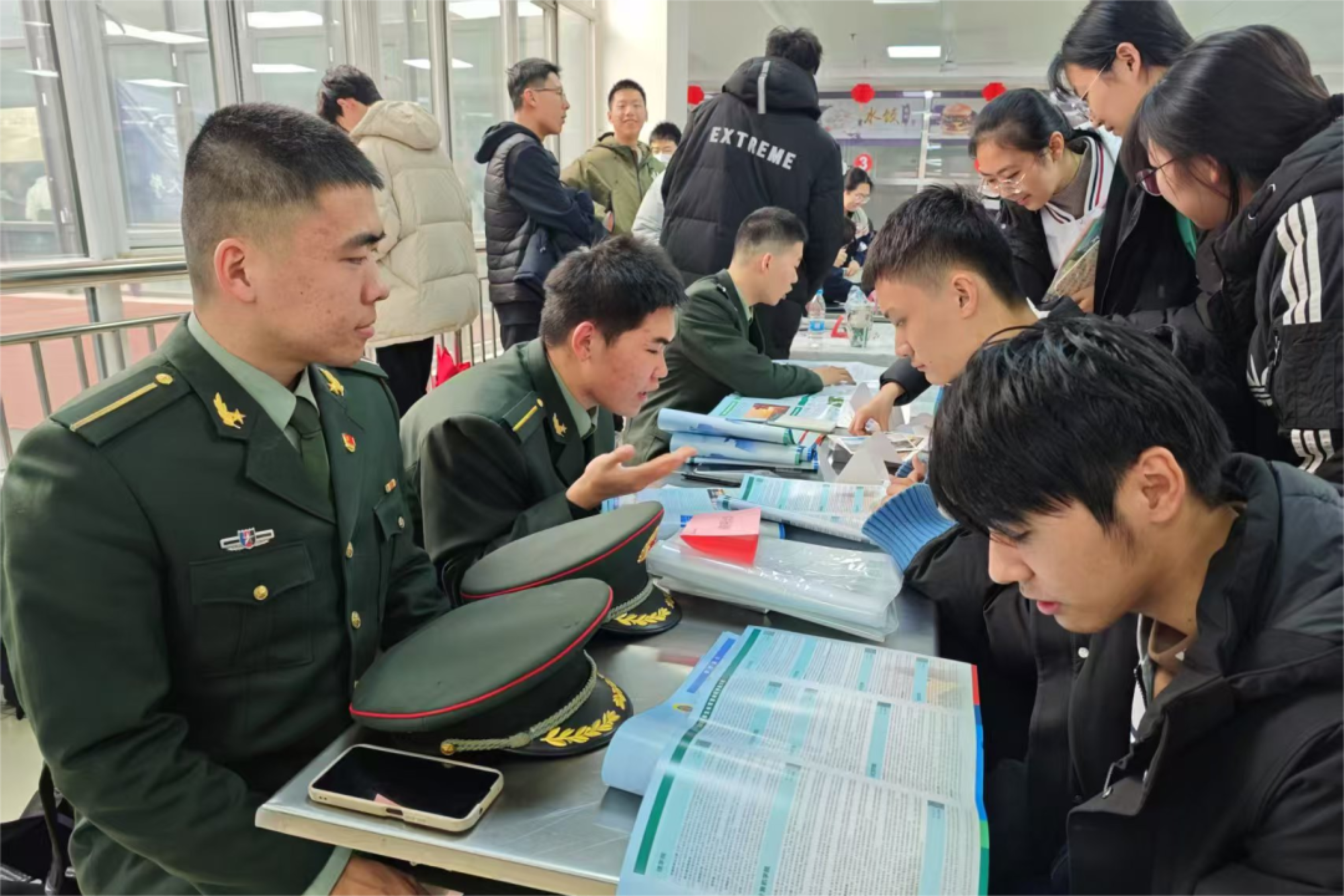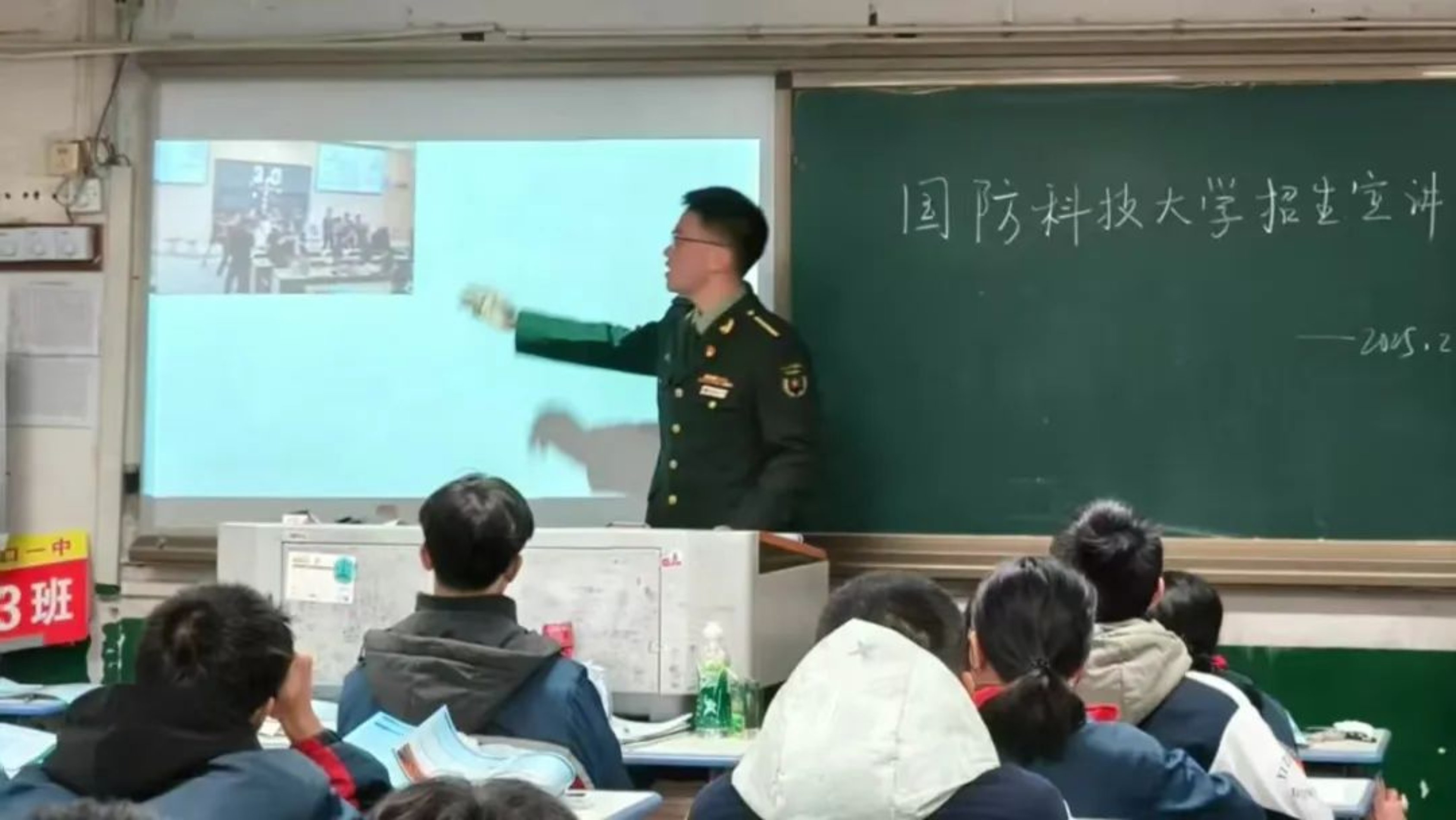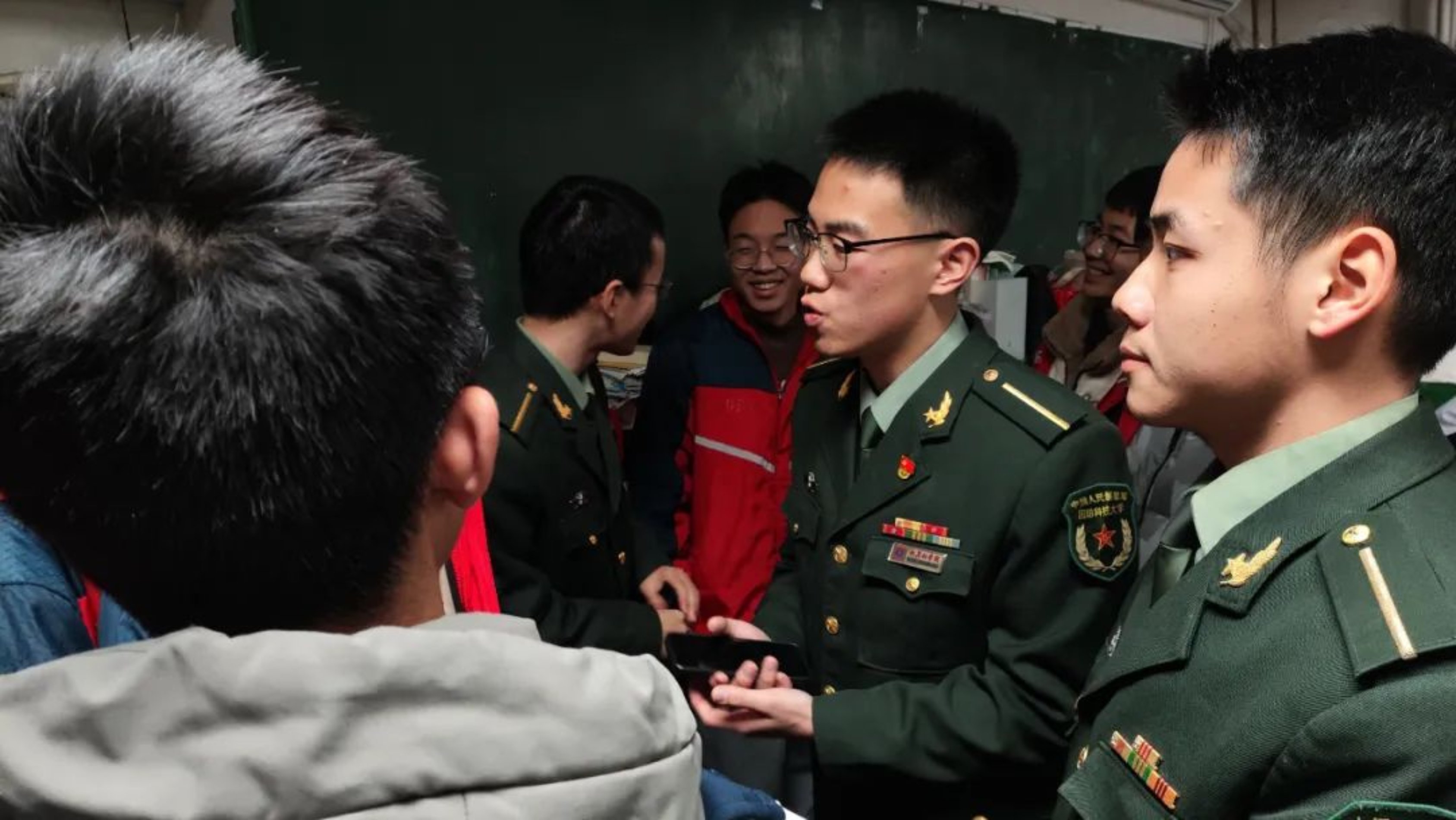 在招生宣讲的现场,我尽力将学校特色、专业优势以及校园学习、训练、生活的精彩之处娓娓道来。宣讲过程中,同学们的提问让我感受到他们对从军报国的渴望,也让我更加明白自己肩负的责任重大。