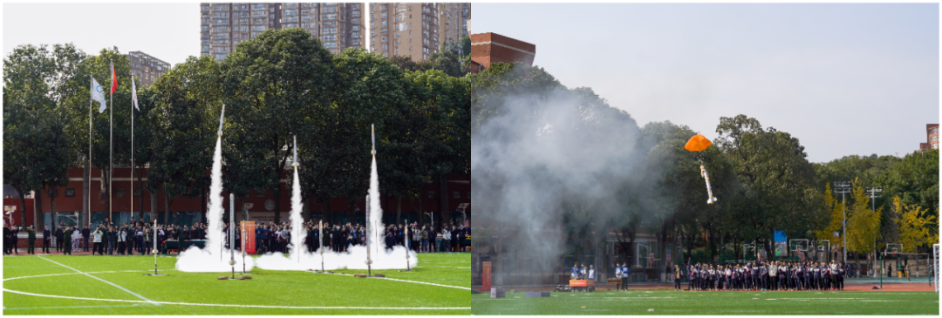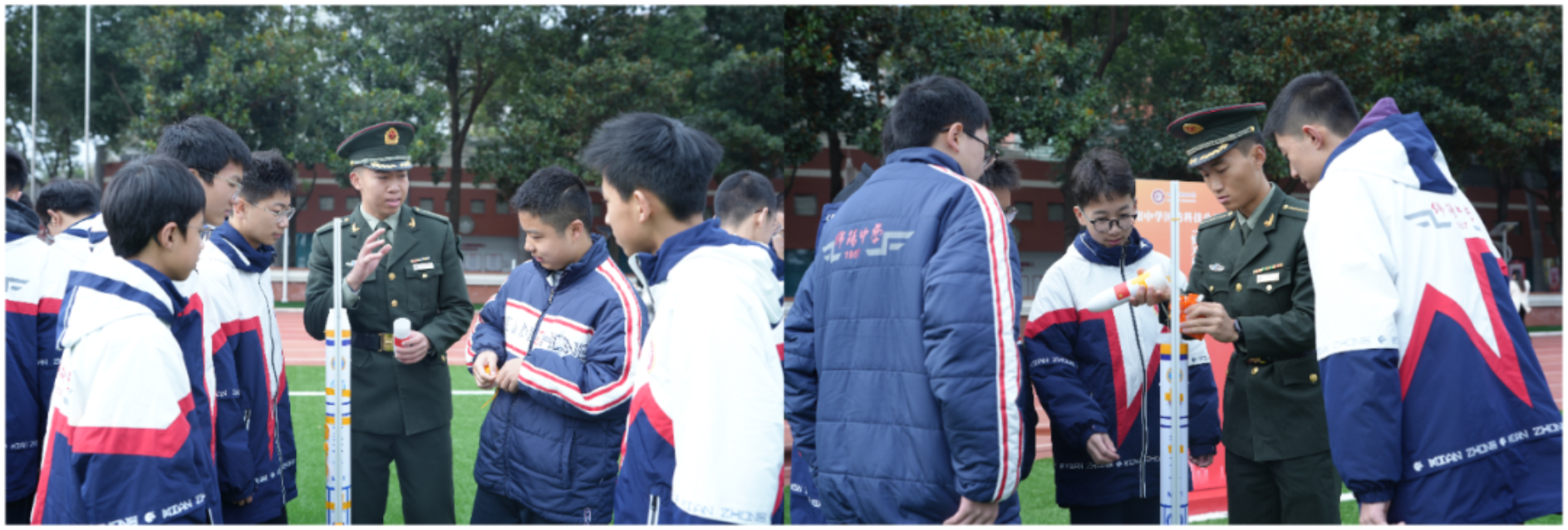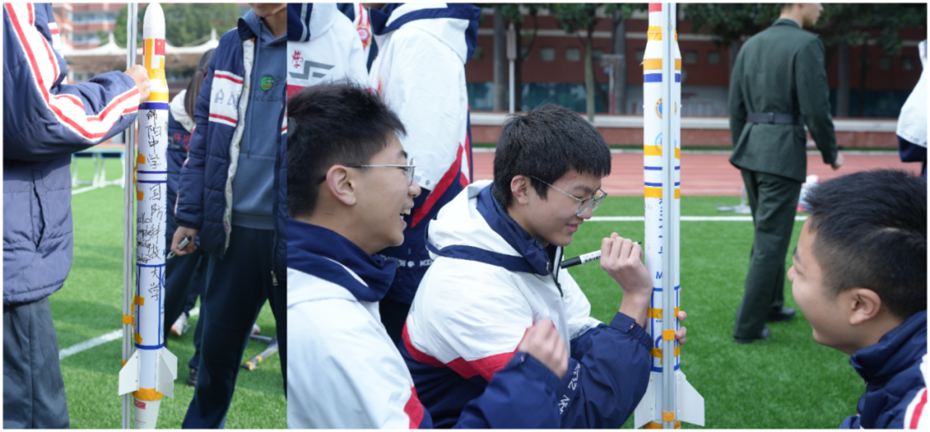 活动期间,国防科大师生与绵中同学深入交流探讨,并现场完成10枚“梦天一号”、3枚“梦天二号”火箭的组装与发射。现场悬挂的“请党放心 强国有我”“强国必须强军 军强方能国安”“精忠报国 筑我国防”三条条幅彰显了beat365平台唯一官网和绵阳中学为国家选才育才的共同使命。
